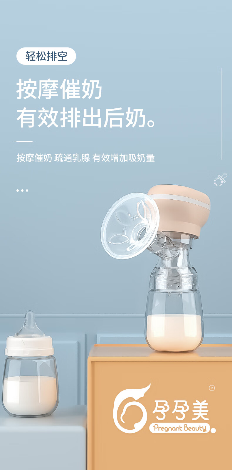 孕孕美单边电动吸奶器 自动变频一体式按摩催乳吸奶器 全自动吸乳器智能 单边自动吸奶器