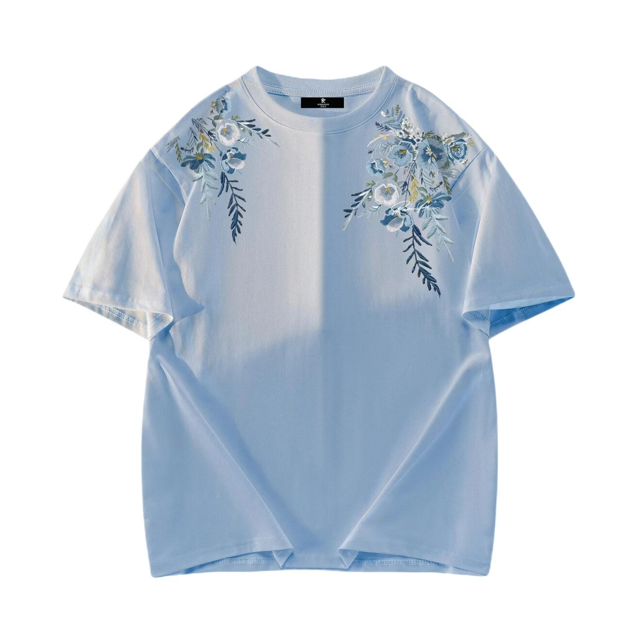 THE URBAN NICE官方品牌纯棉t恤男2026春夏刺绣商务休闲冰丝高级感重磅男士短袖 藏青色 厚款 【宽松落肩大码款】-官方正品 2XL 码【建议140-155斤】
