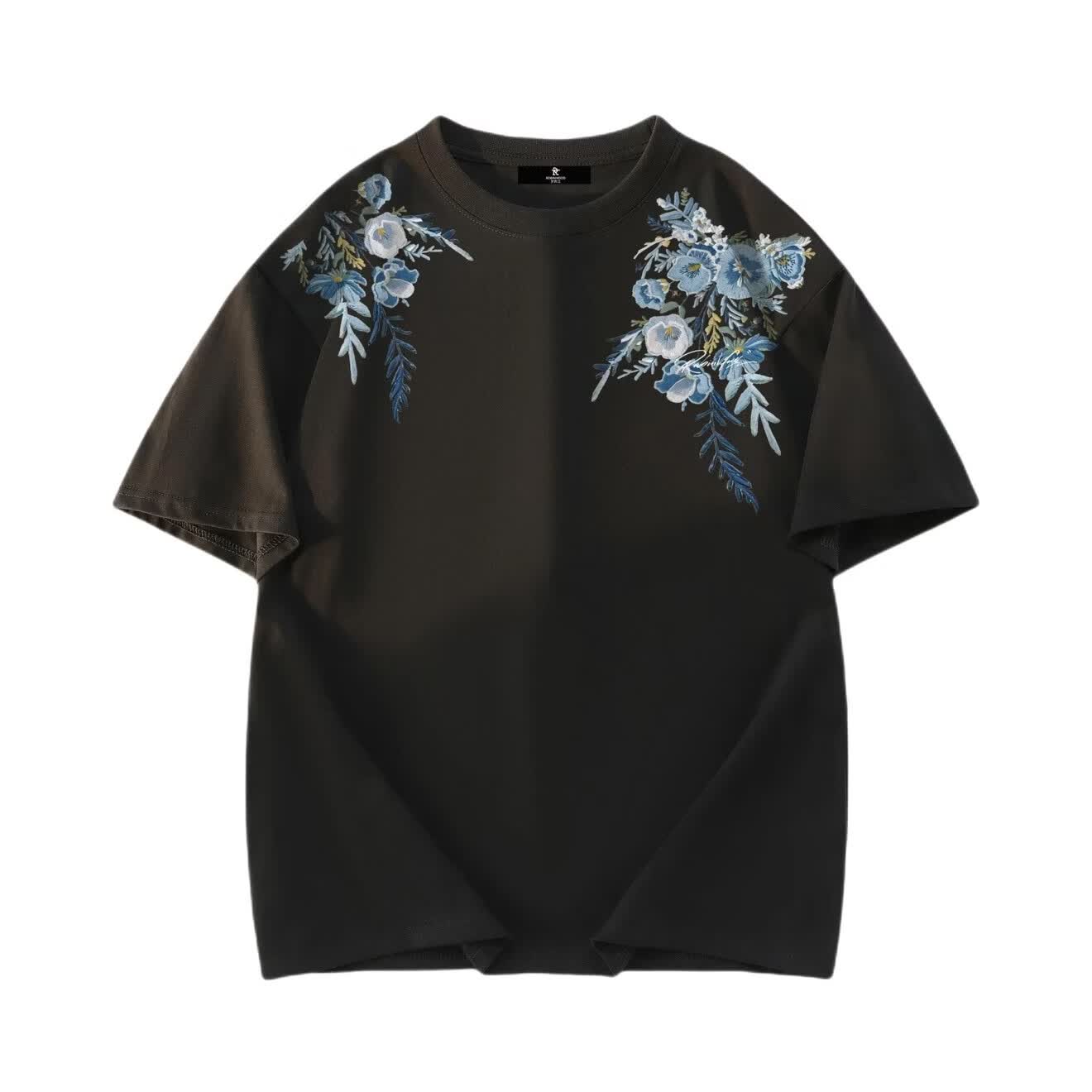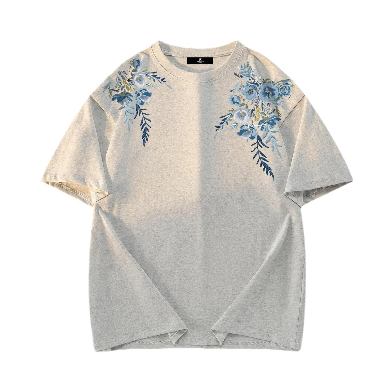 ROBINHOOD印花纯棉花卉圆领短袖T恤 SR6A-25T001-YHA5738 白花灰 XL
