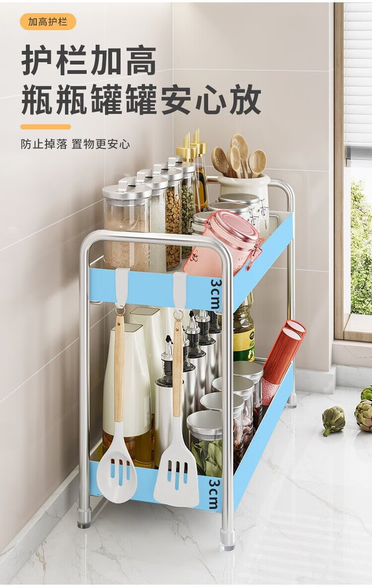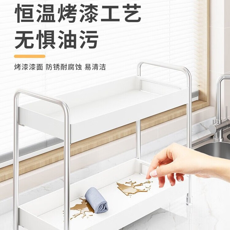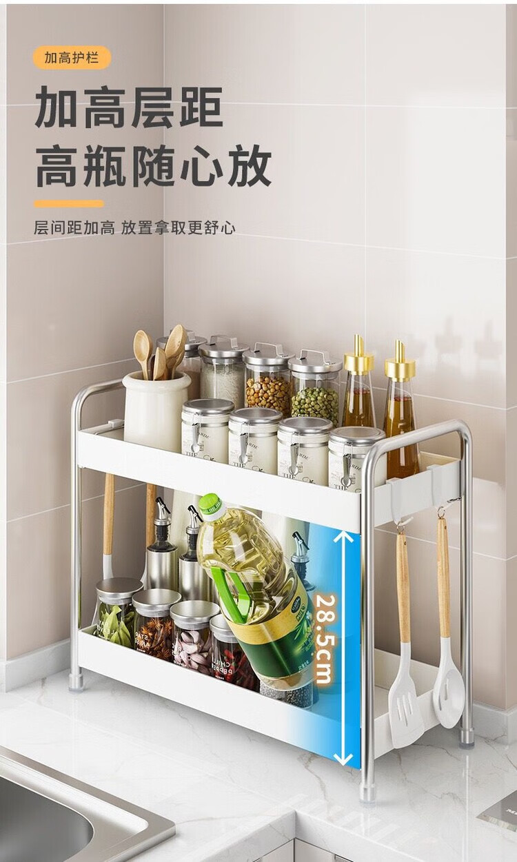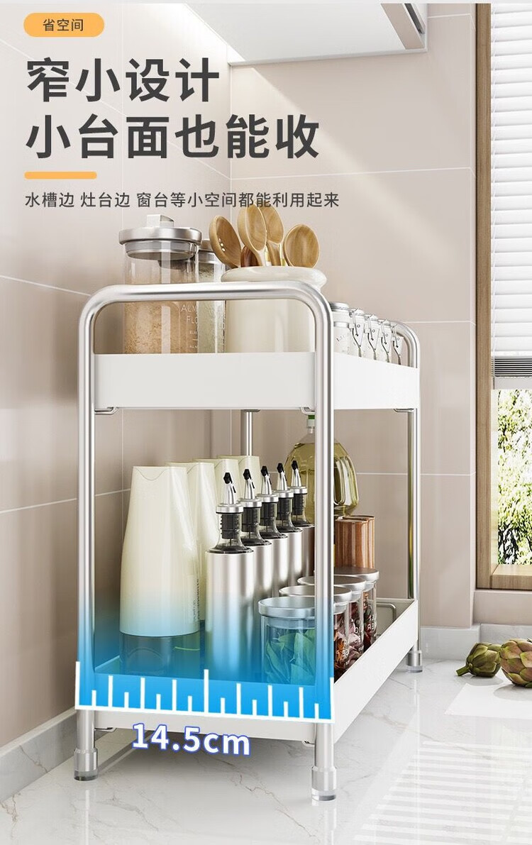 简漾不锈钢厨房调料架台面窄小调品置物架多功能油盐酱醋收纳架 免螺丝简易安装 奶油白2层29长