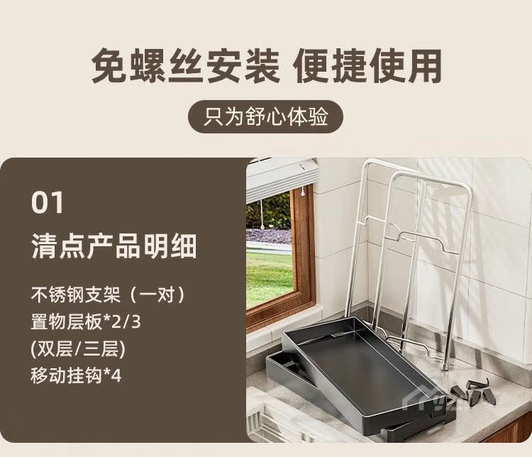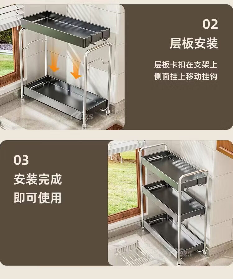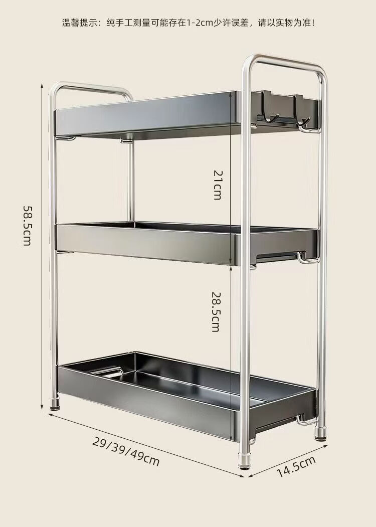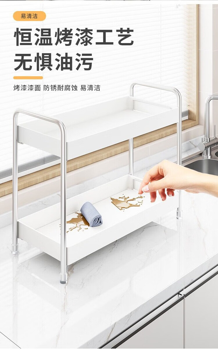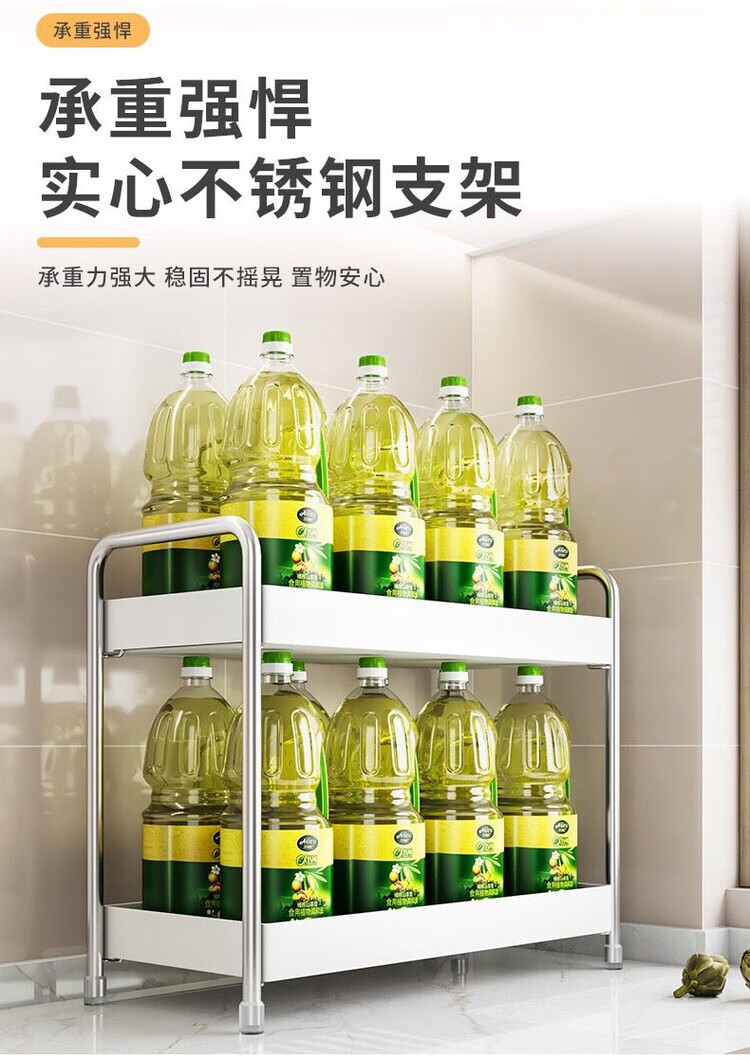 简漾不锈钢厨房调料架台面窄小调品置物架多功能油盐酱醋收纳架 免螺丝简易安装 奶油白2层29长