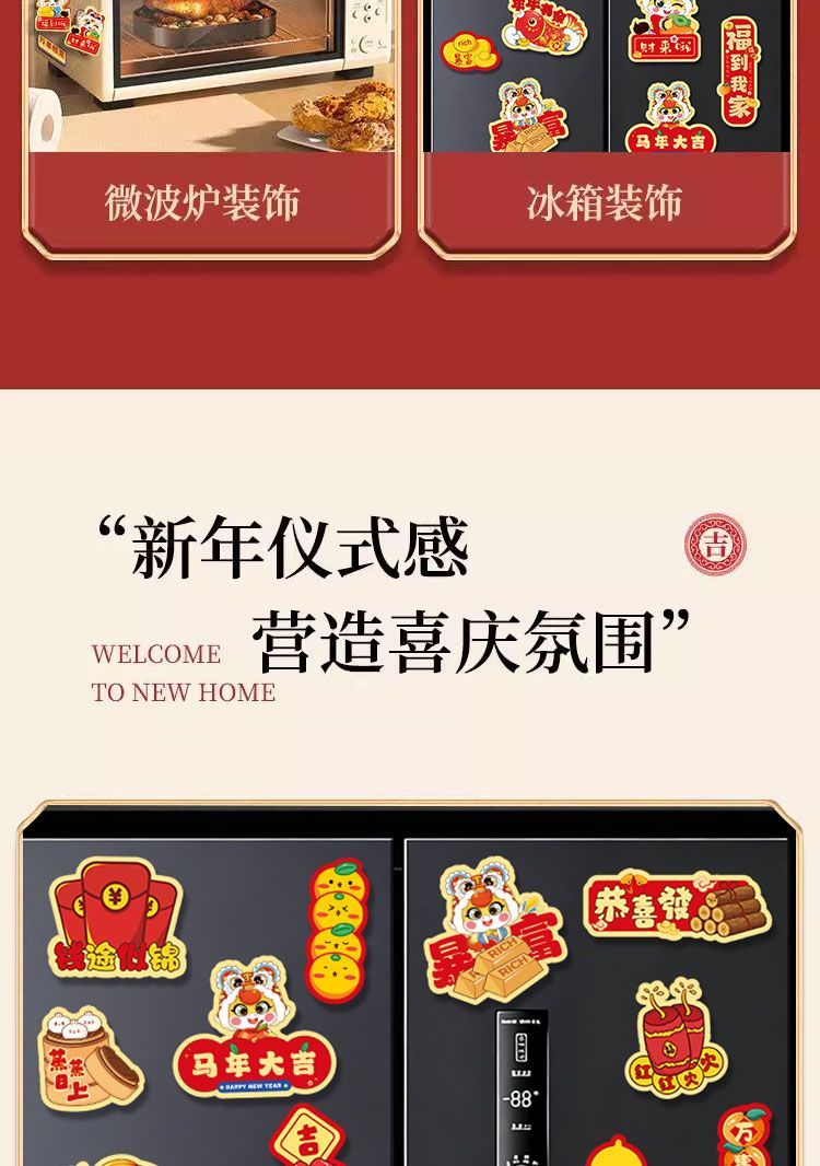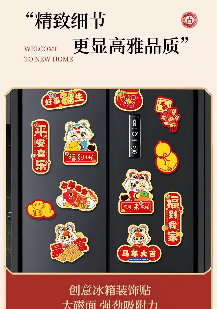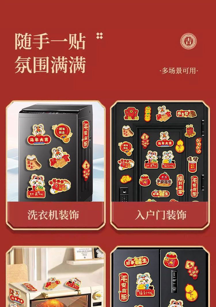 OYKTN磁吸卡通冰箱贴2026马年节日氛围布置磁力贴新春佳节室内布置用品 新款全磁吸【冰箱贴】+【车贴】 套装1-十二件套
