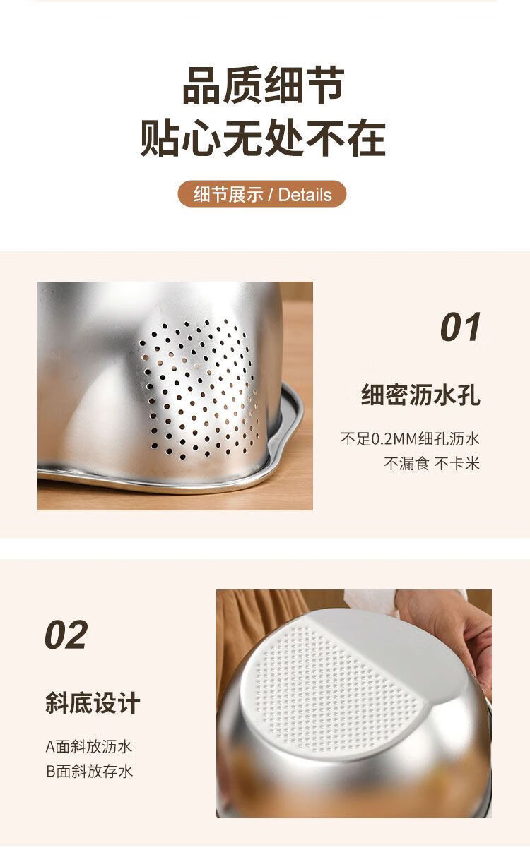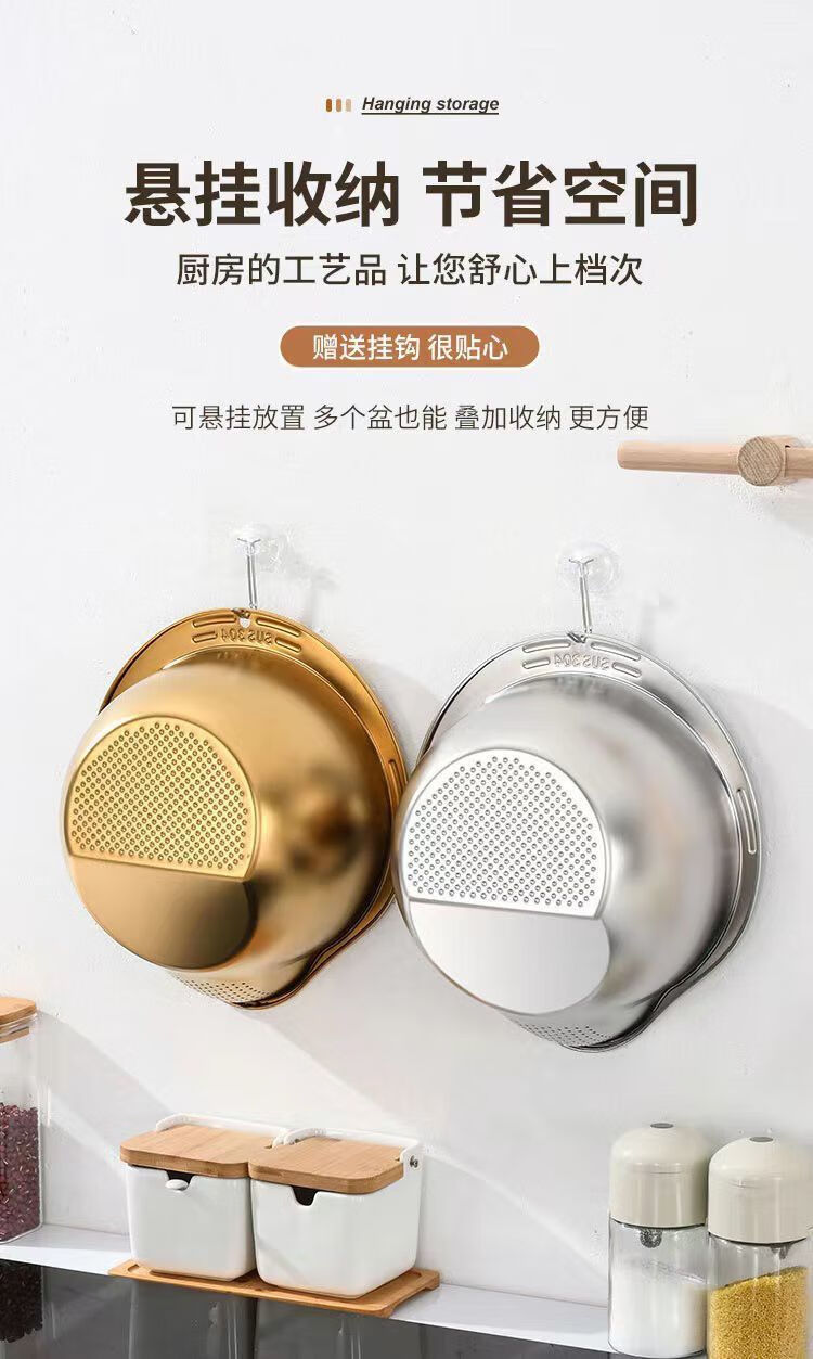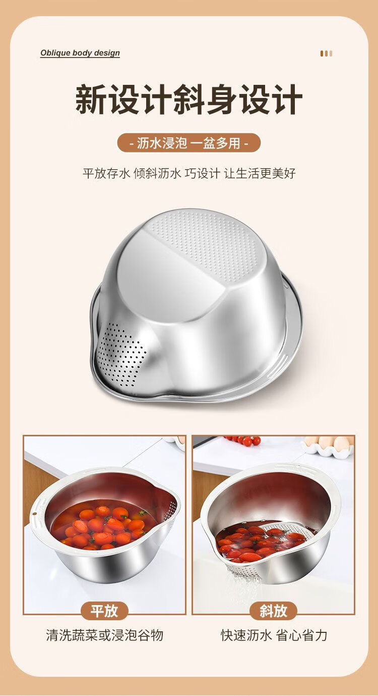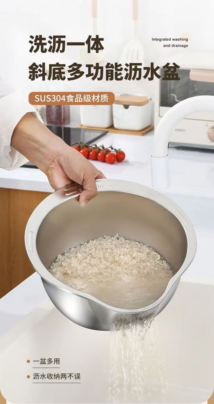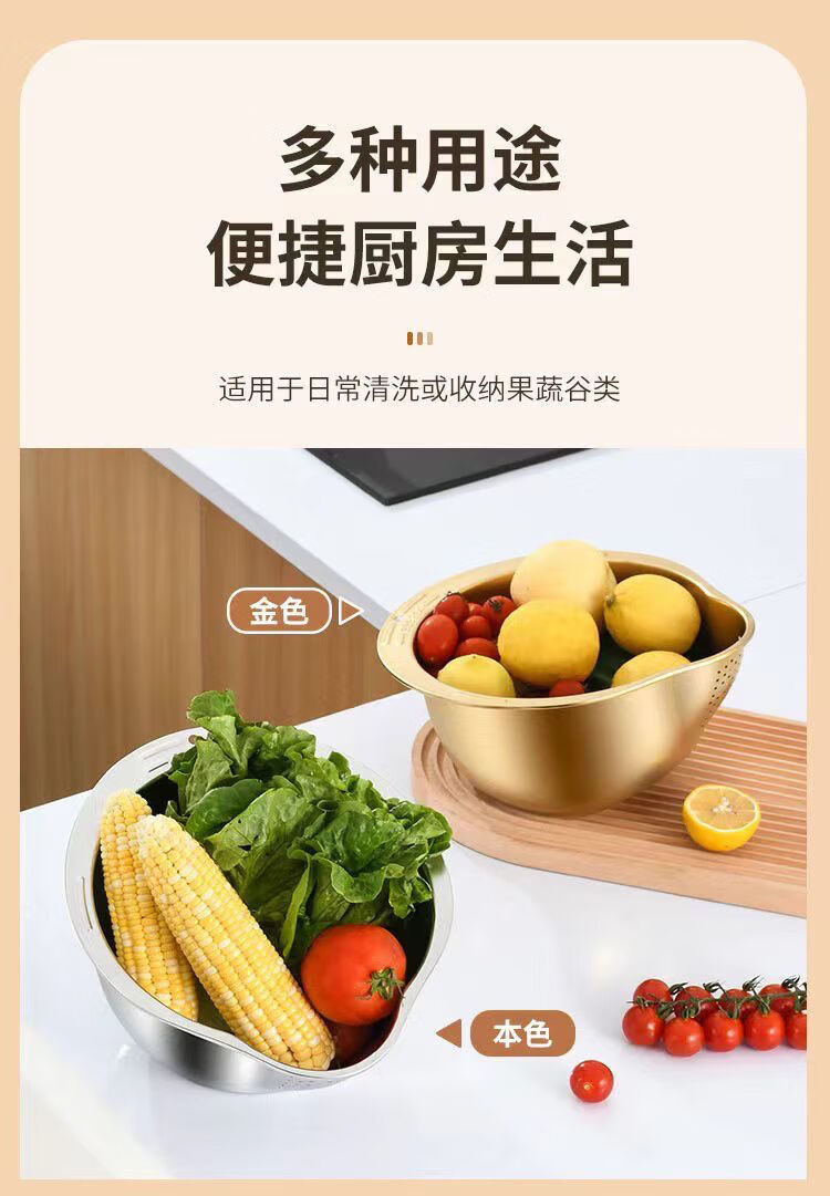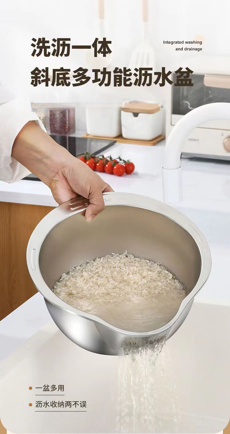 泰禧阁沥水篮食品级304不锈钢沥水盆淘米神器厨房家用洗菜盆洗米筛专用 26厘米 万能盆沥水盆