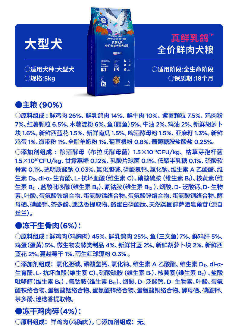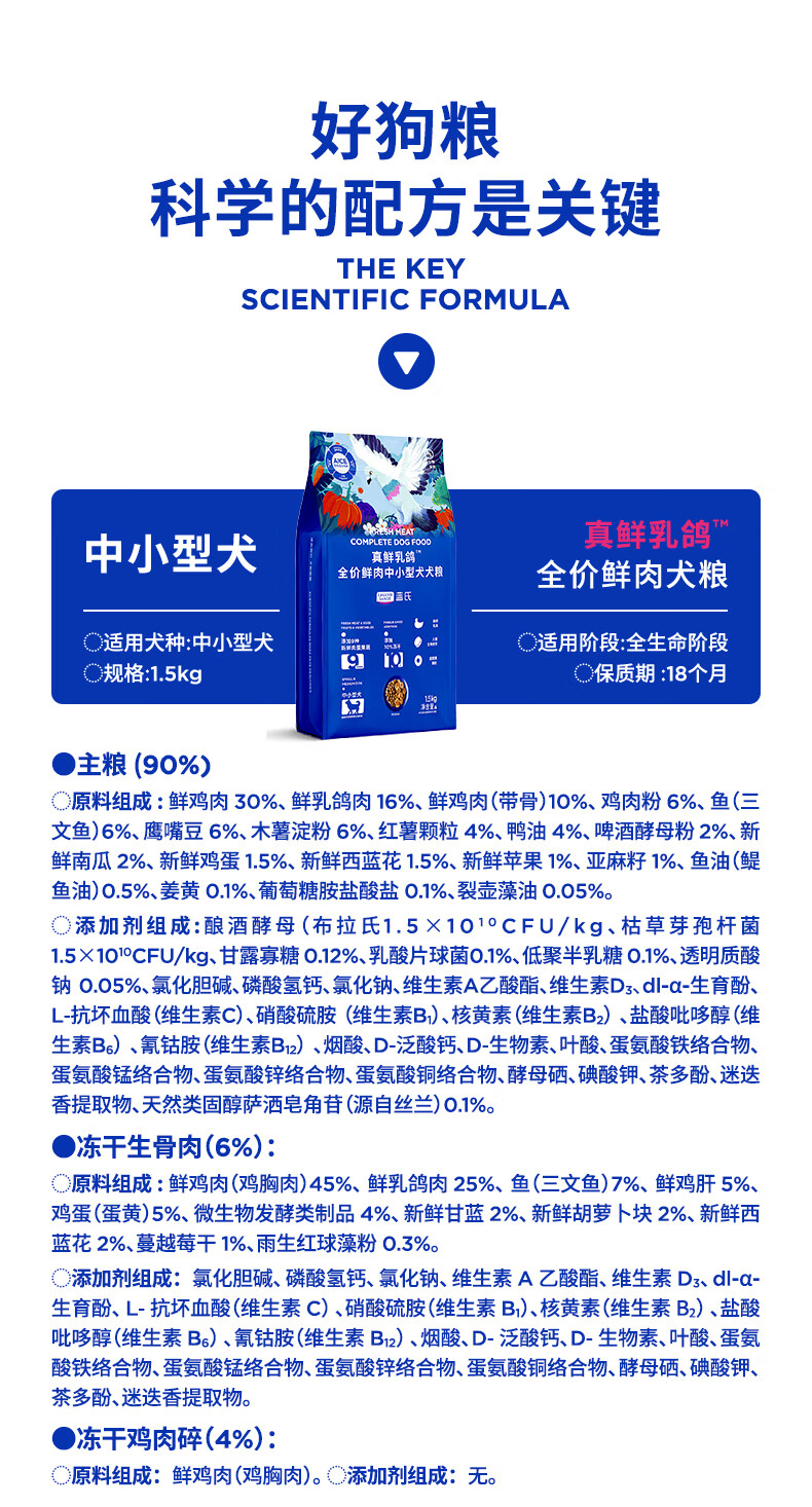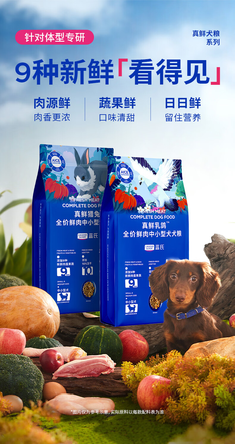LEGENDSANDY蓝氏狗粮真鲜乳鸽中小型犬泰迪比熊生骨肉冻干鲜肉犬粮4.5kg9斤