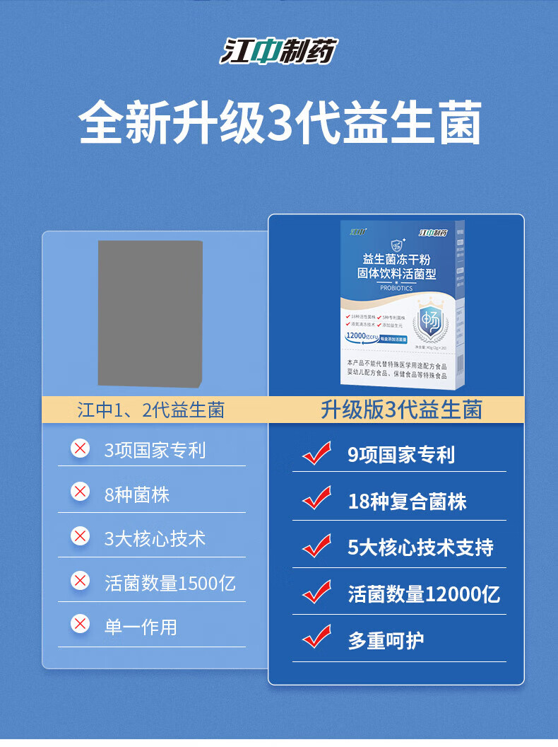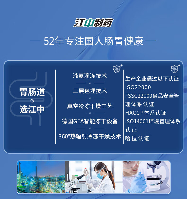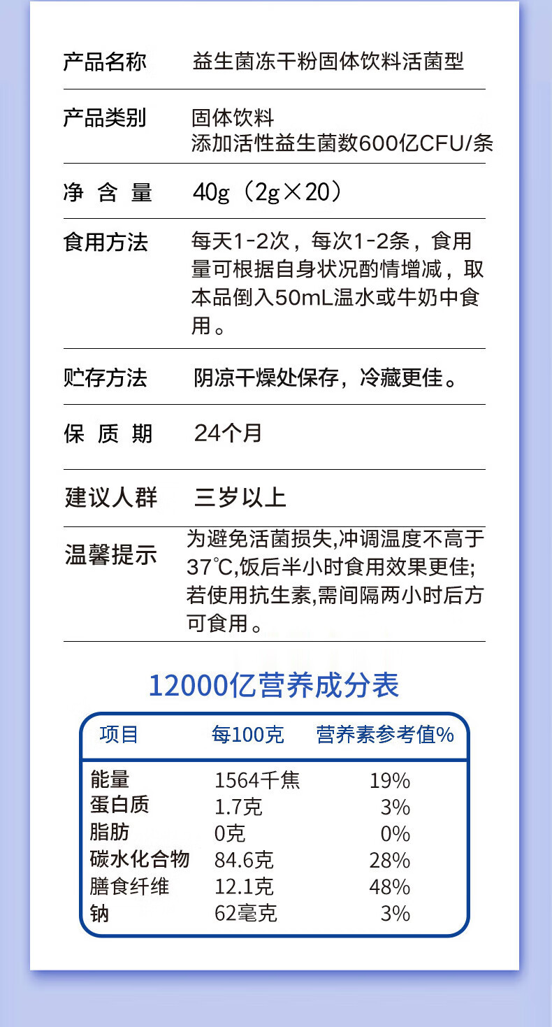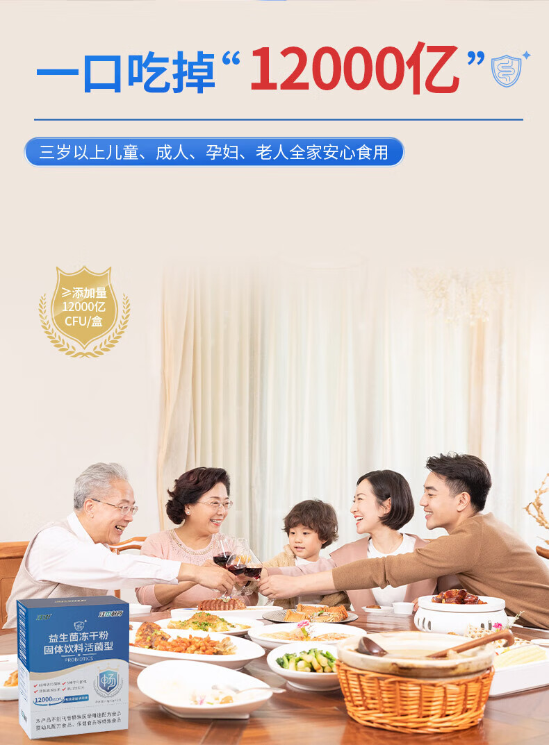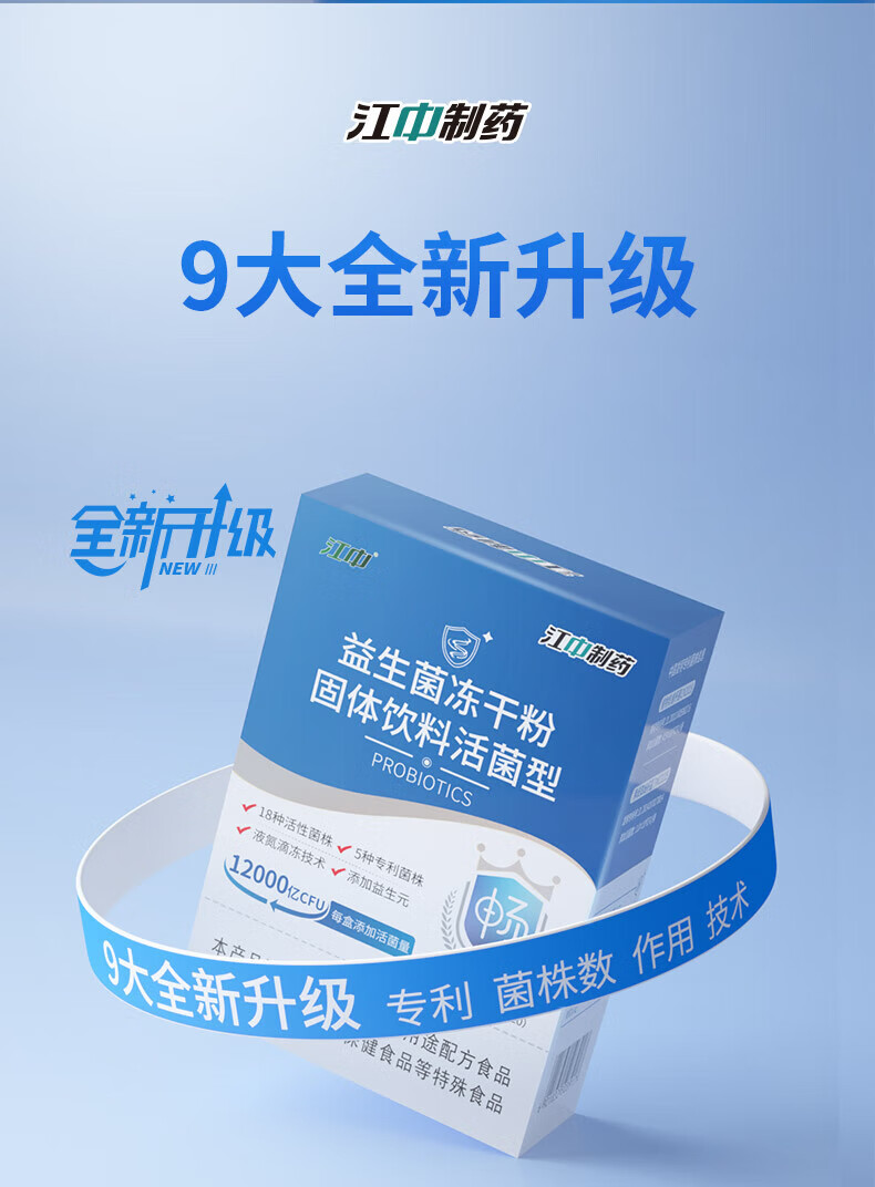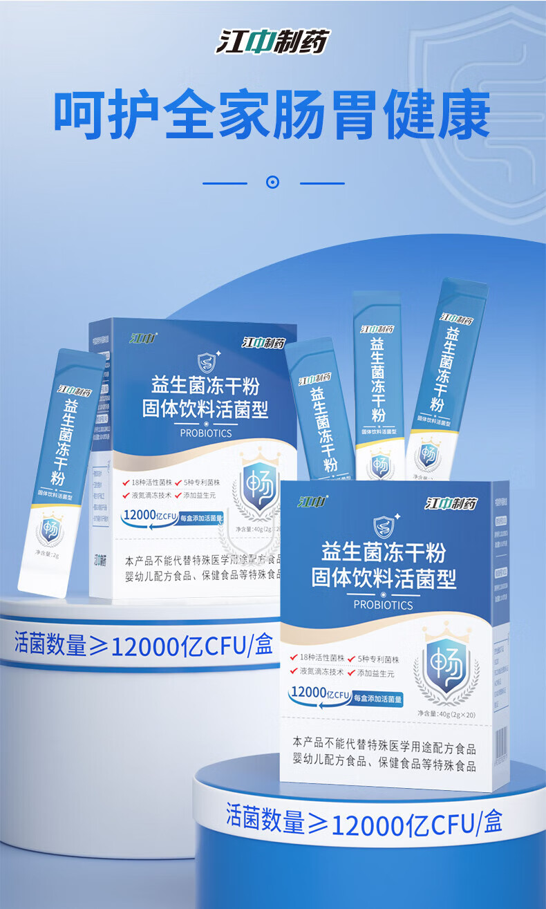 江中 益生菌冻干粉固体饮料1.2万亿活性菌株成人肠胃肠道益生元调理 1.2w亿活菌【周期装】 20条*3盒