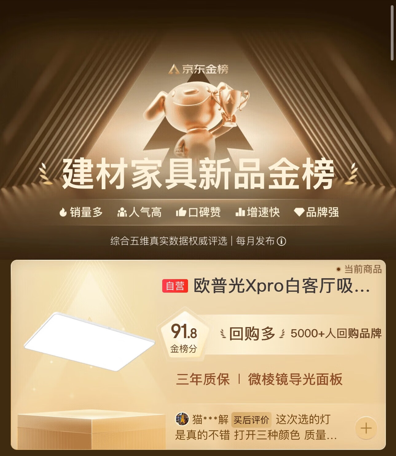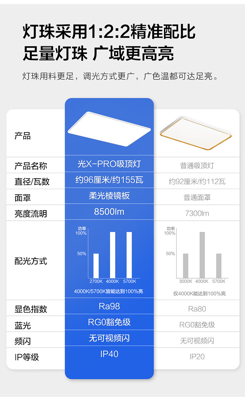 欧普照明(OPPLE)吸顶灯全光谱护眼微棱镜防眩智能LED客厅灯灯具包安装套餐3