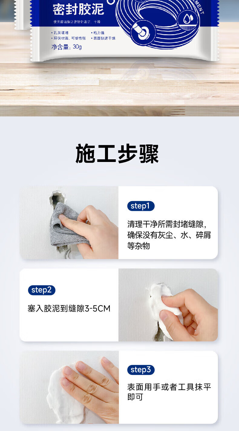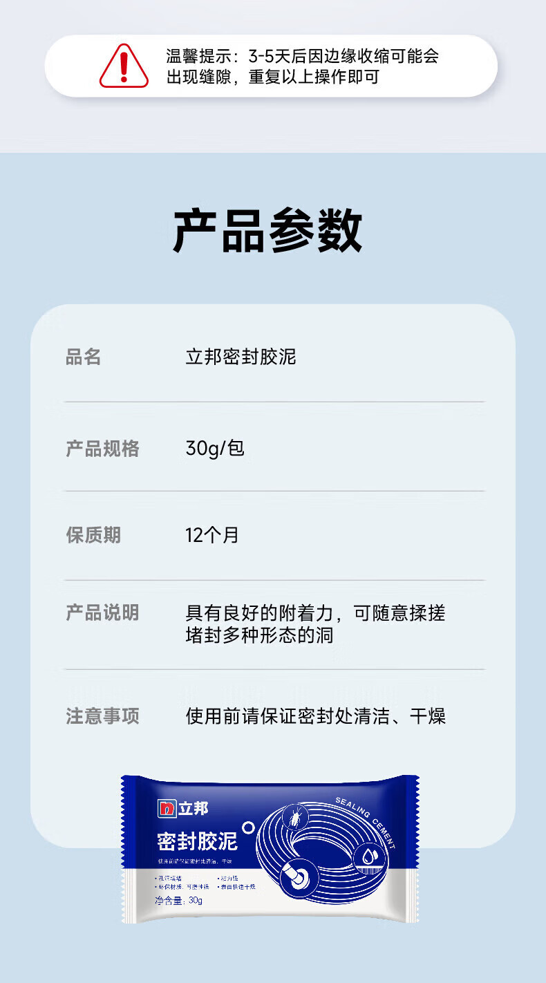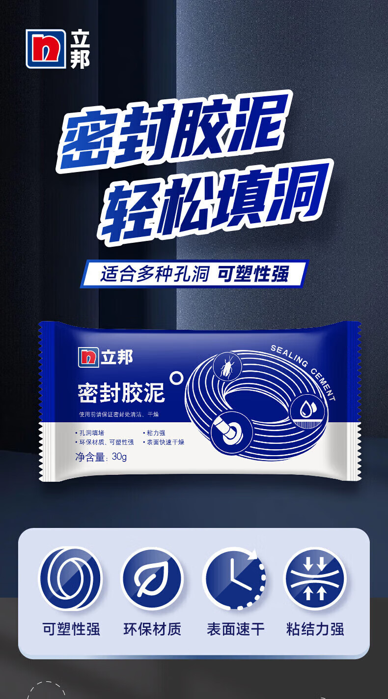 立邦密封胶泥 下水管道防水防臭封堵泥 空调开关孔眼堵洞口堵漏胶泥 6包【防霉+0甲醛】空调孔适用 30g/包