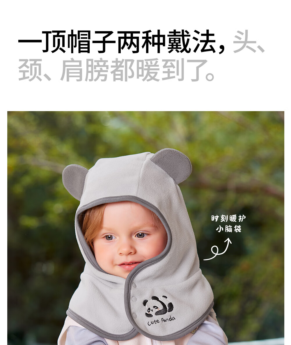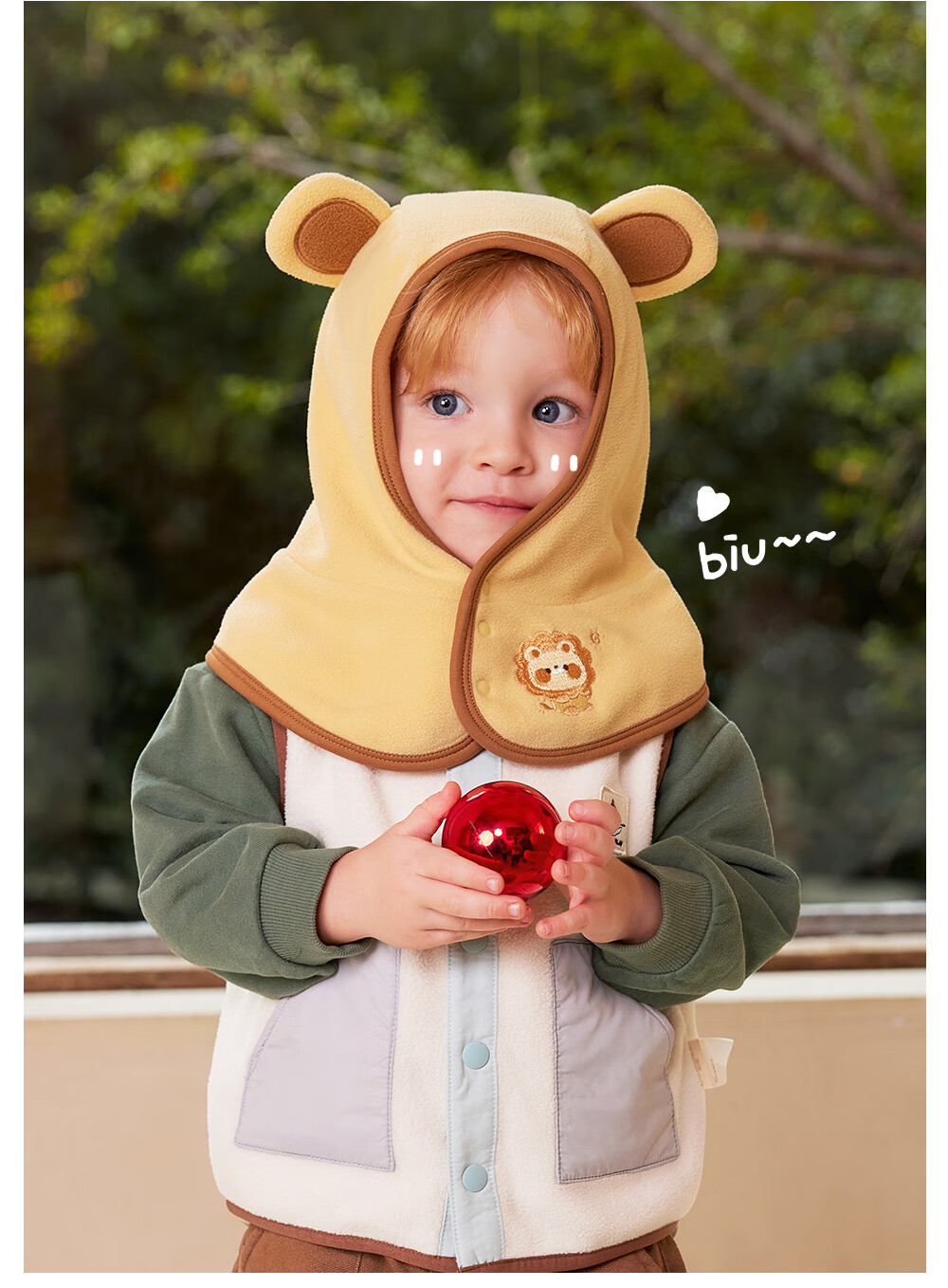 贝肽斯婴儿帽子儿童围巾一体帽冬季宝宝护耳帽冬季外出保暖防风帽 小狮阿里 适合6个月-2岁 头围44-50cm