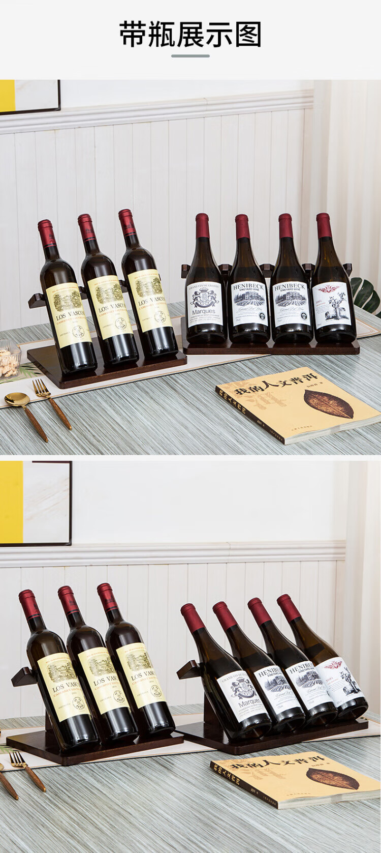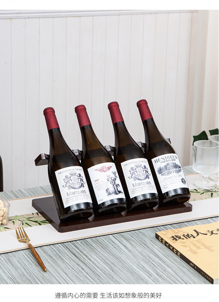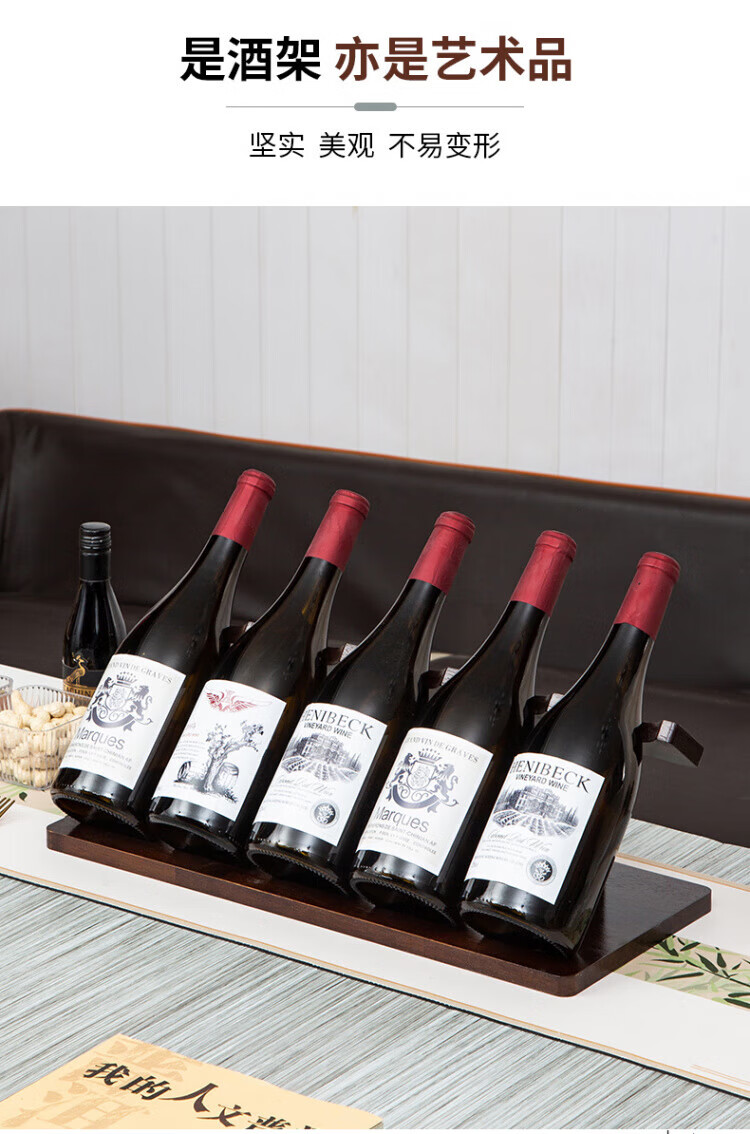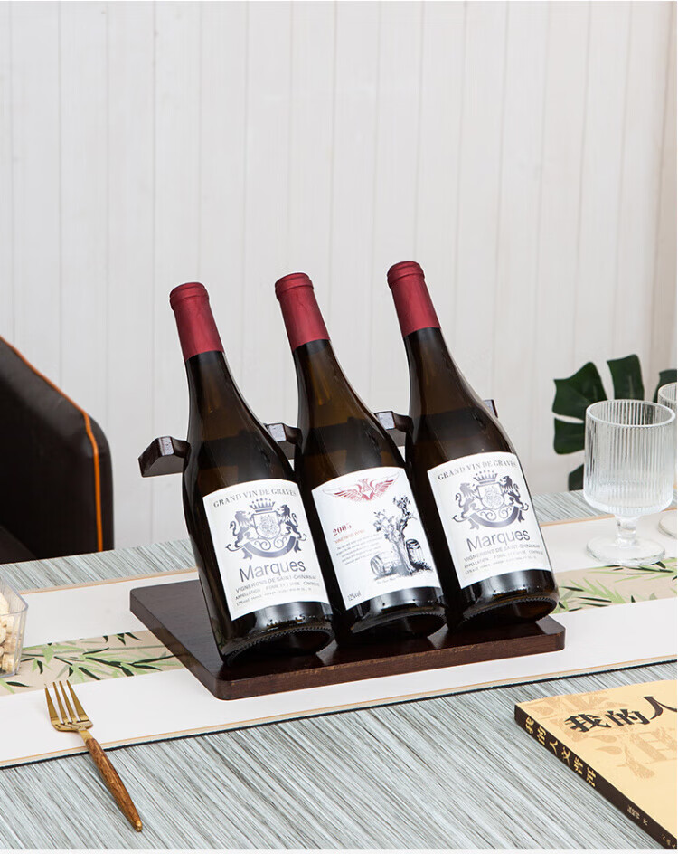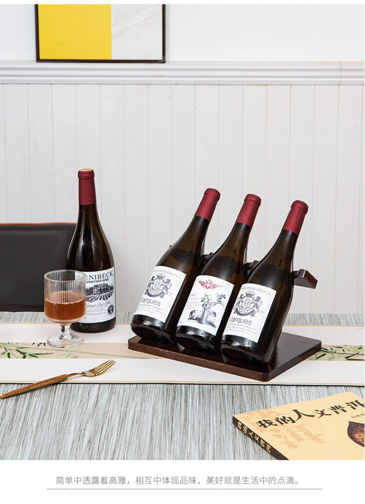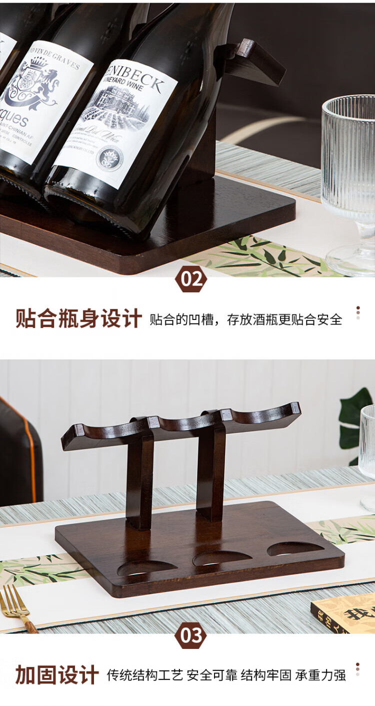 WCZ德国高端极简易红酒架摆件橡胶木实木酒瓶展示架葡萄酒架子酒具配 橡胶木胡桃色可放3瓶