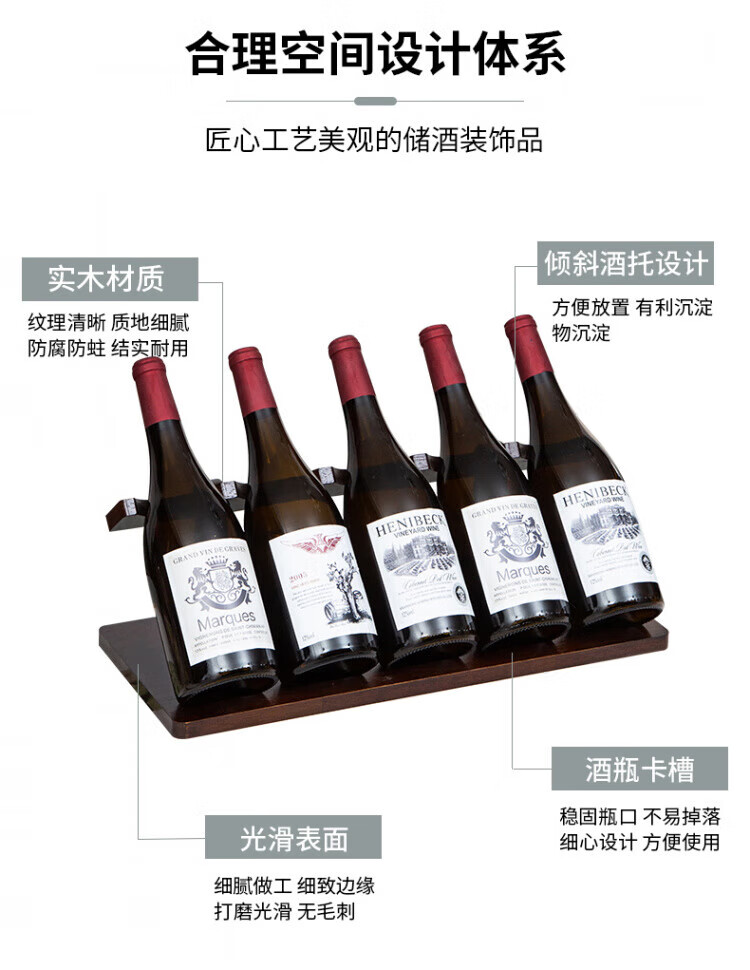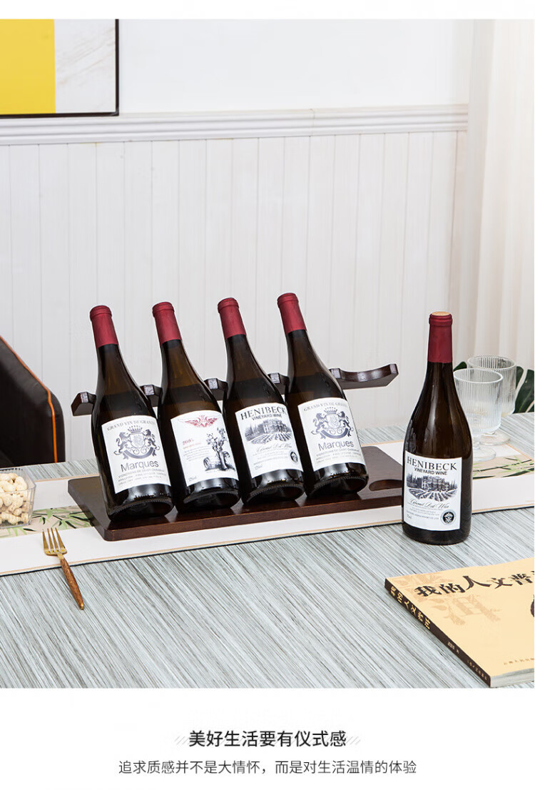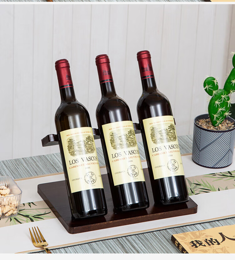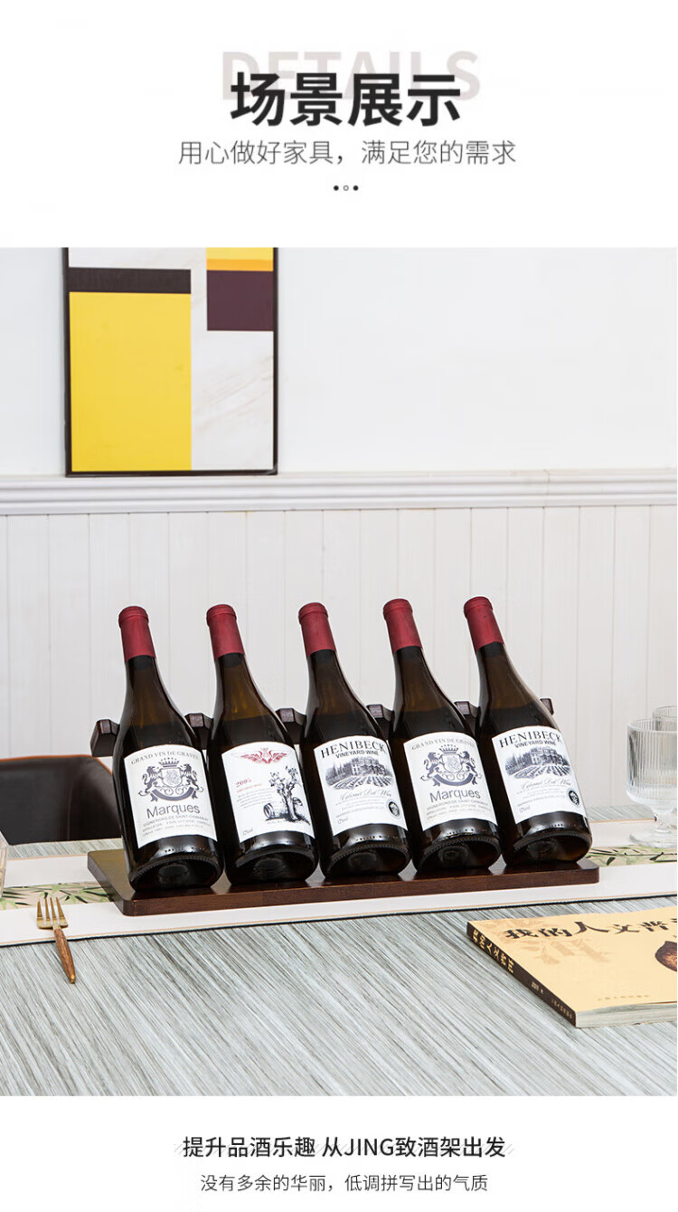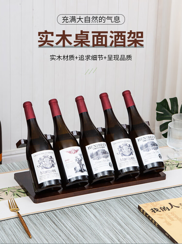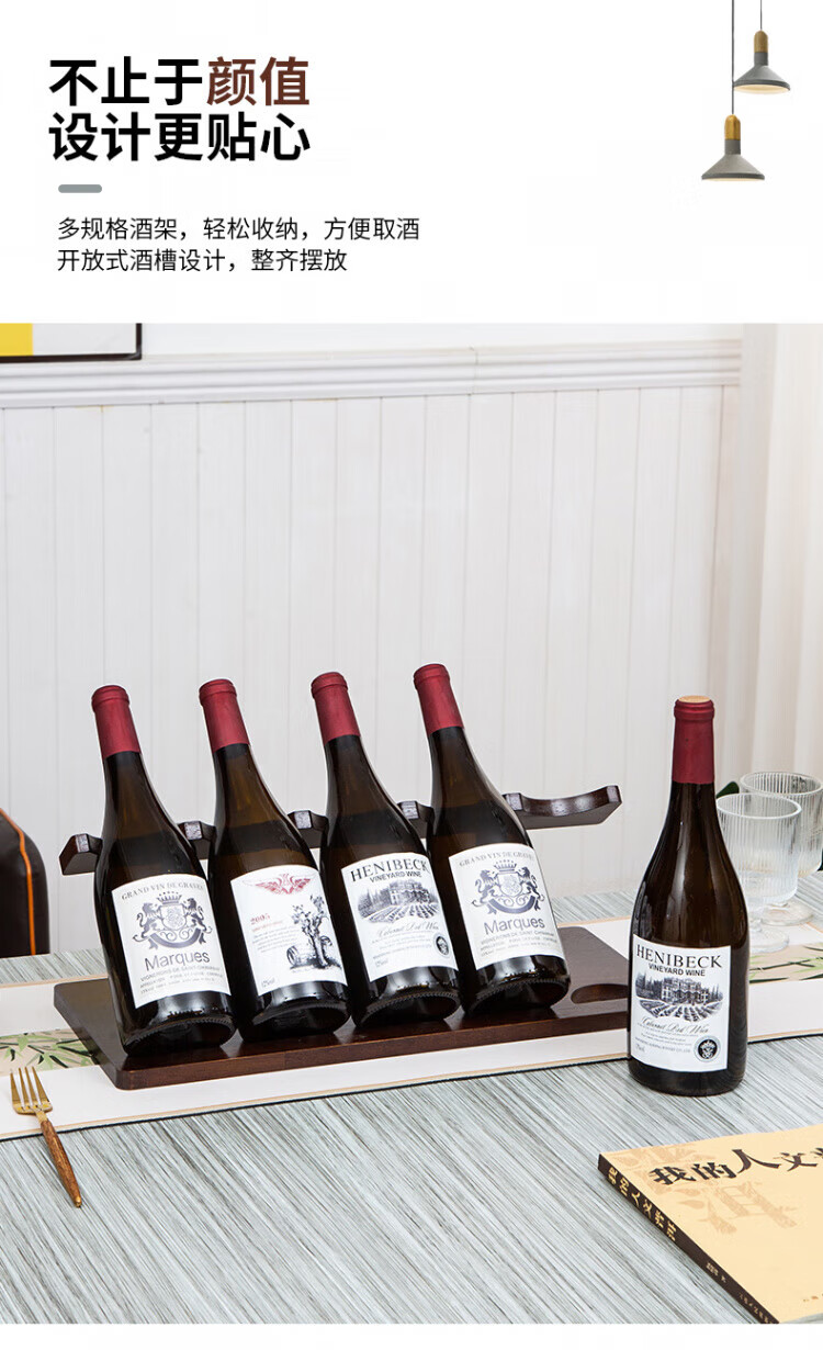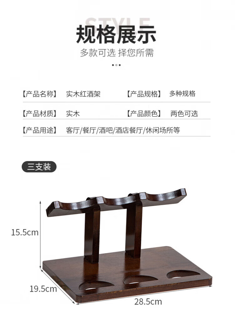 WCZ德国高端极简易红酒架摆件橡胶木实木酒瓶展示架葡萄酒架子酒具配 橡胶木胡桃色可放3瓶