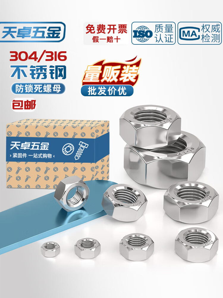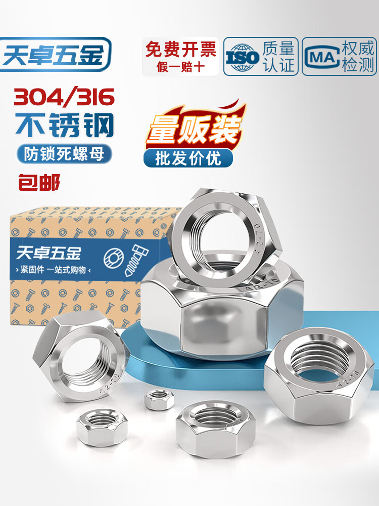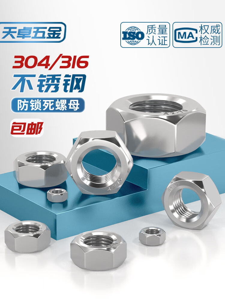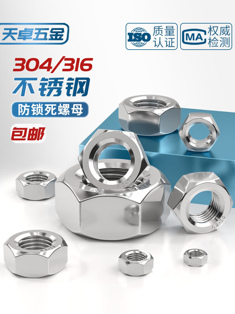 天卓五金防锁死螺母304不锈钢煮油防咬死六角螺帽5-M30锁无忧螺丝帽DIN934 ---以下为304材质防锁死螺母---