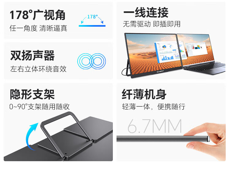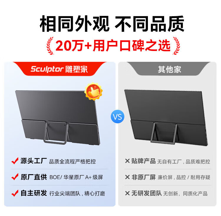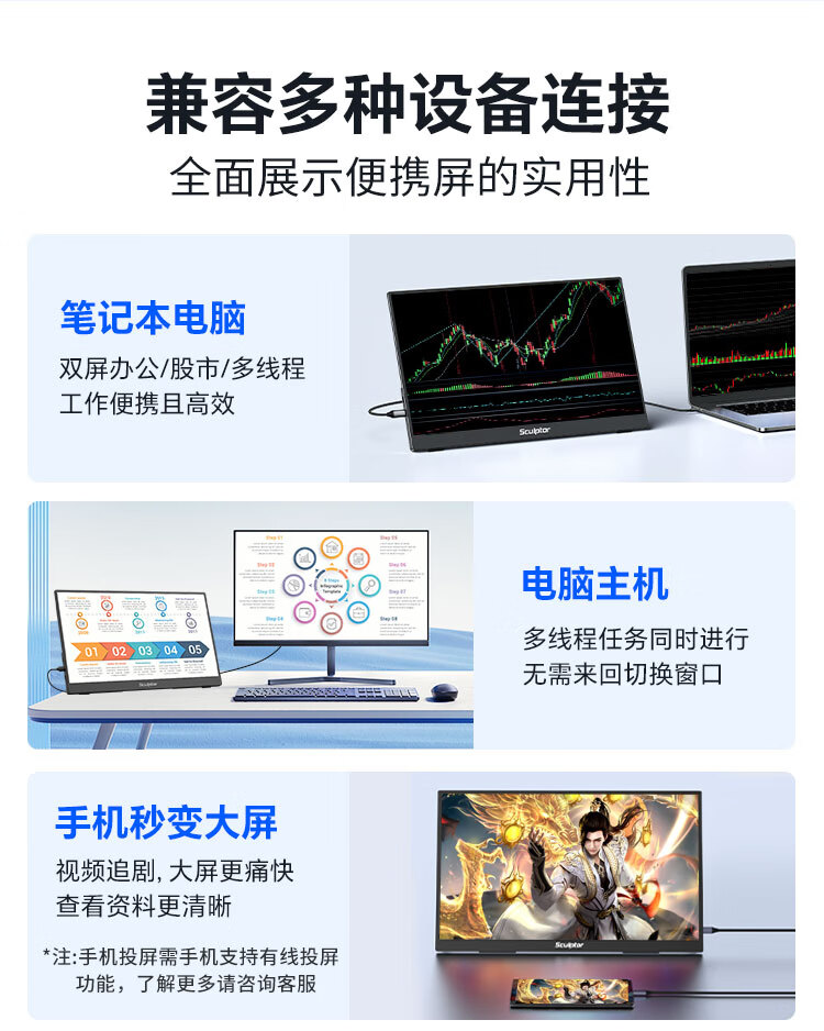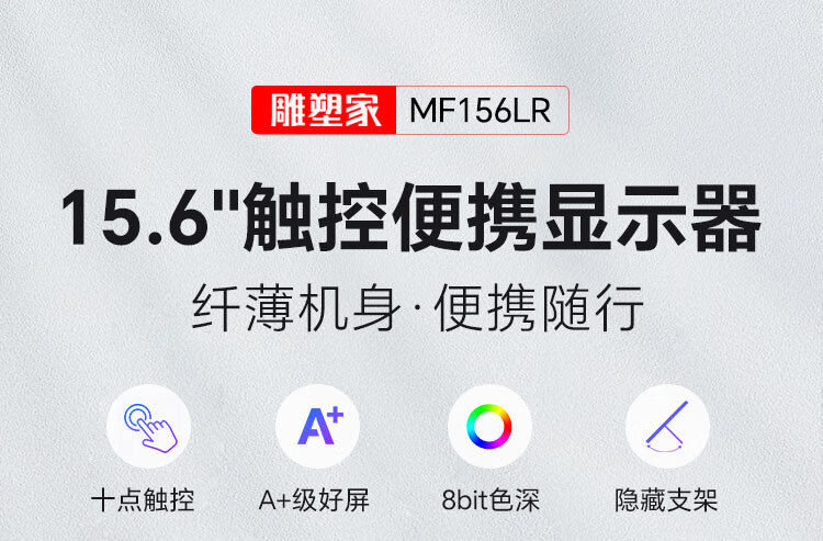 雕塑家15.6英寸便携式显示器FHD触控屏 电脑显示副屏双Type-C一线通手机笔记本switch PS5拓展屏MF156LR