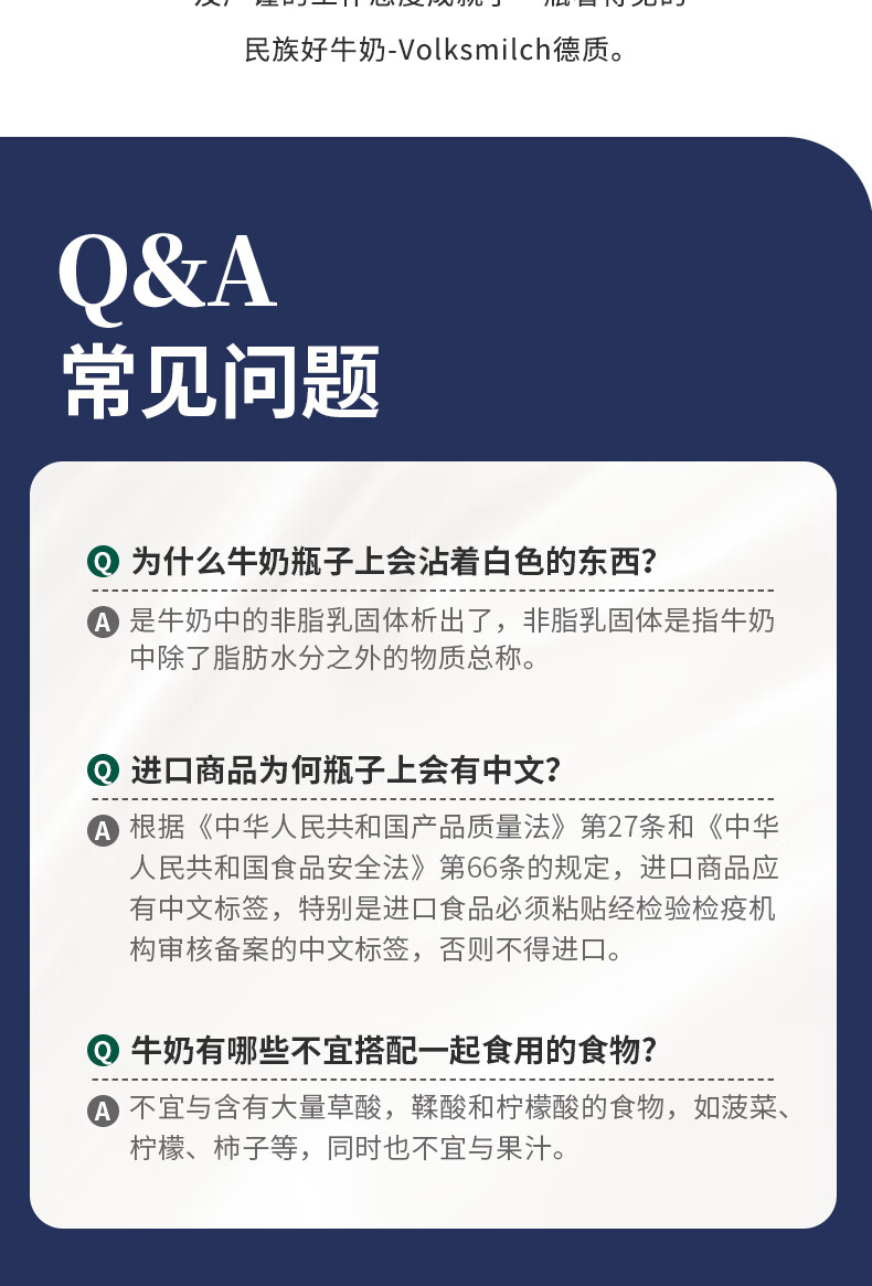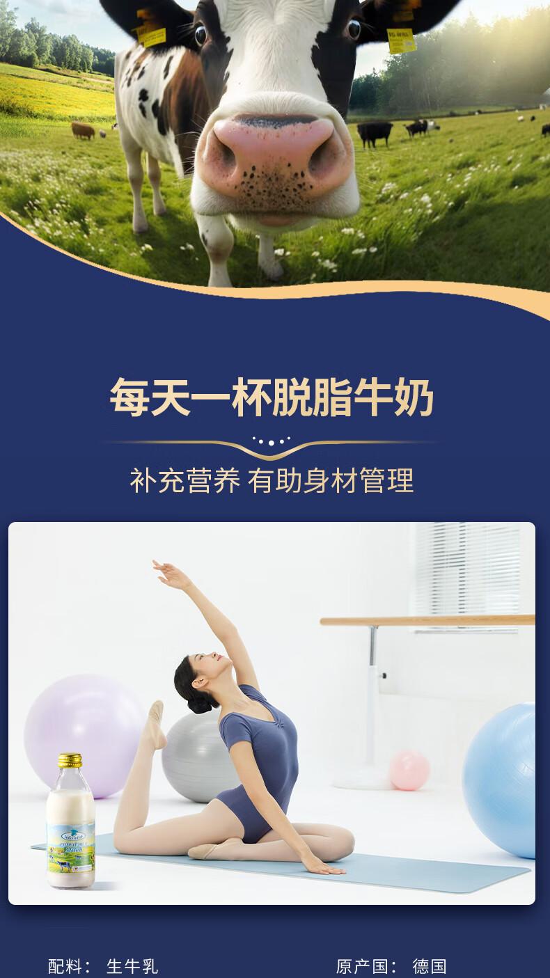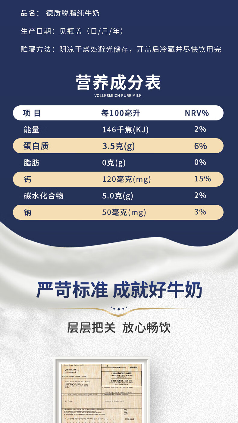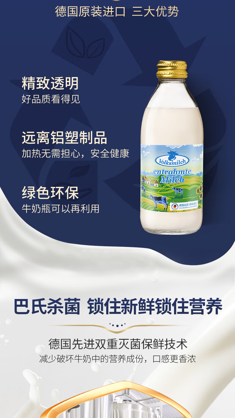德质(Volksmilch)脱脂纯牛奶240ml*20整箱 进口牛奶 0脂0蔗糖脱脂牛奶