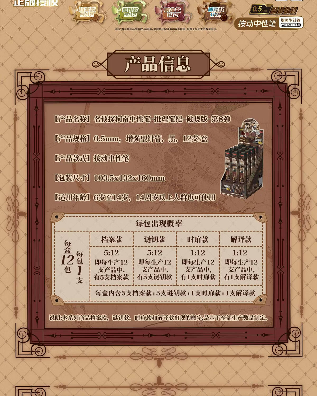 卡游 名侦探柯南中性笔破晓版1支装盲盒按动水笔签字笔文具学生考试专用笔