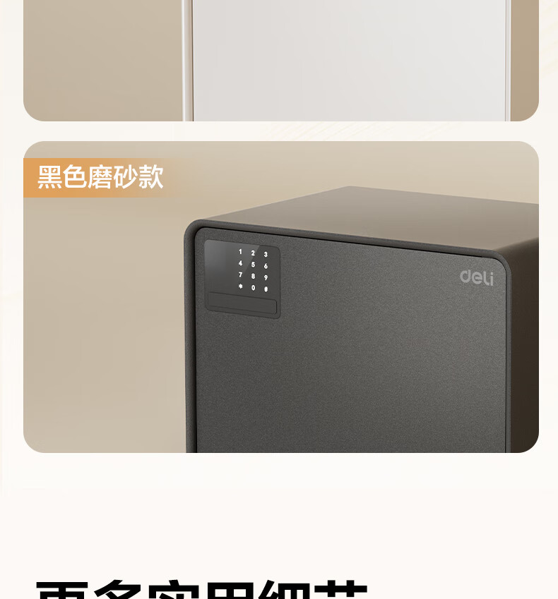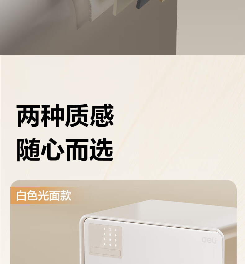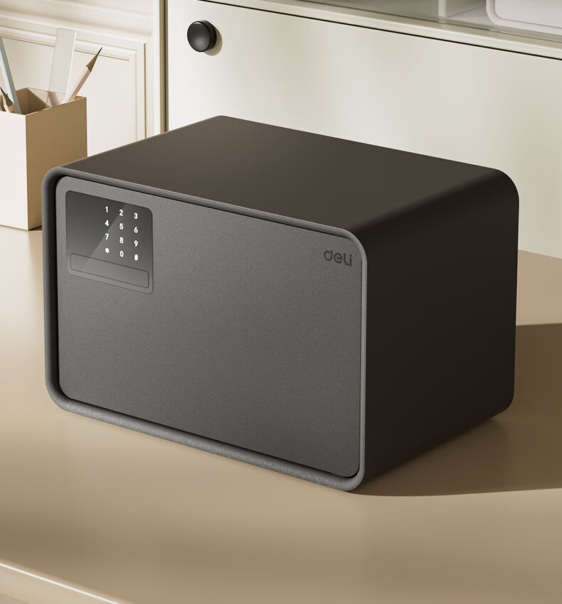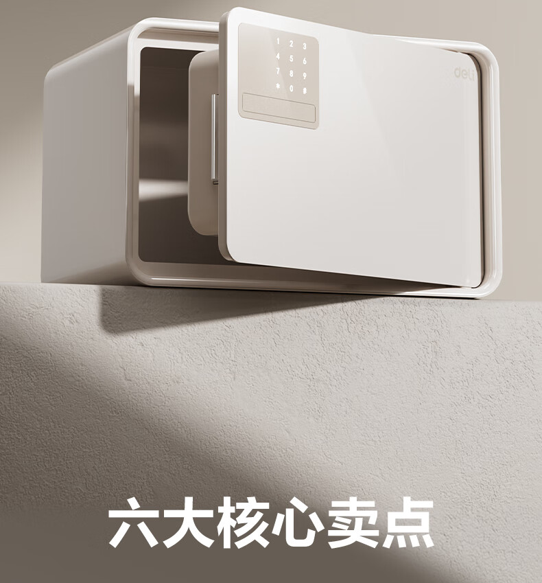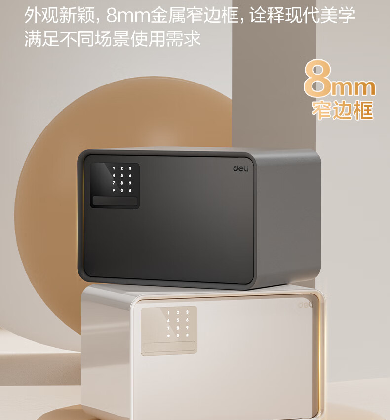 得力(deli)保险柜 25年新款保险箱 家用电子密码保管箱 自动开门 20cm 象牙黑