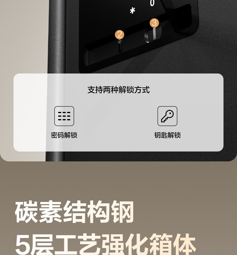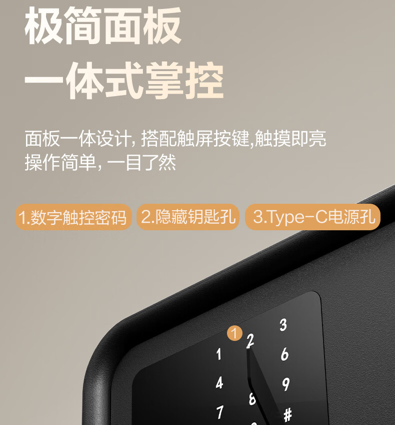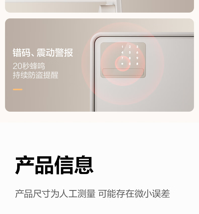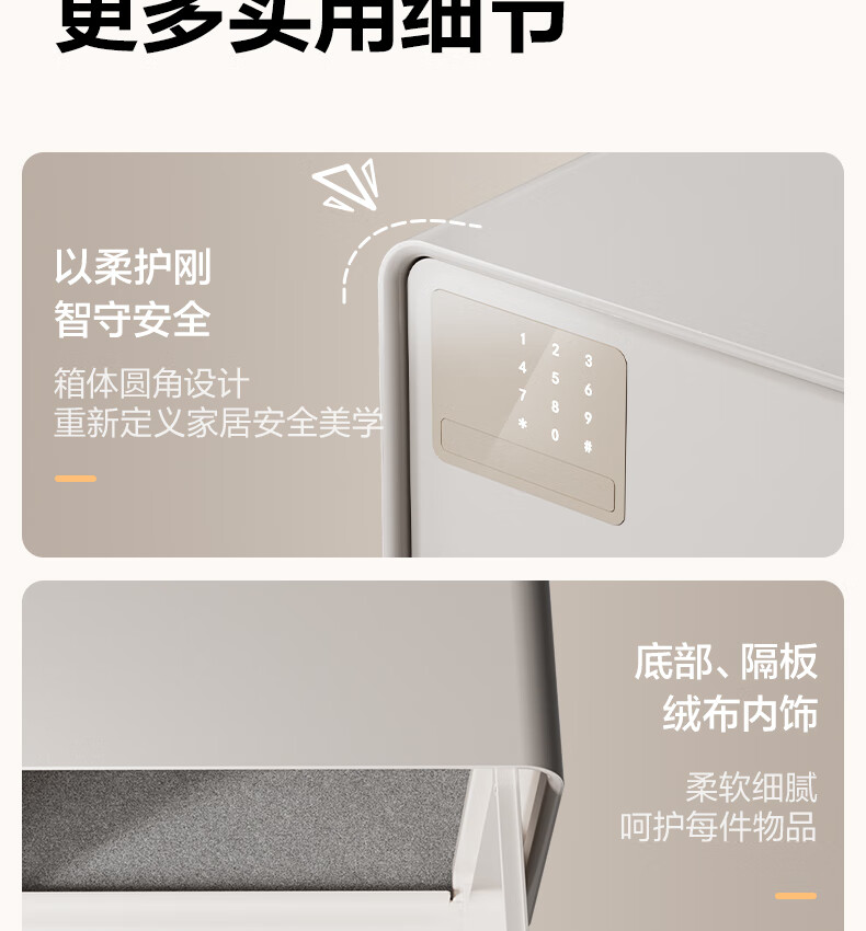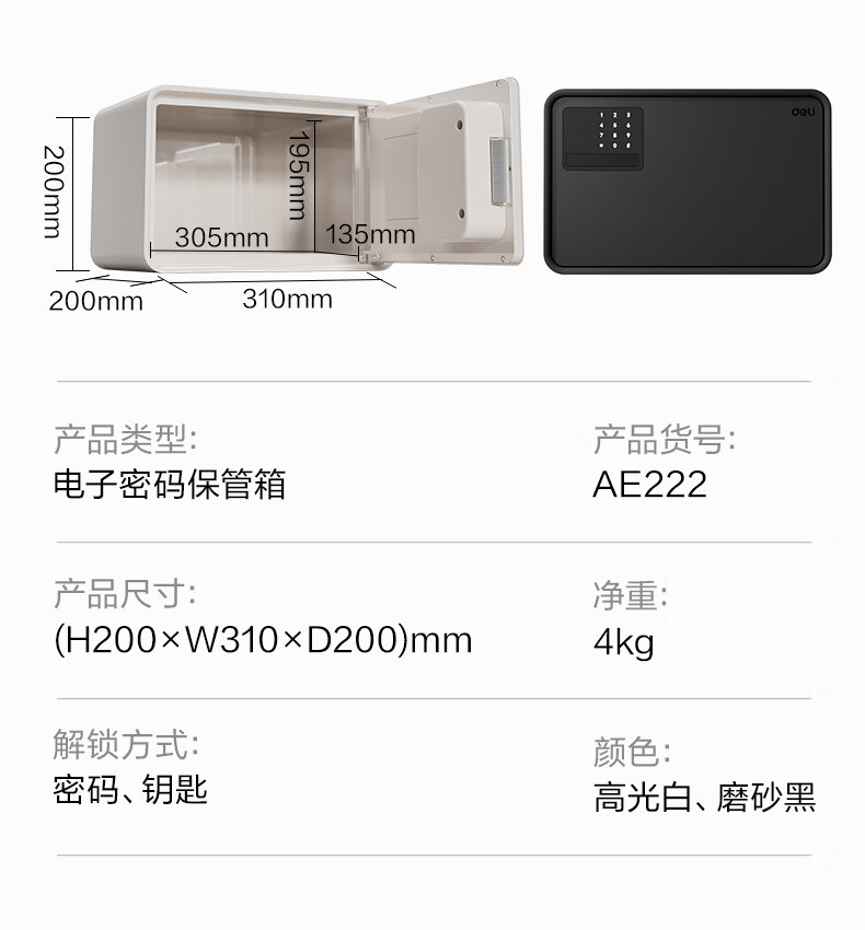 得力(deli)保险柜 25年新款保险箱 家用电子密码保管箱 自动开门 20cm 象牙黑