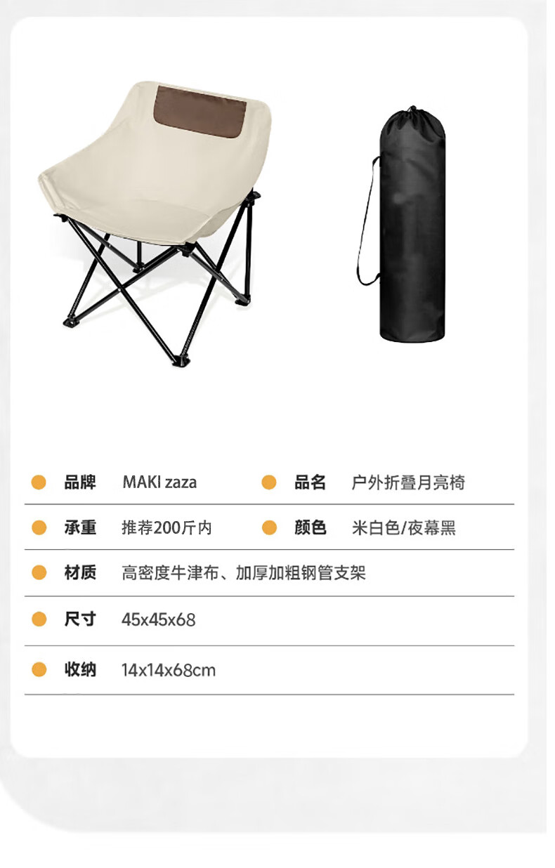 MAKI zaza户外折叠椅凳便携式露营装备桌椅搭配沙滩钓鱼野餐写生椅子桌子 月亮椅白色