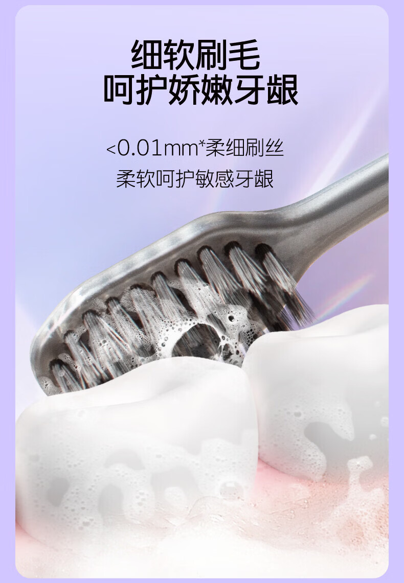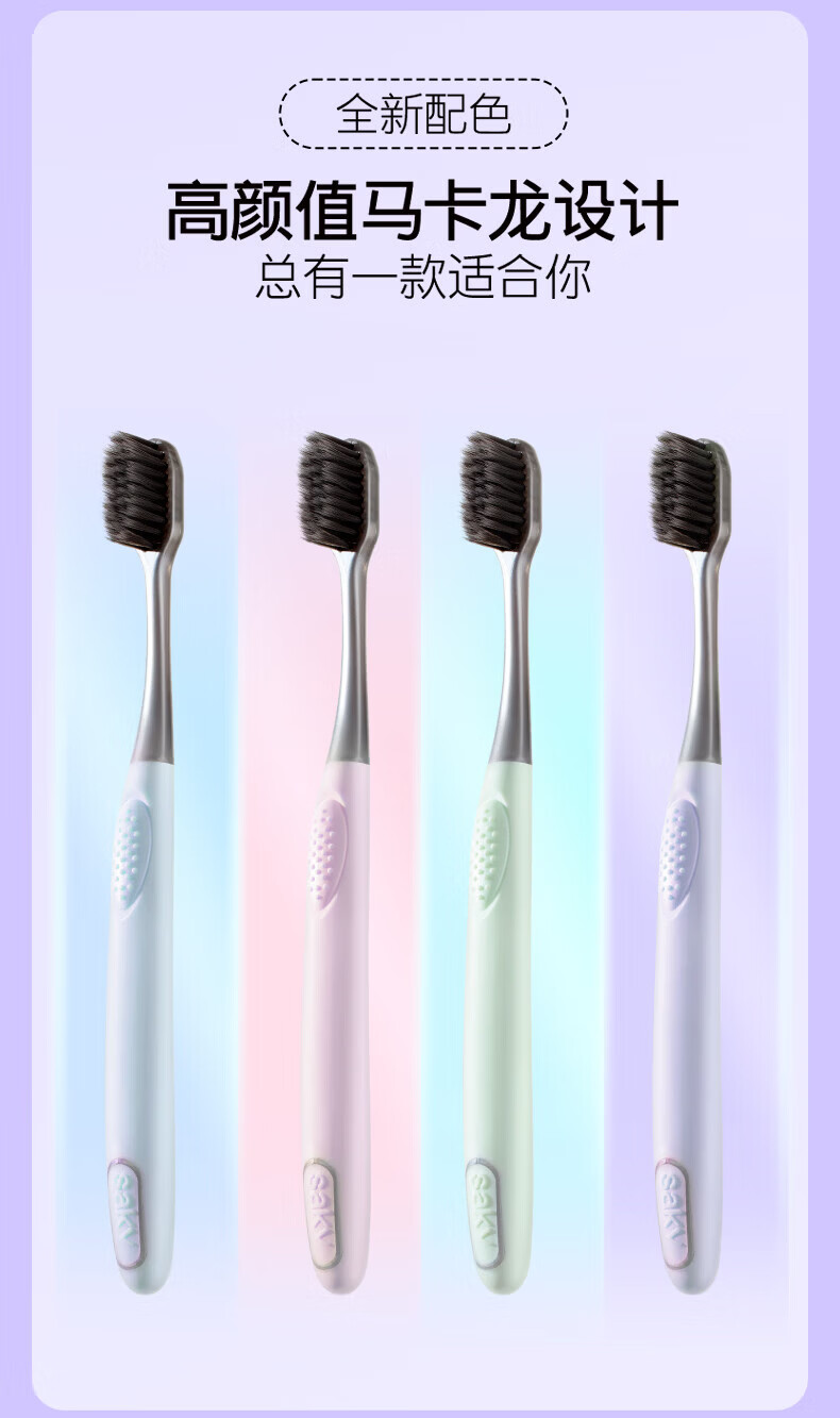 舒客炭丝清新洁净软毛牙刷装去异味清新口气吸附小刷头 炭丝 4支 (粉蓝)