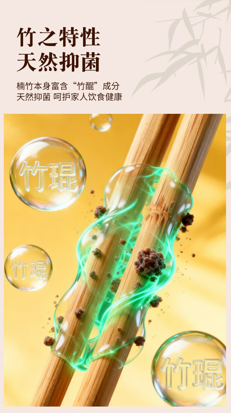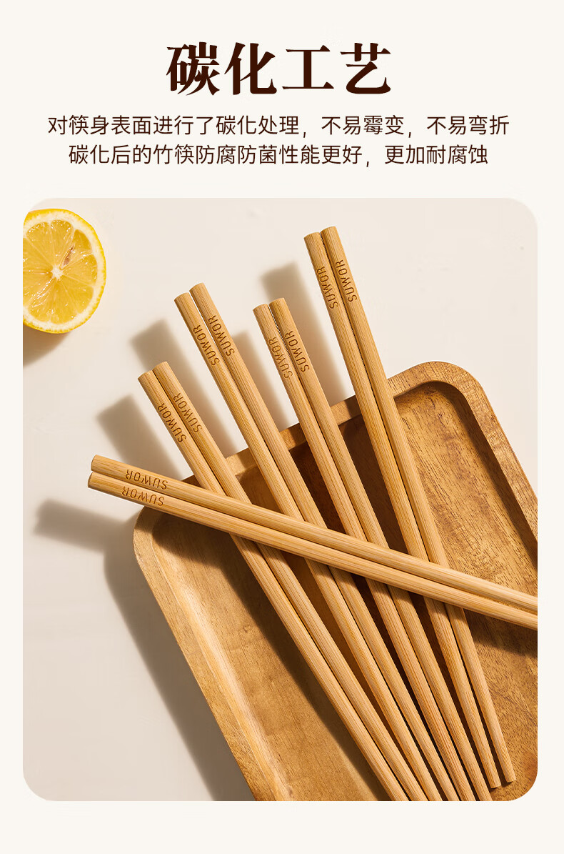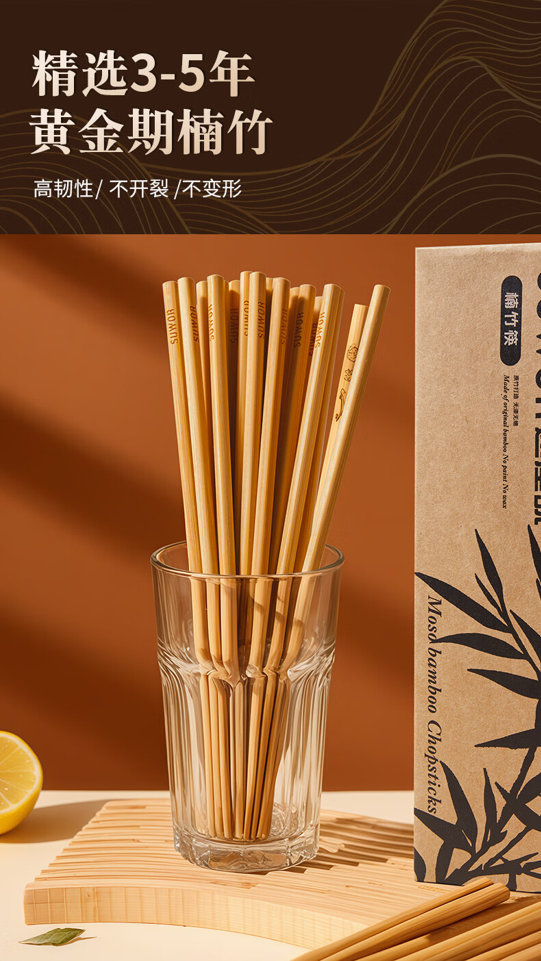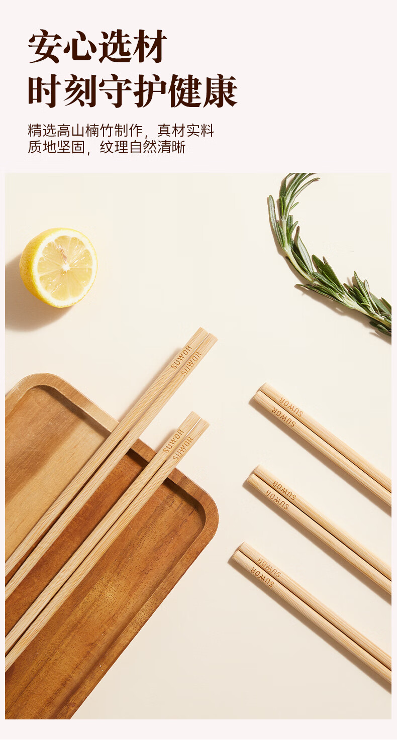 述屋说天然竹筷子 竹质餐具套装食品级防霉抗菌家用无漆无蜡10双装