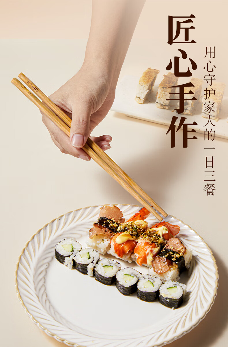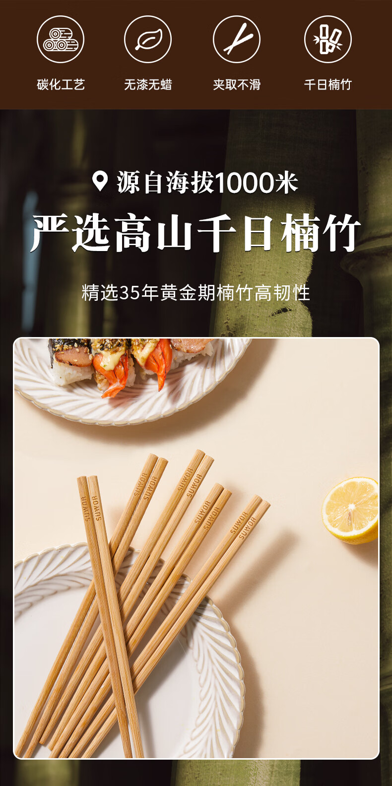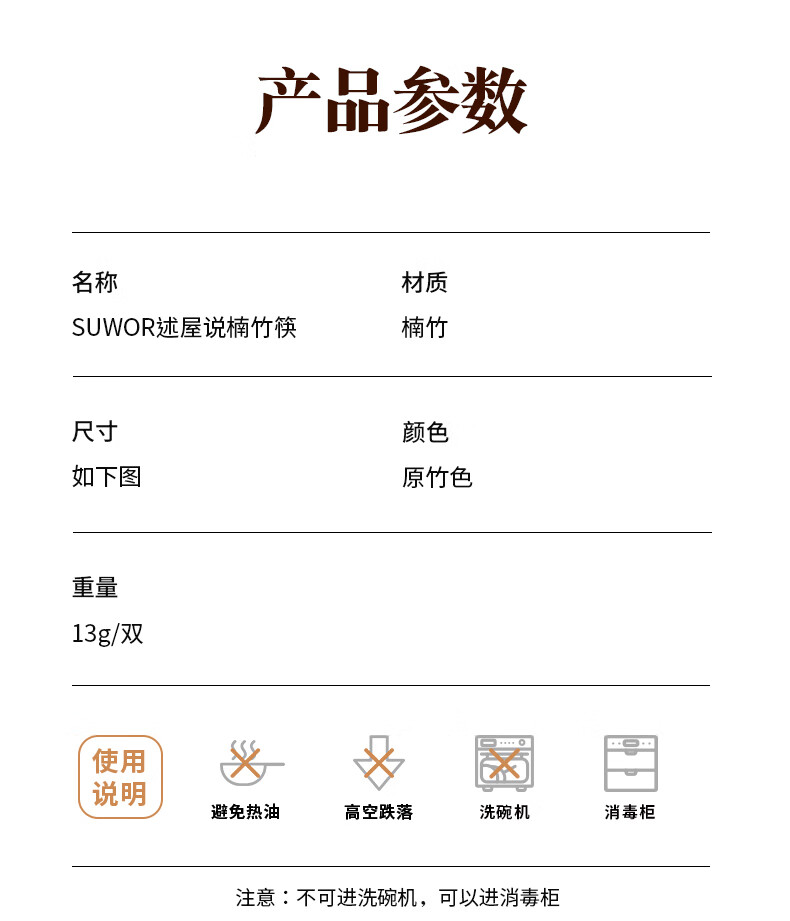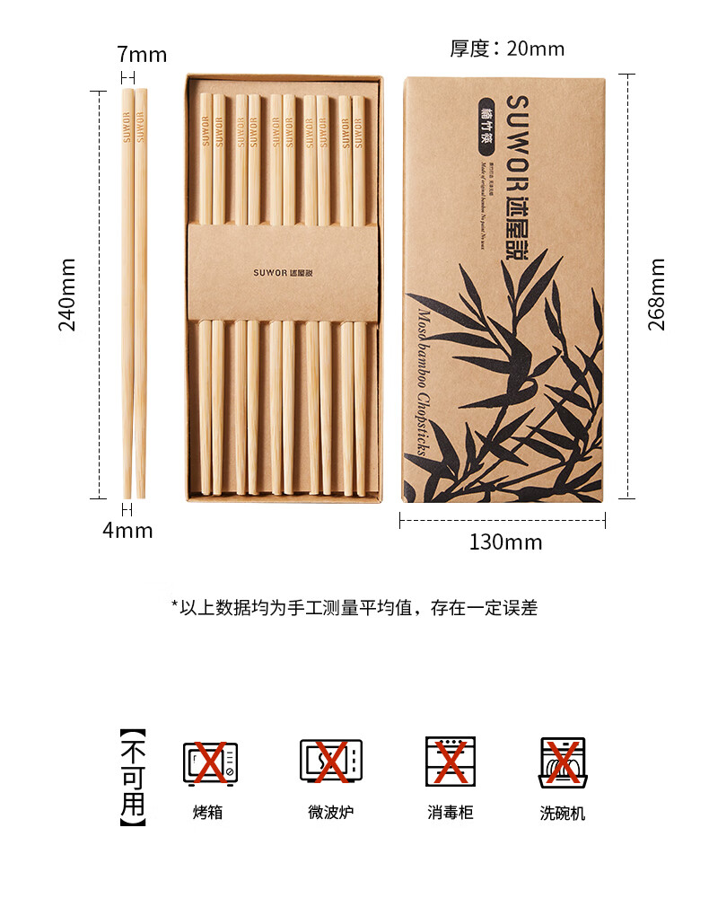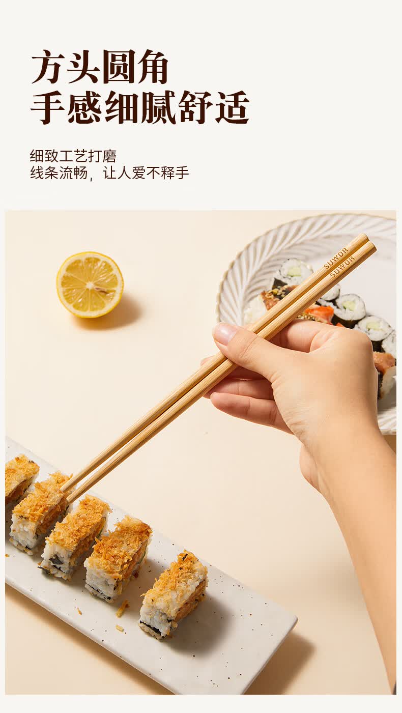 述屋说天然竹筷子 竹质餐具套装食品级防霉抗菌家用无漆无蜡10双装