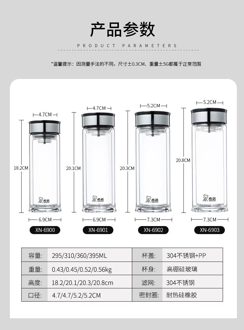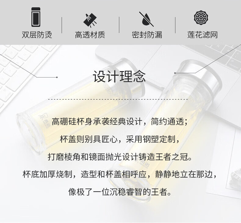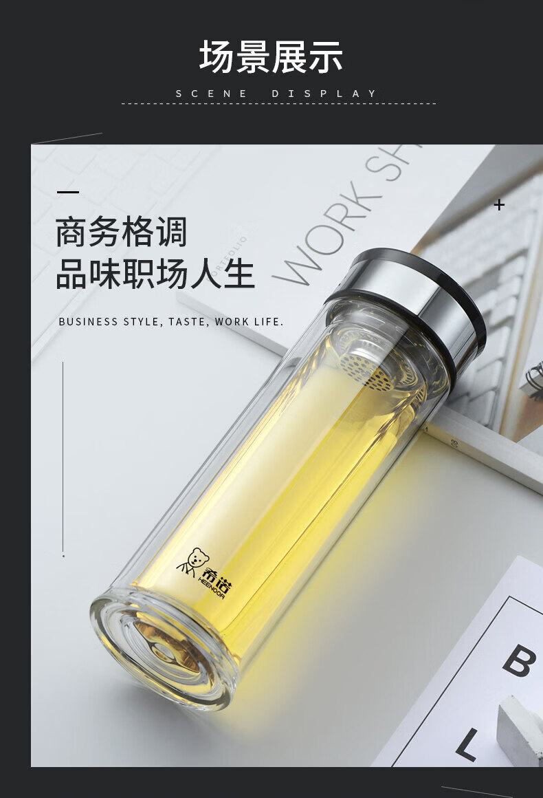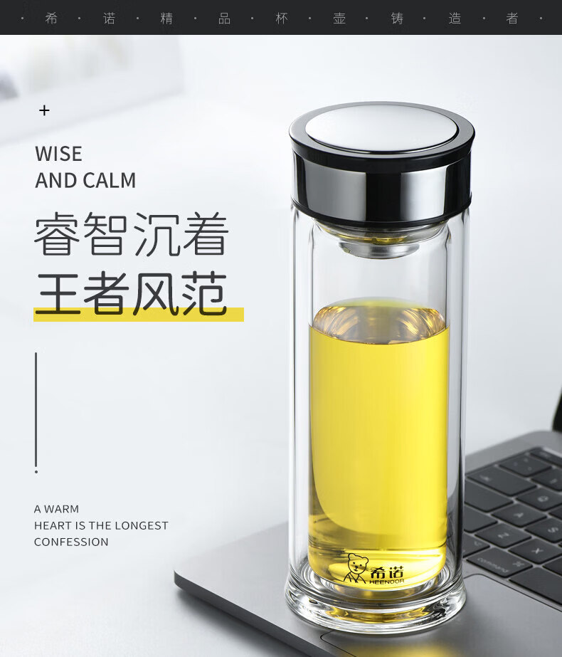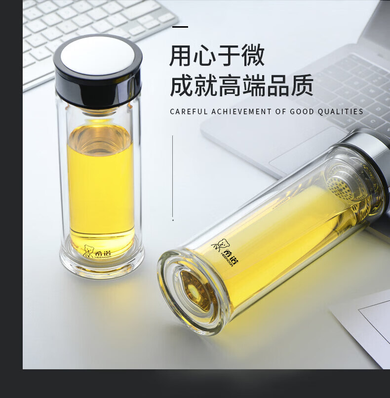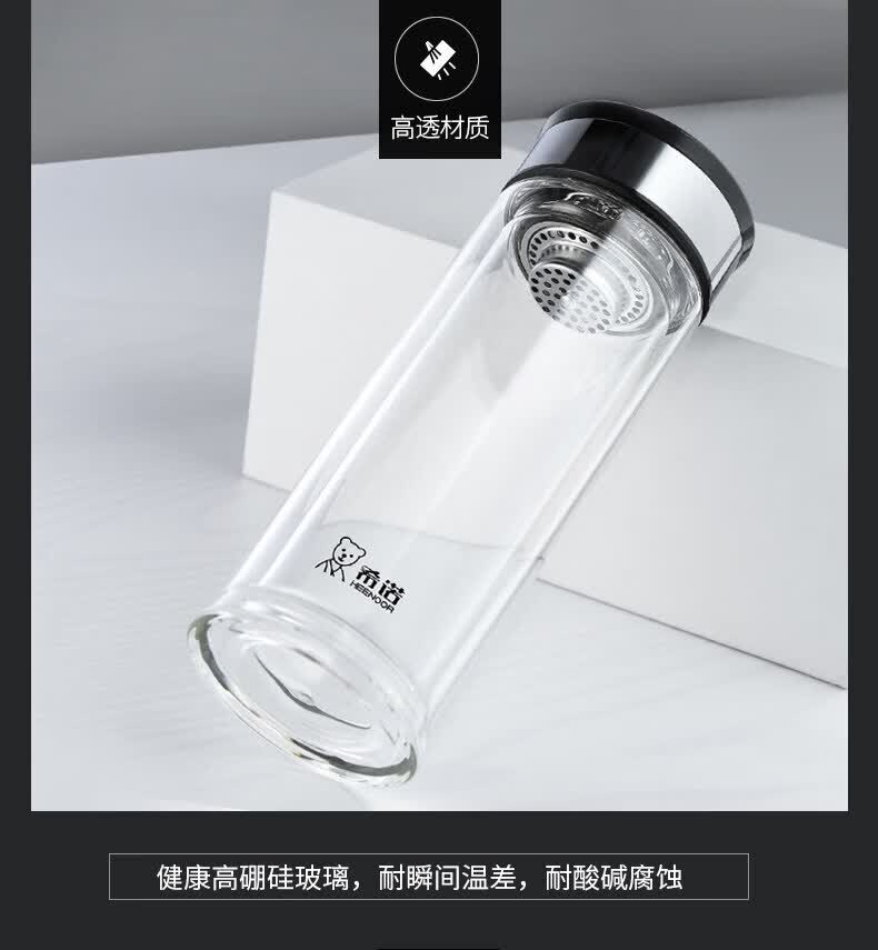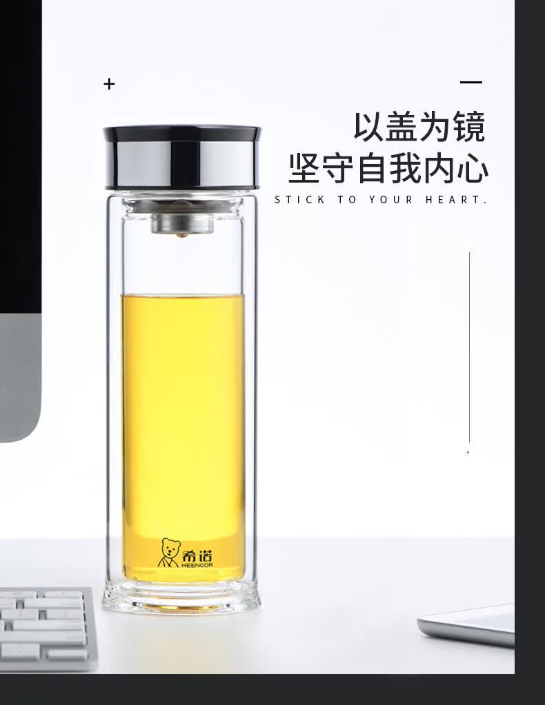 希诺(heenoor)双层玻璃杯家用喝水杯子泡茶杯男办公室水杯女商务送礼定制 XN-6901 310ml