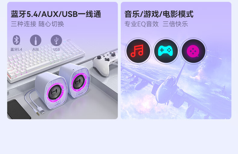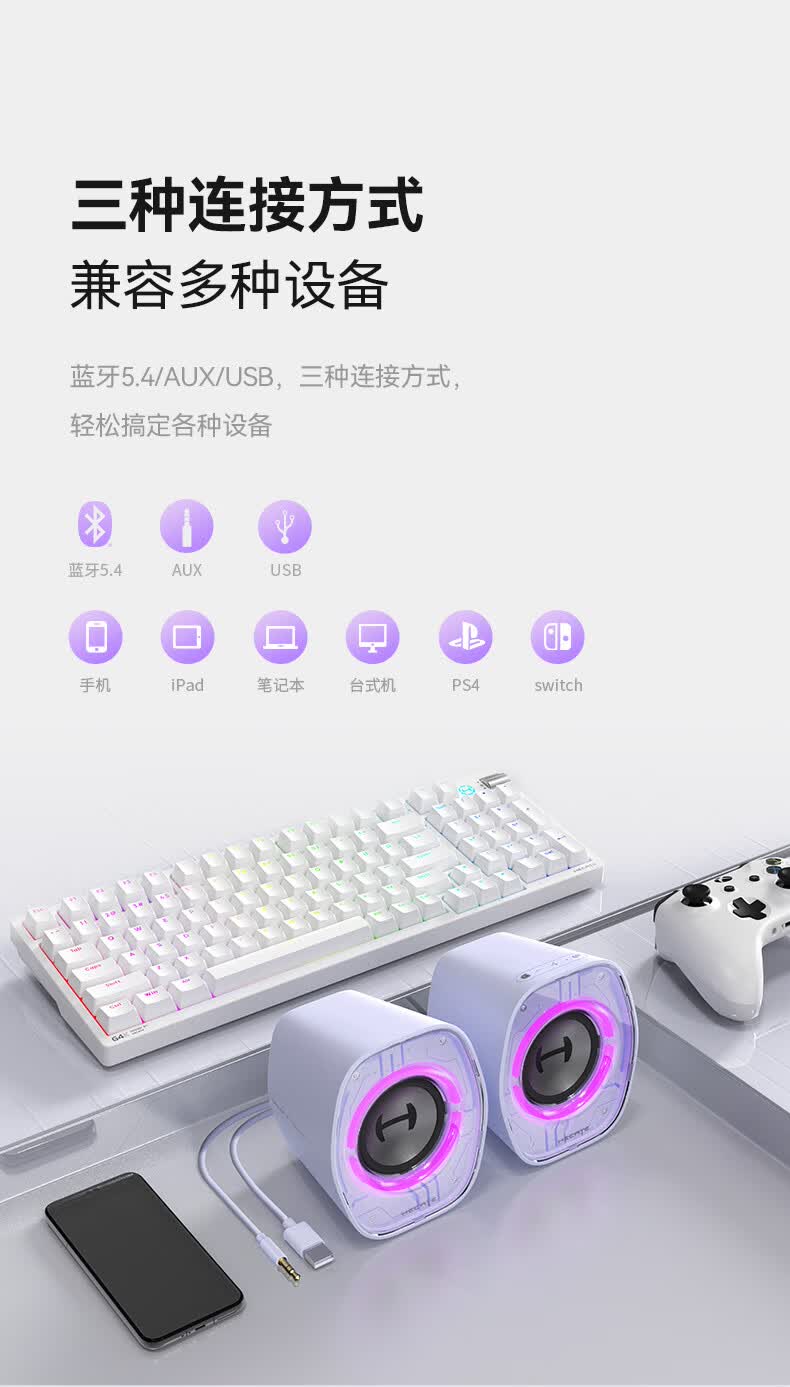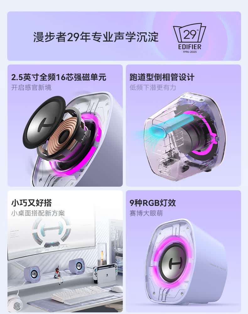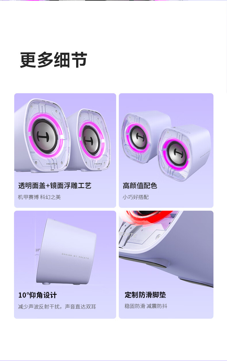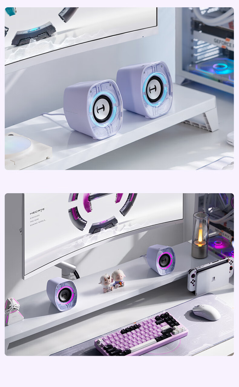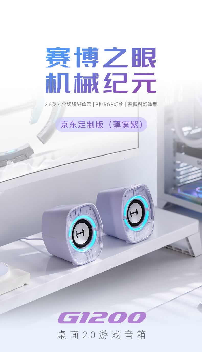 漫步者(EDIFIER)HECATE G1200游戏电竞小音箱 2.0桌面音响 蓝牙音箱音响 音响电脑台式笔记本礼物 薄雾紫