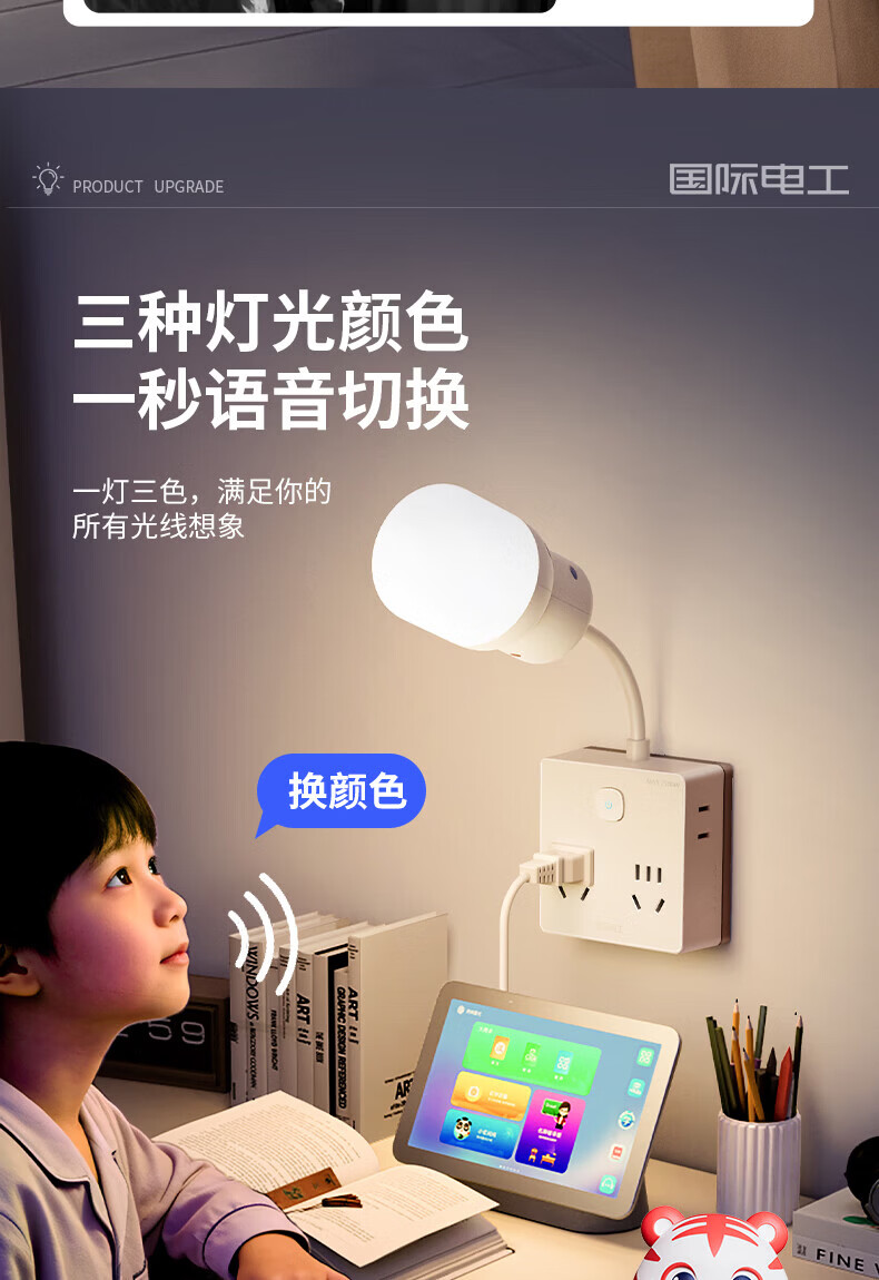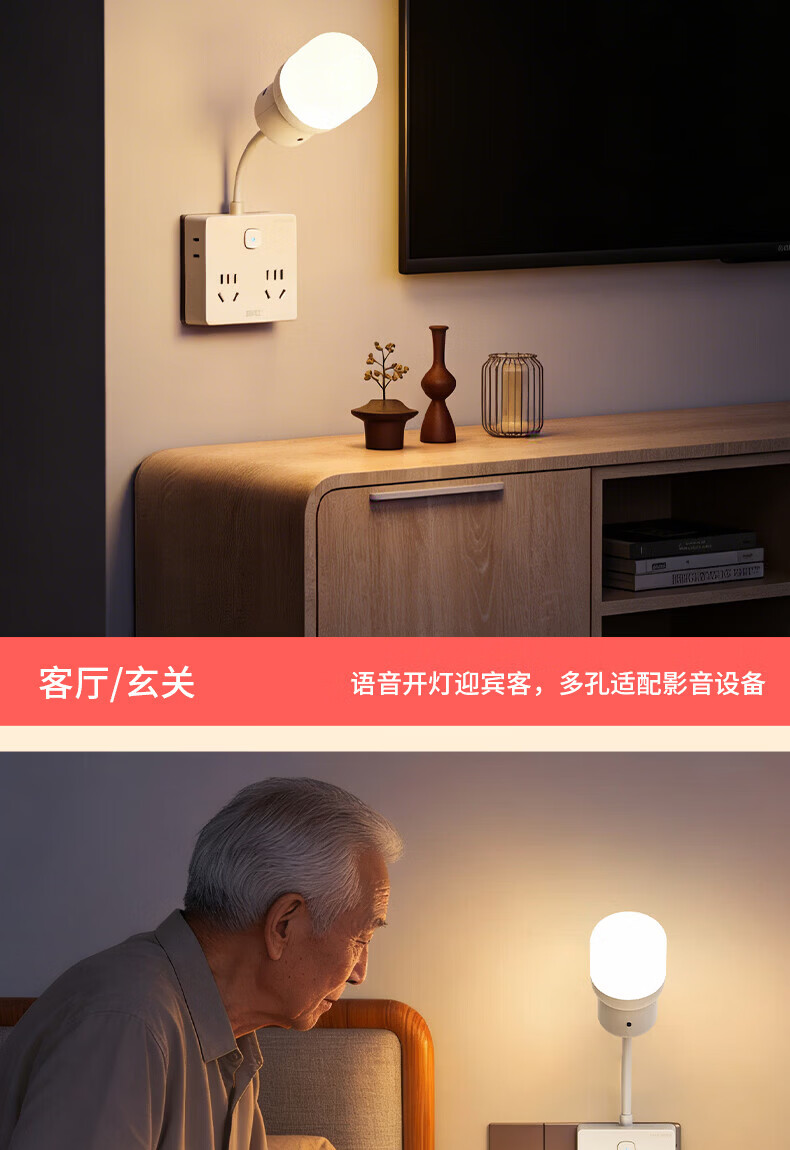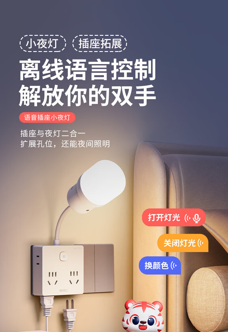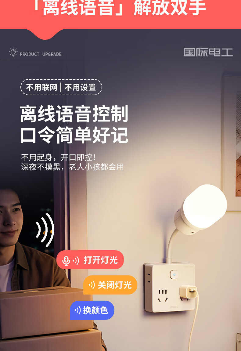 国际电工(FDD)智能语音小夜灯带转换插座LED声控卧室床头护眼灯扩展插座转换器 【标准版】一转六扩展夜灯插座(4.5W全光谱护眼)
