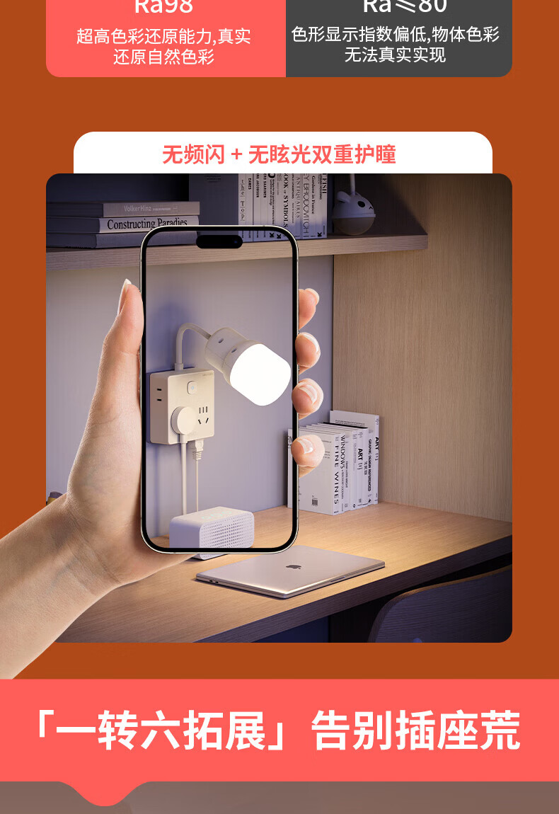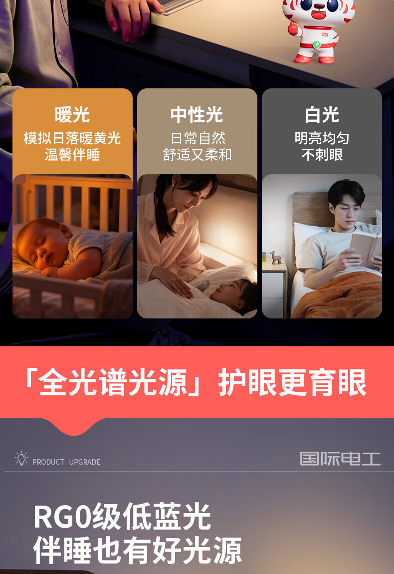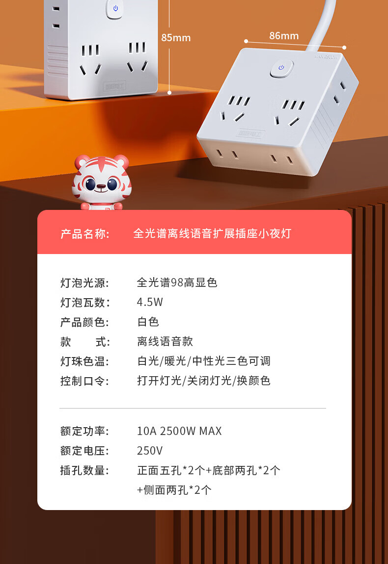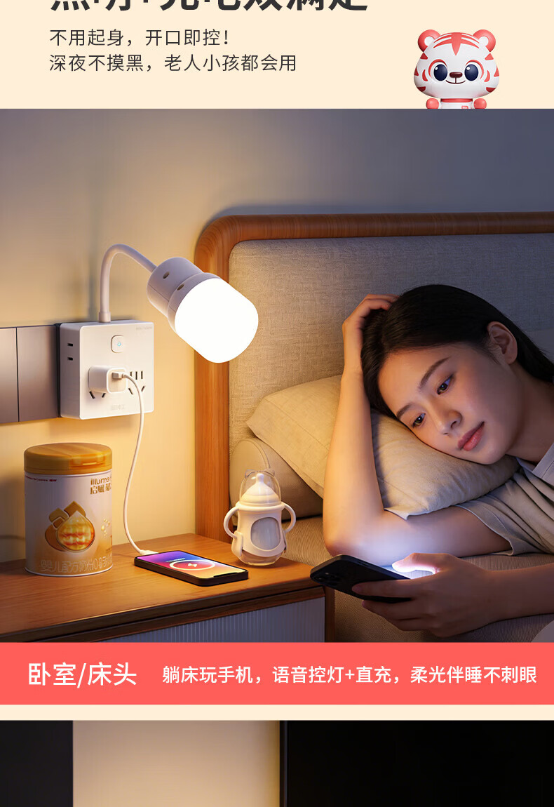 国际电工(FDD)智能语音小夜灯带转换插座LED声控卧室床头护眼灯扩展插座转换器 【标准版】一转六扩展夜灯插座(4.5W全光谱护眼)