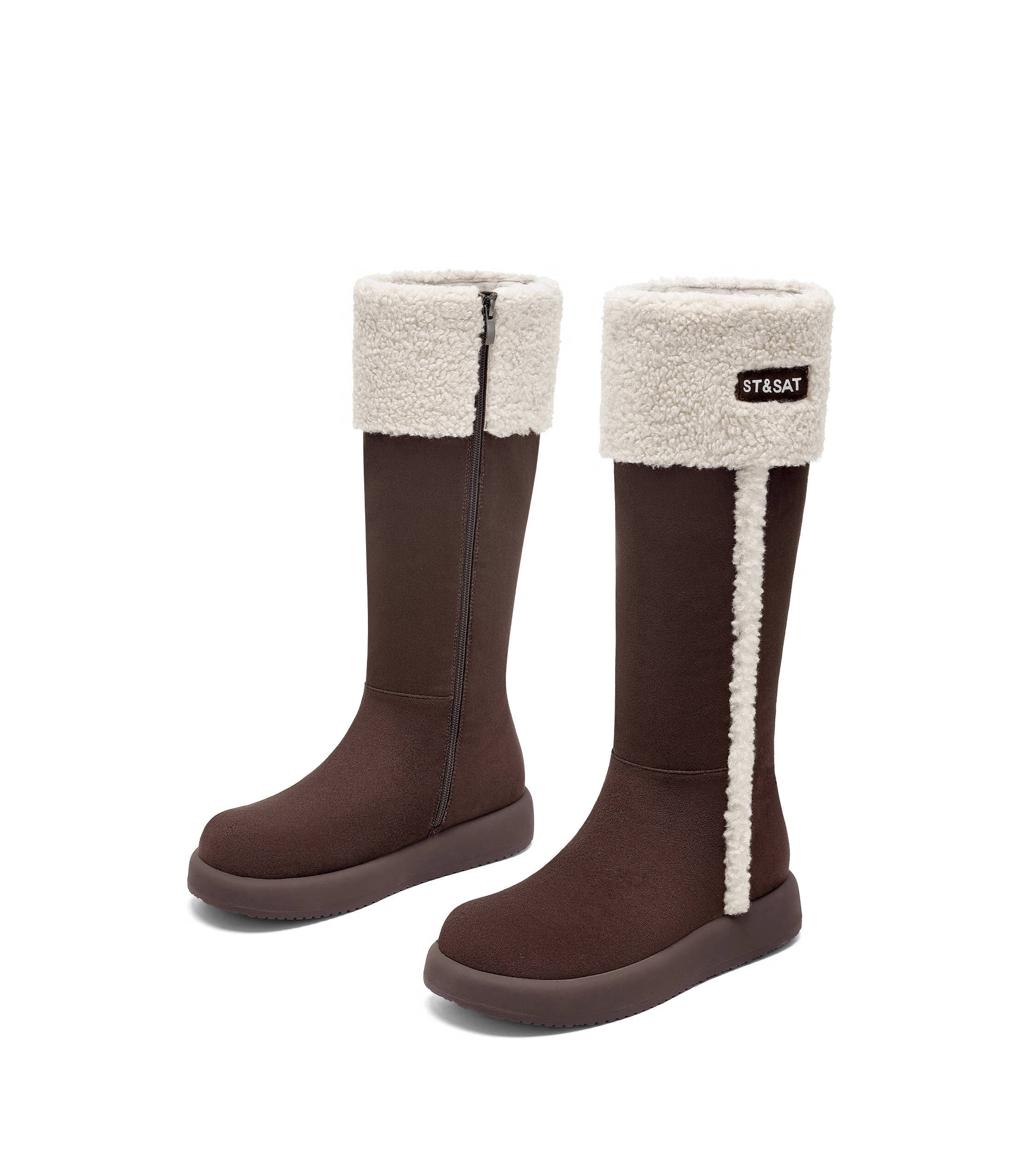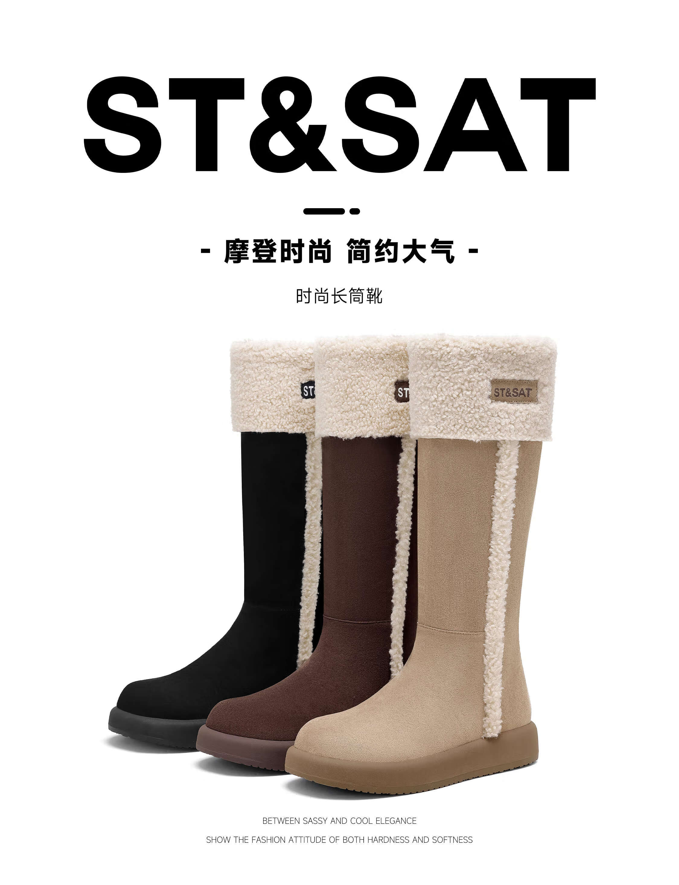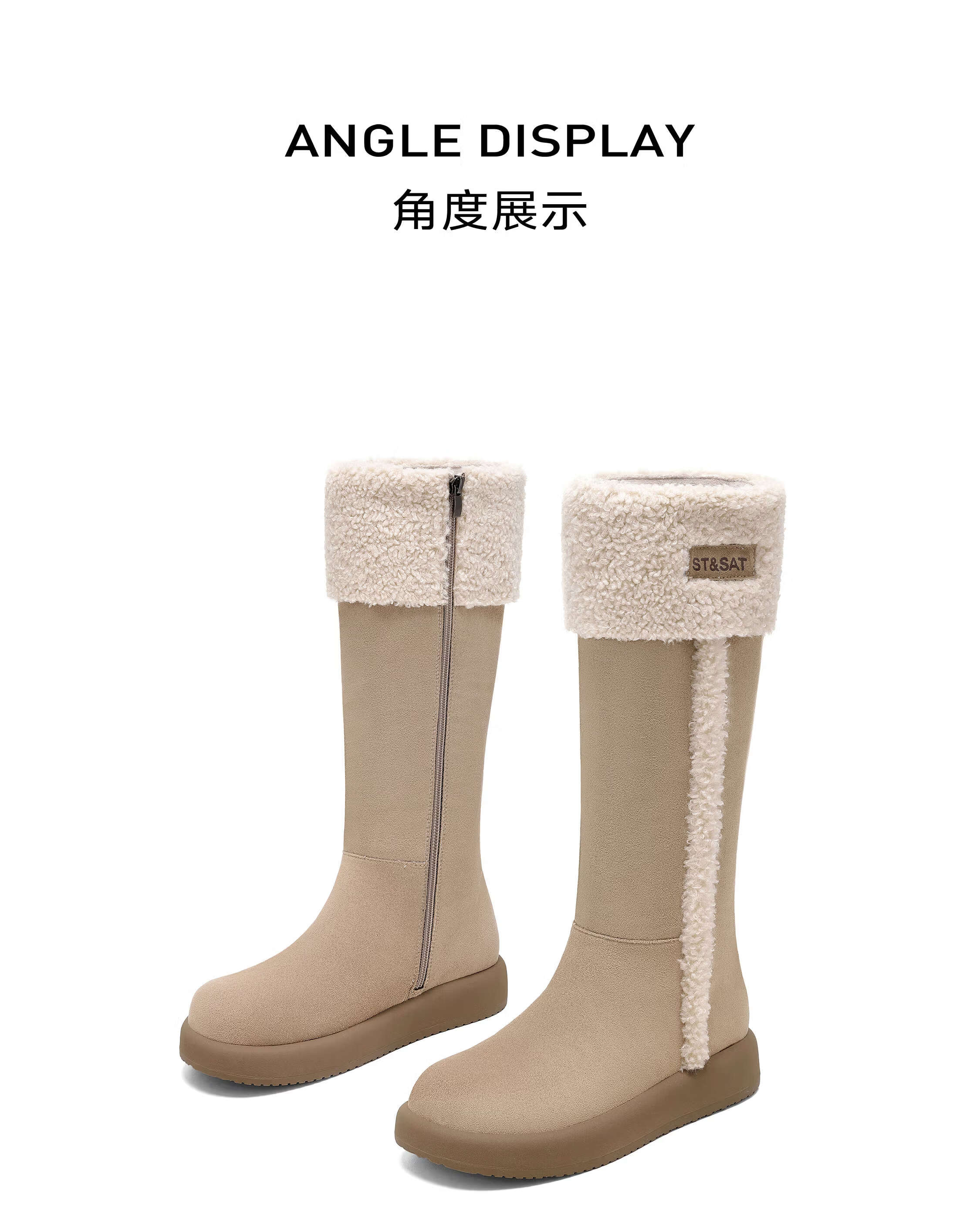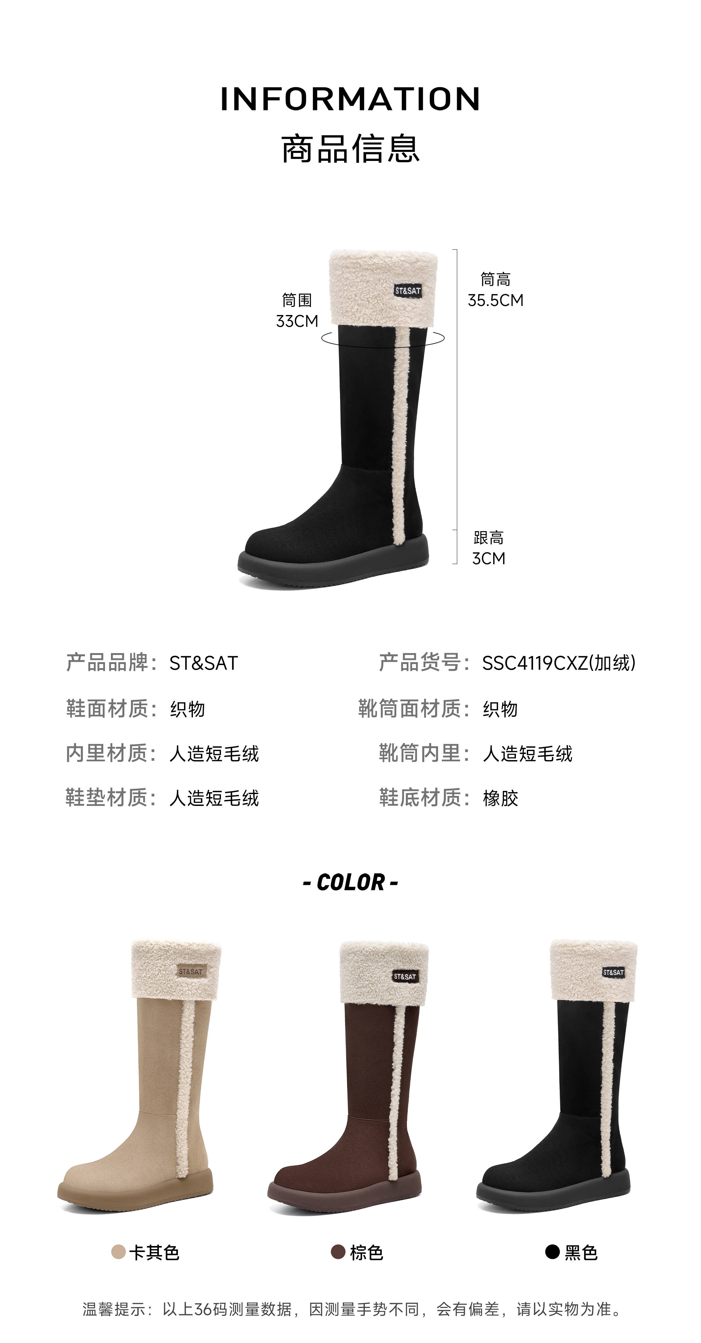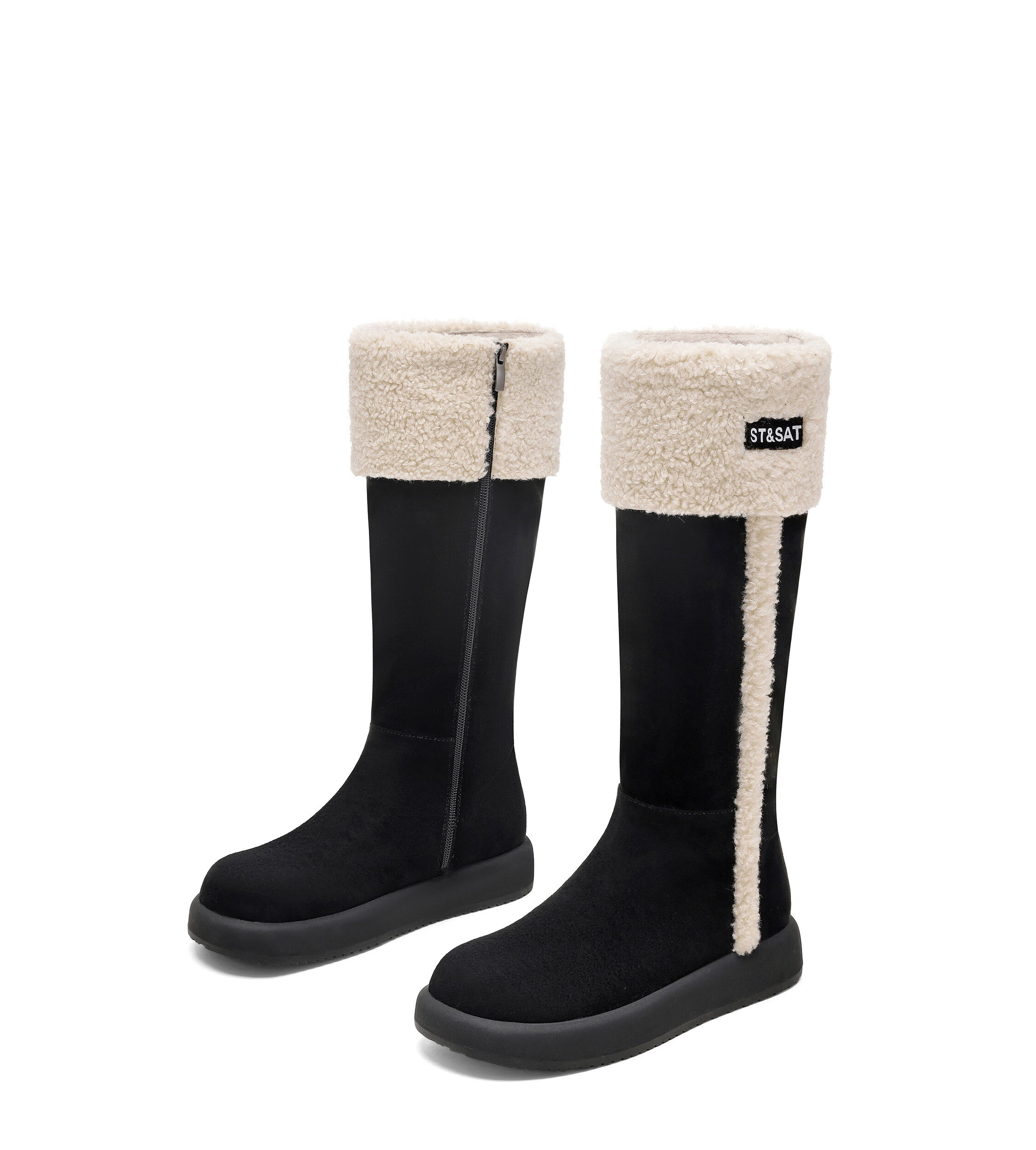 星期六加绒厚底长筒靴女2025新款爆款冬加厚毛毛高筒雪地靴骑士靴棉鞋 黑色 【加绒保暖】 35