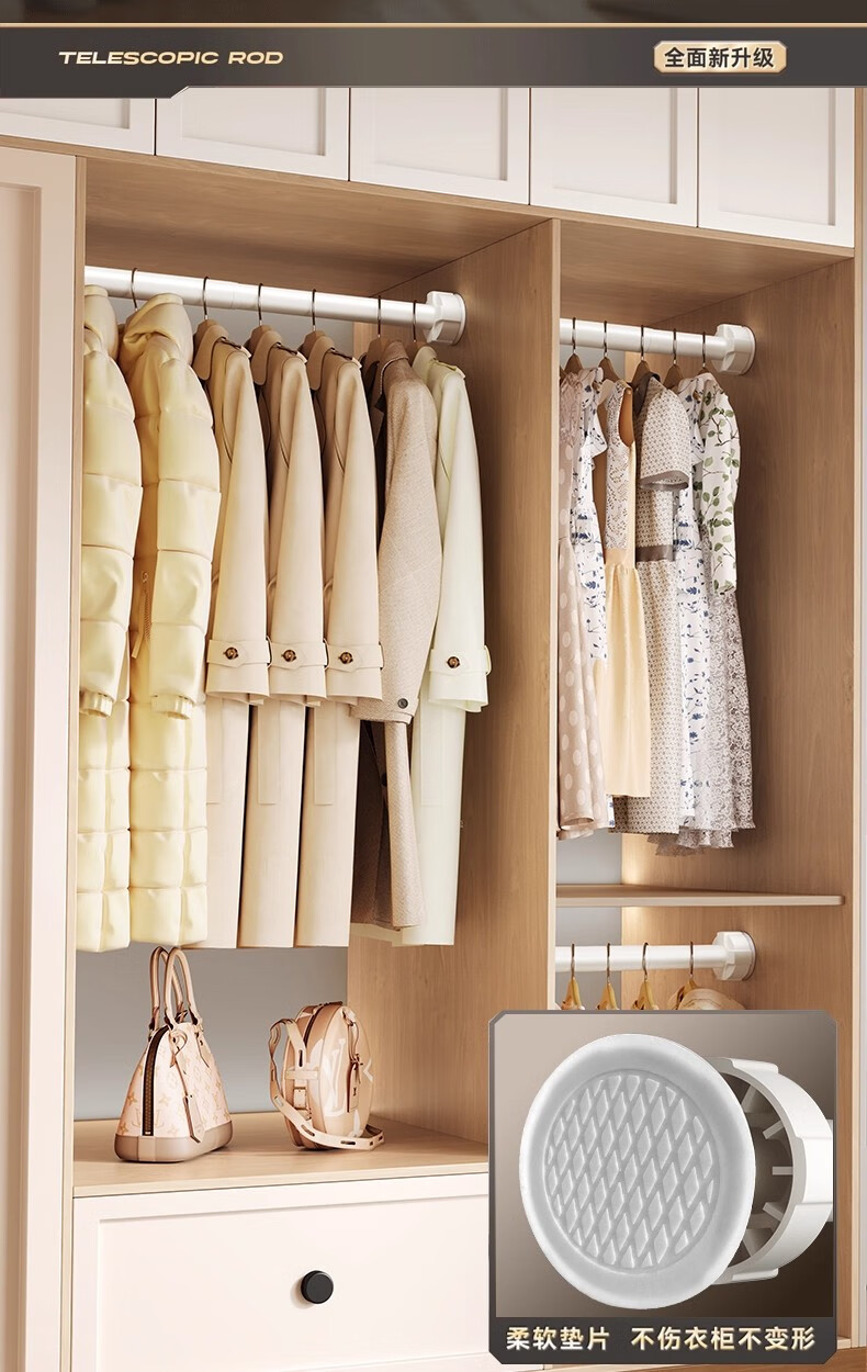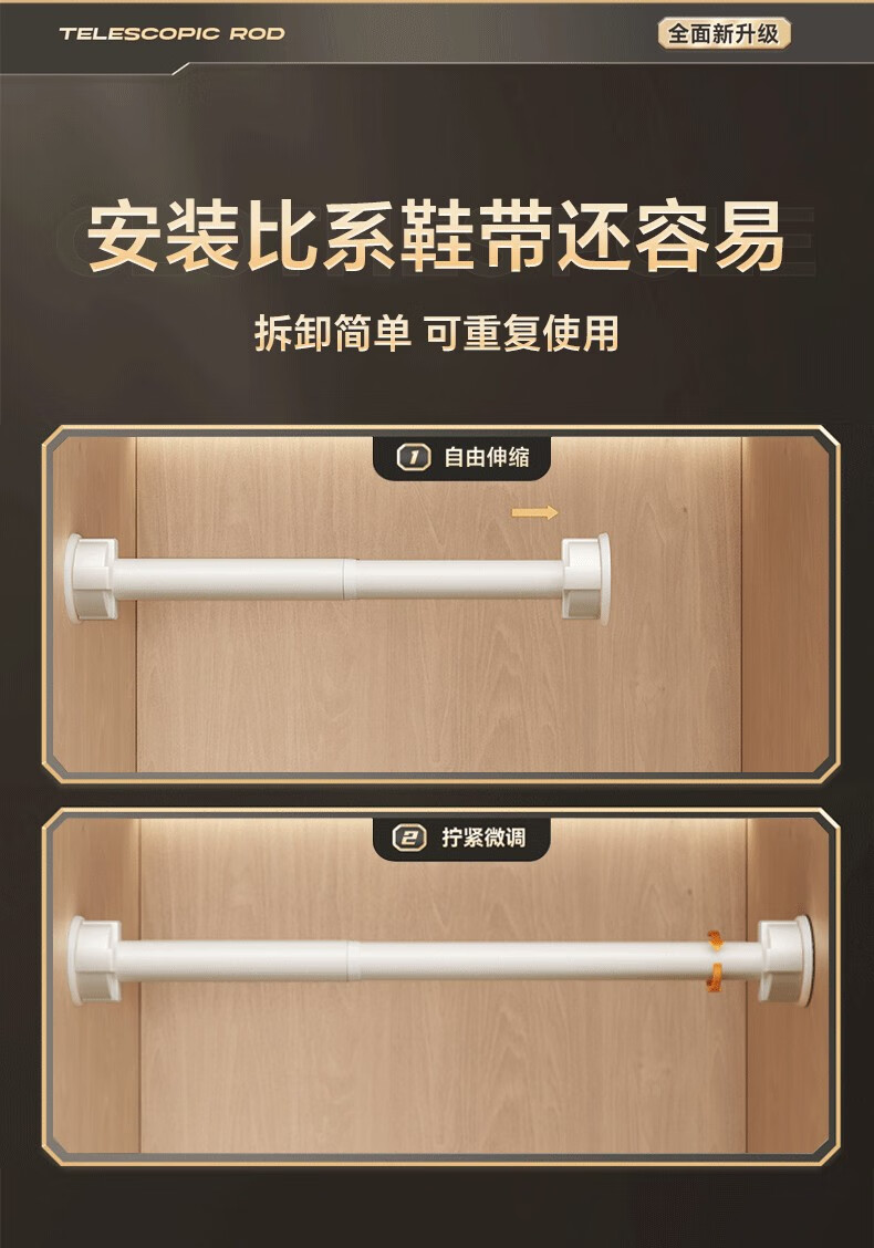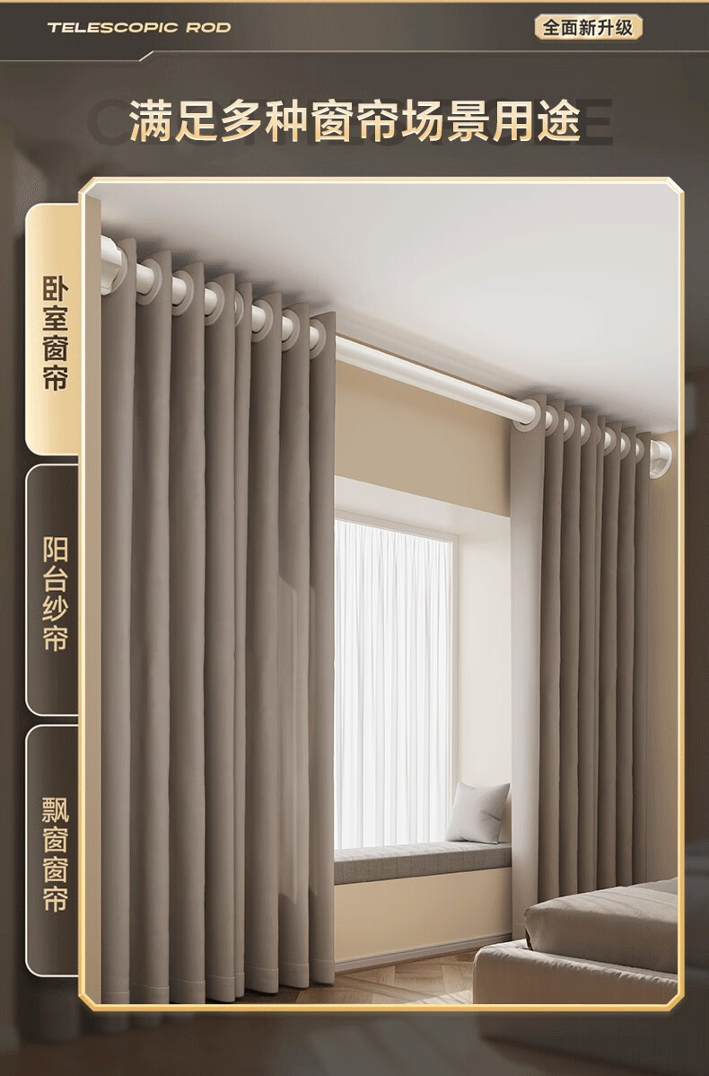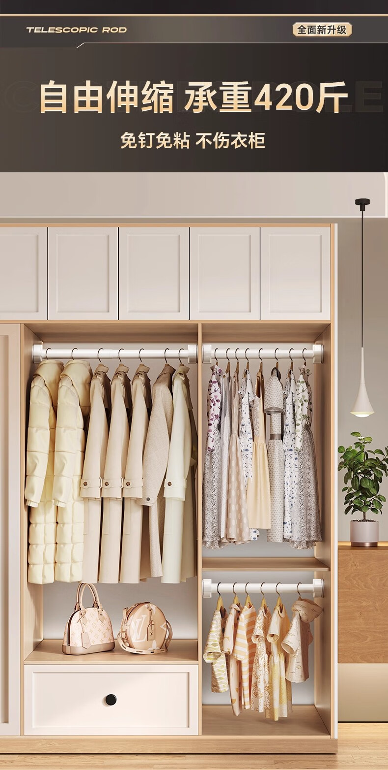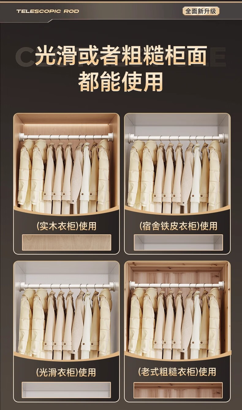 沐阁免打孔伸缩晾衣杆阳台横杆伸缩杆晾衣架衣柜杆挂衣杆浴帘杆撑杆 太空银-衣柜专用-免打孔 可伸缩:长150~220厘米【承重420斤 掉落包赔】