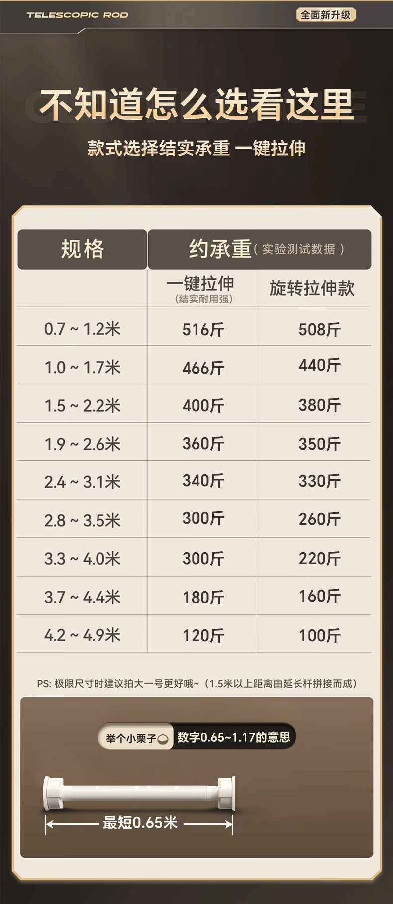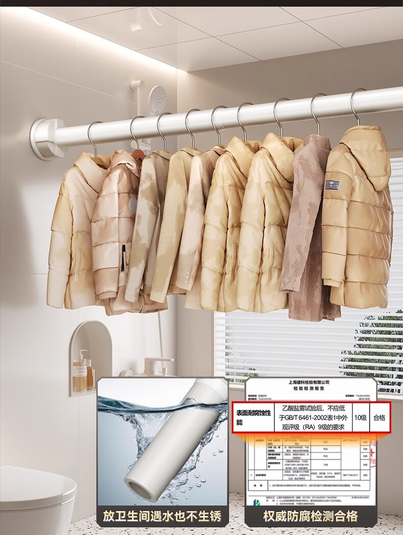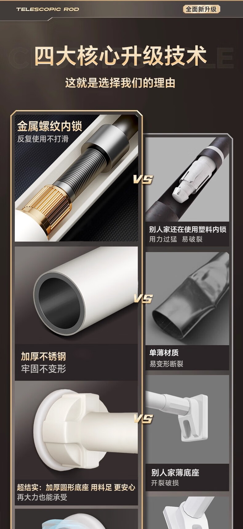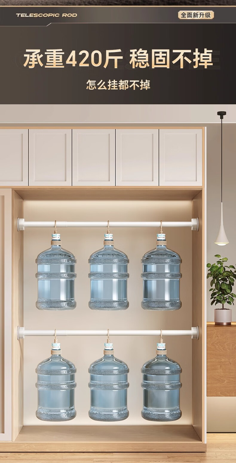 沐阁免打孔伸缩晾衣杆阳台横杆伸缩杆晾衣架衣柜杆挂衣杆浴帘杆撑杆 太空银-衣柜专用-免打孔 可伸缩:长150~220厘米【承重420斤 掉落包赔】