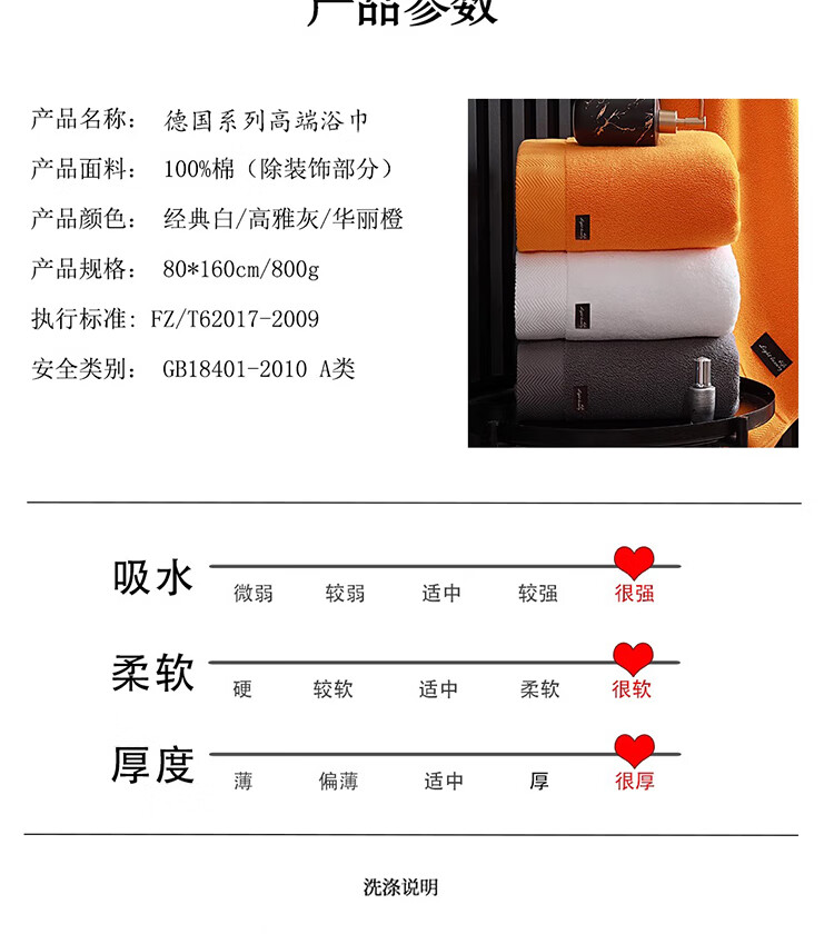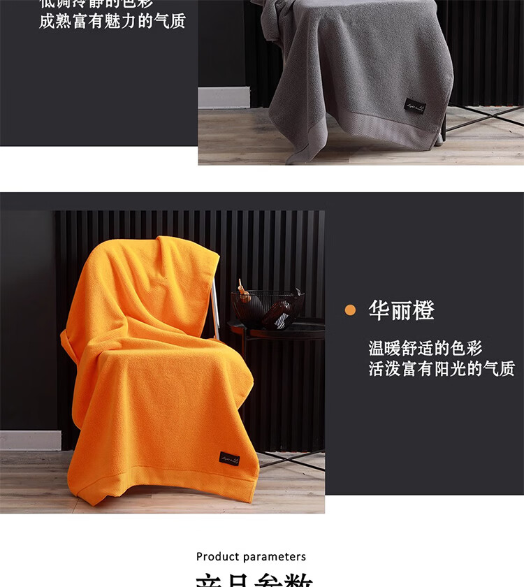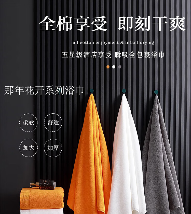 筏芯德国高端浴巾2025新款全棉浴袍女吸水速干秋冬男女款高级吸水毛巾 800克那年花开华丽橙浴巾80*160