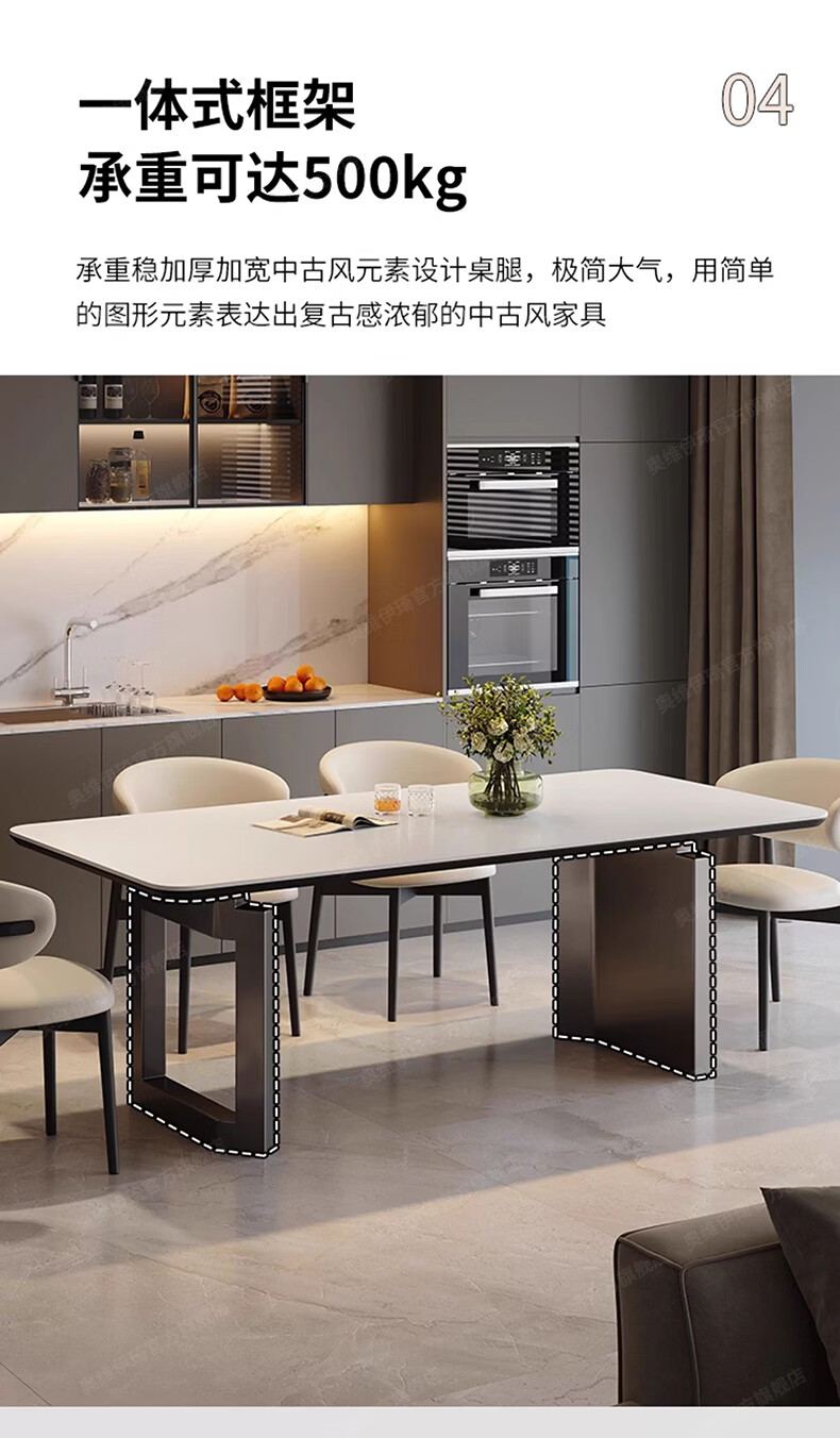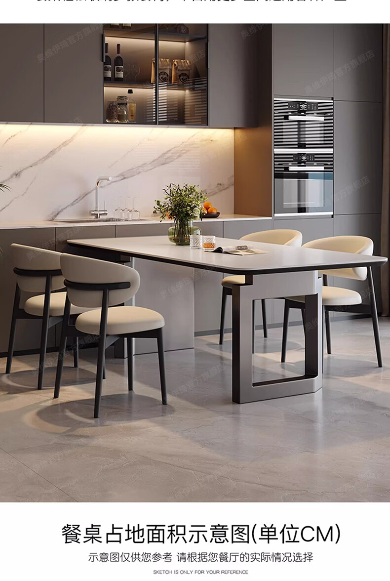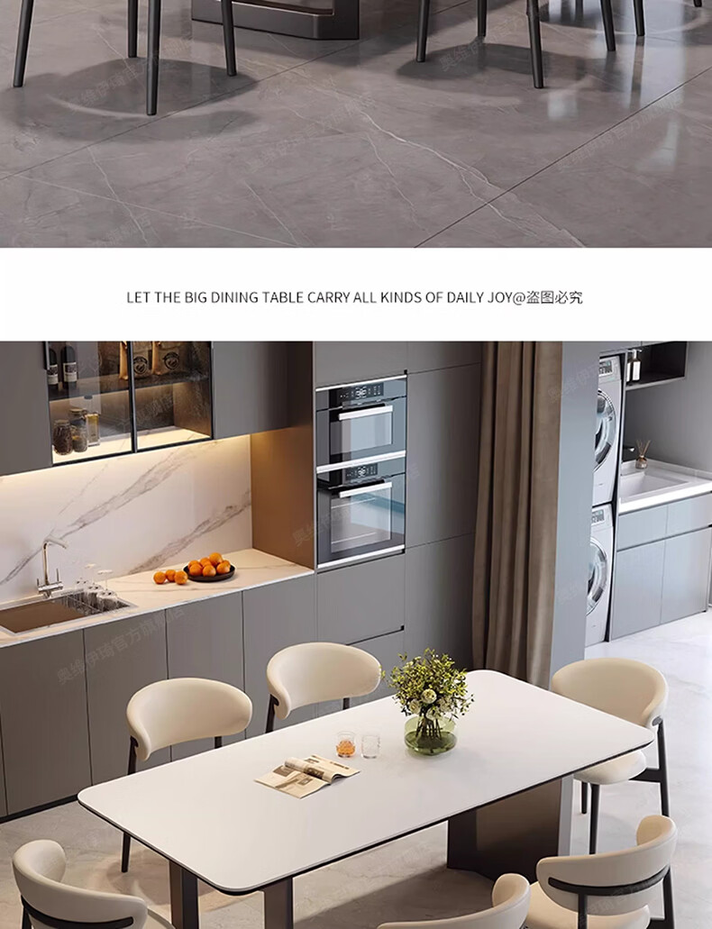 奥维伊琦意式岩板餐桌椅轻奢餐桌长方形家用小户型现代简约饭桌 【不锈钢桌腿+全托进口岩板】芬迪餐桌+4张高背椅 120x70x75cm【广东佛山发货/品质保证】