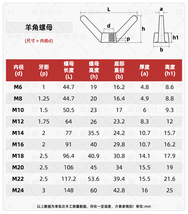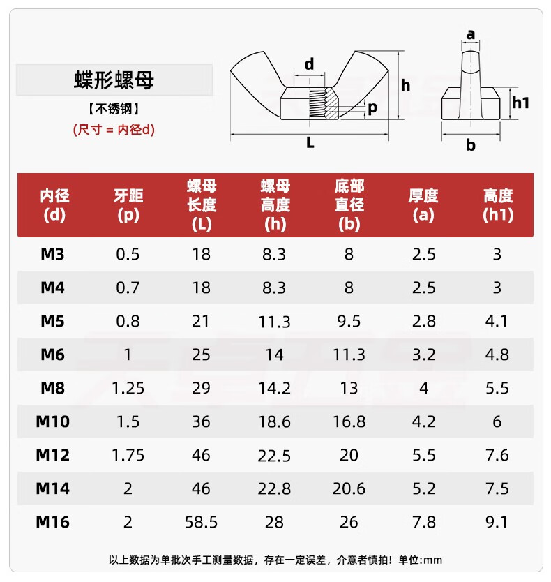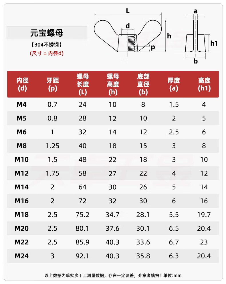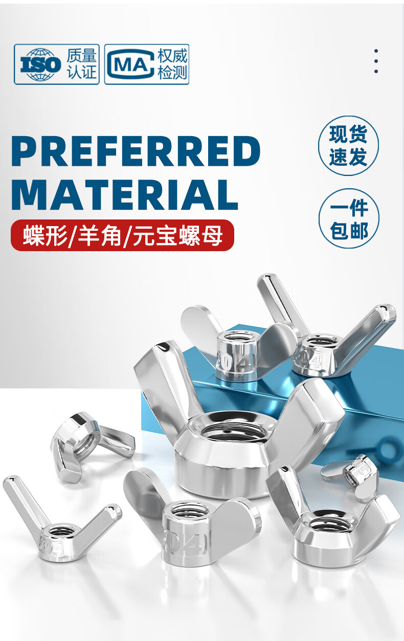 天卓五金304/201/316不锈钢蝶型螺母蝴蝶形羊角螺丝帽元宝手拧螺帽3M4-M12 ---以下为【304材质】---