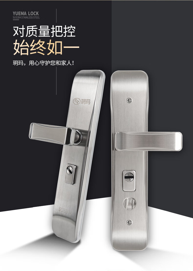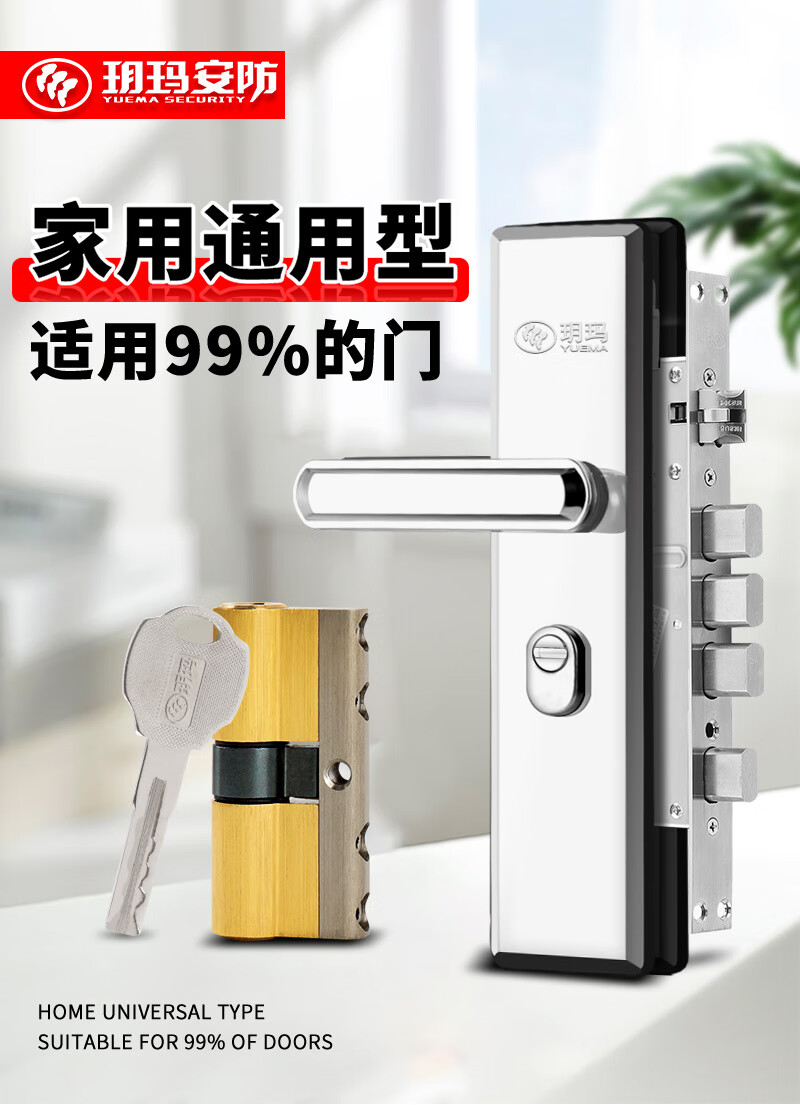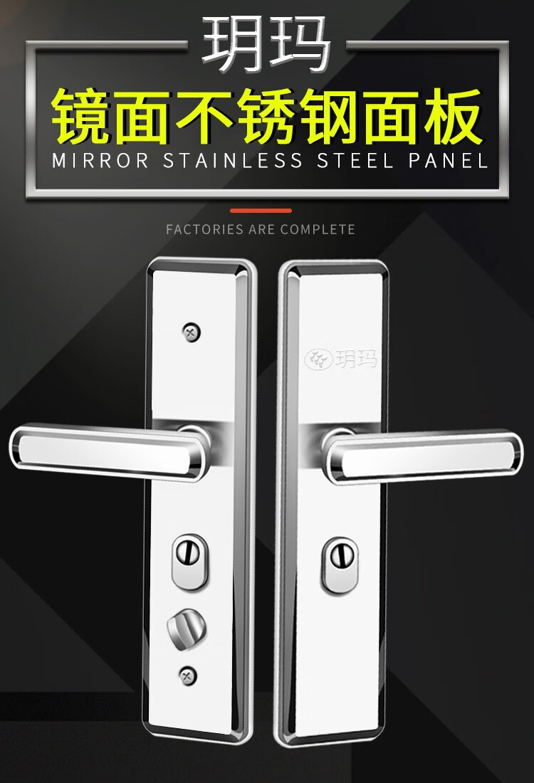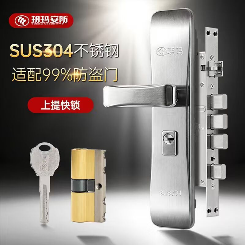 玥玛防盗门锁套装免费上门安装超C级锁芯通用型大门锁不锈钢门把手 镜面不锈钢防盗门锁把手