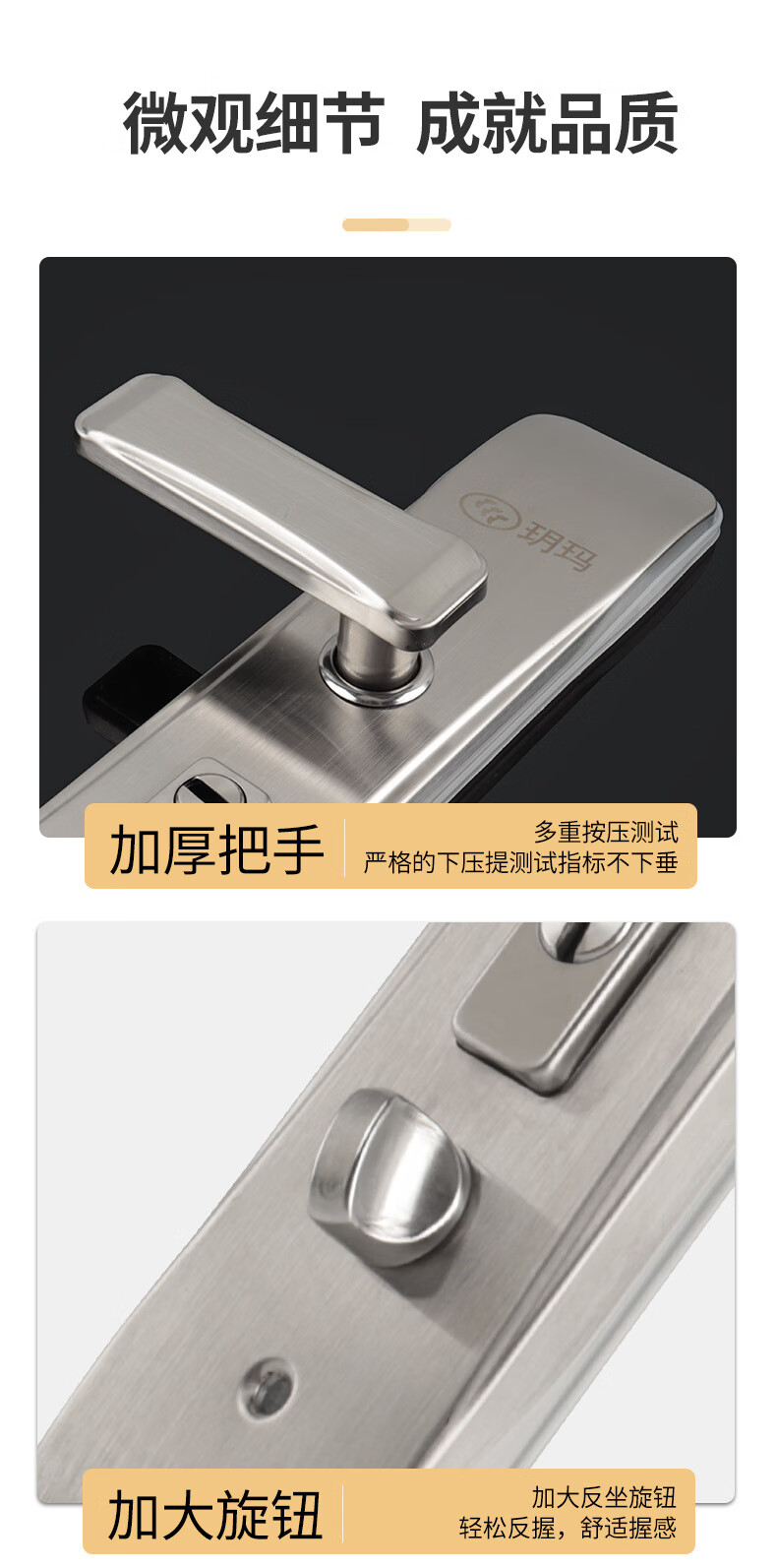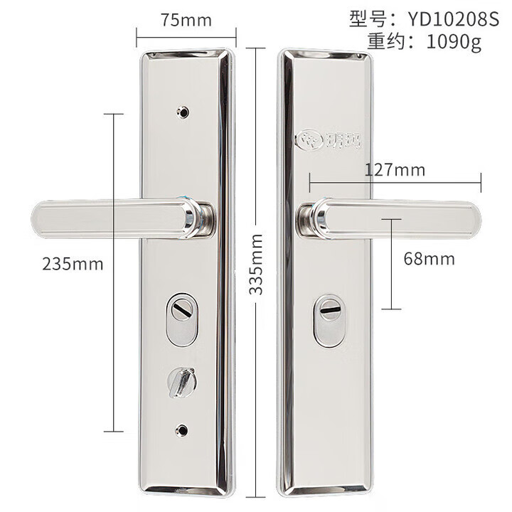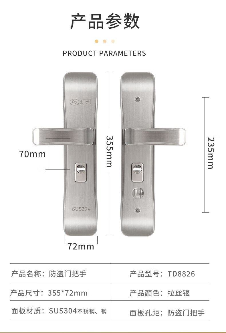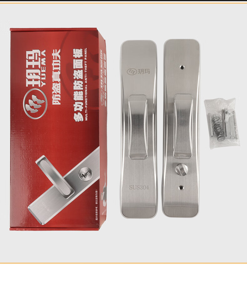玥玛防盗门锁套装免费上门安装超C级锁芯通用型大门锁不锈钢门把手 镜面不锈钢防盗门锁把手