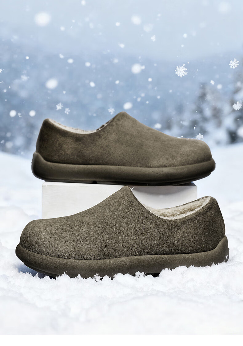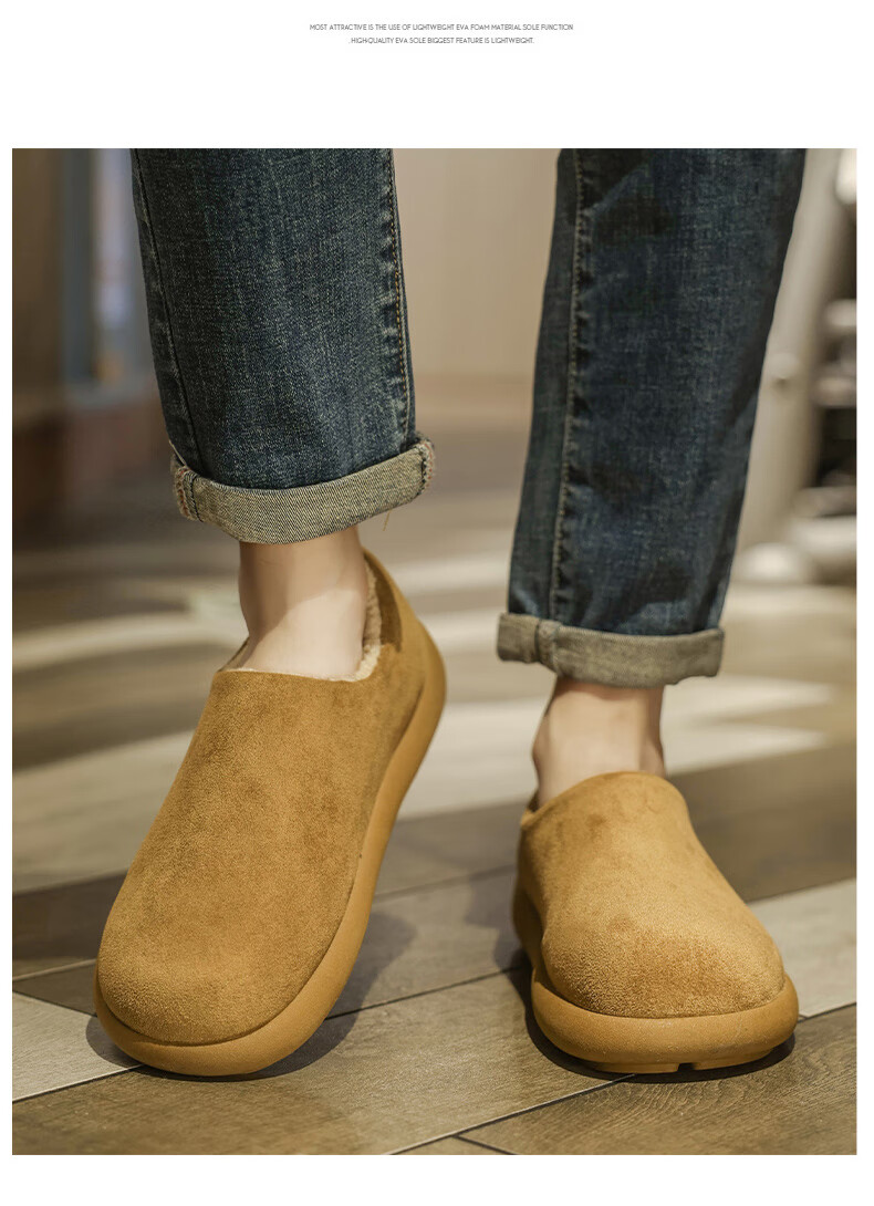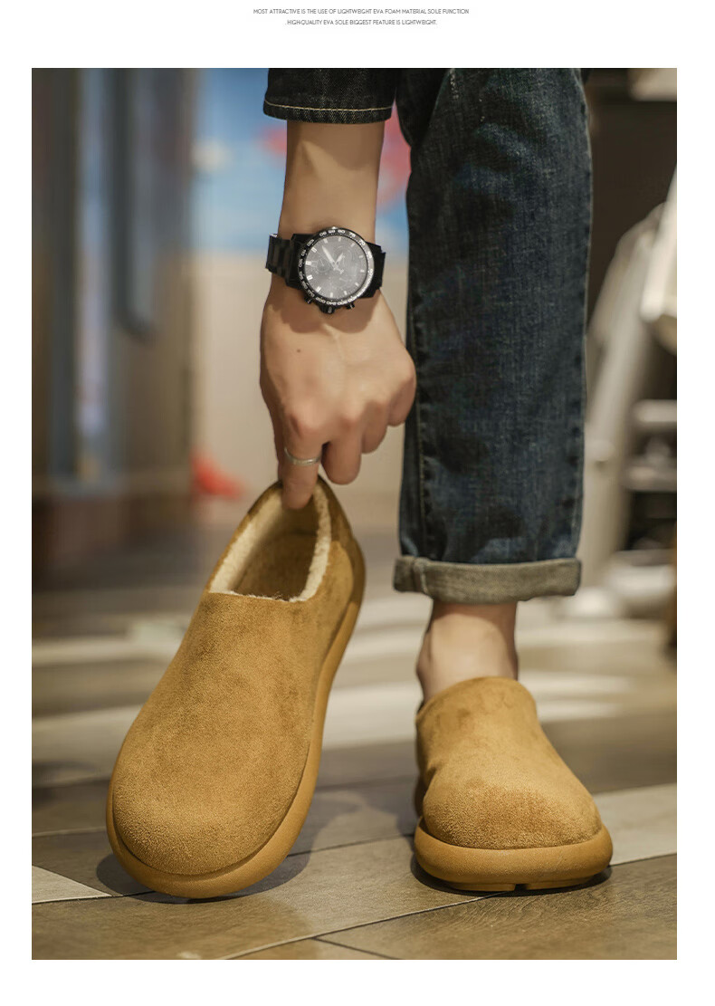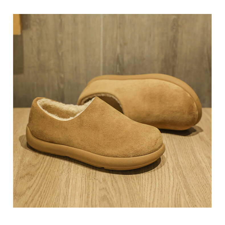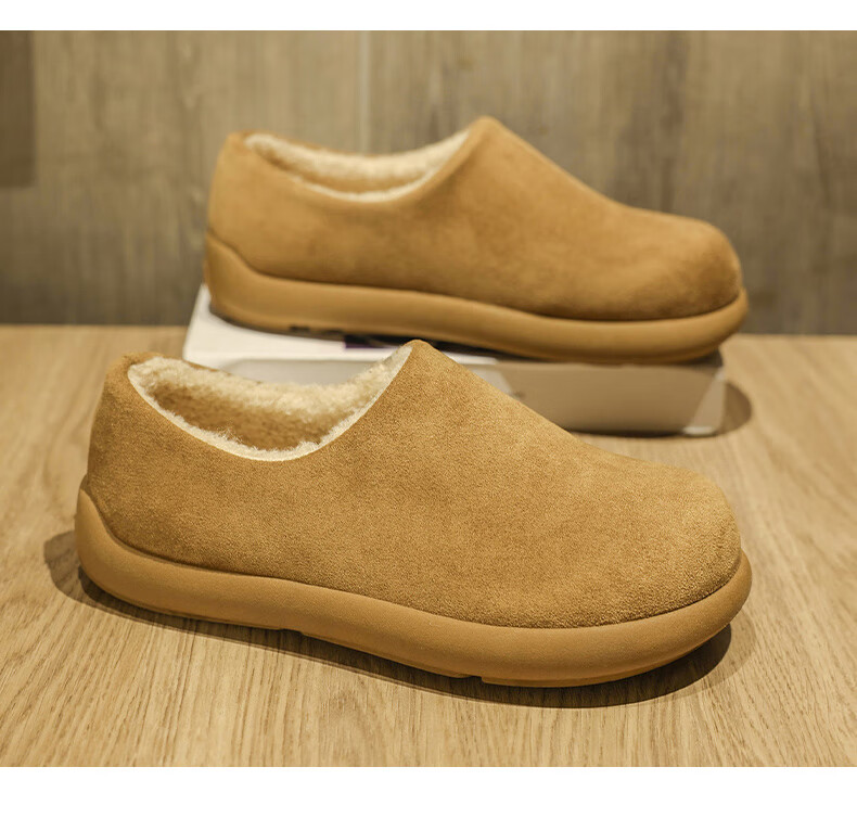 稻草人(MEXICAN)勃肯鞋男2025新款冬季加绒保暖棉鞋防水防滑一脚蹬皮毛一体雪地靴 卡其【旗舰款】 41