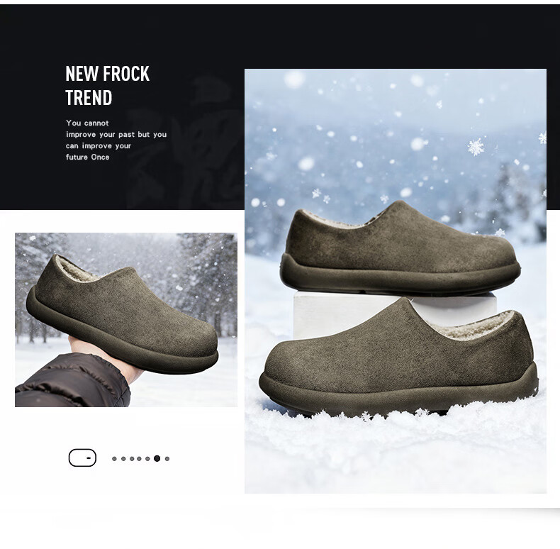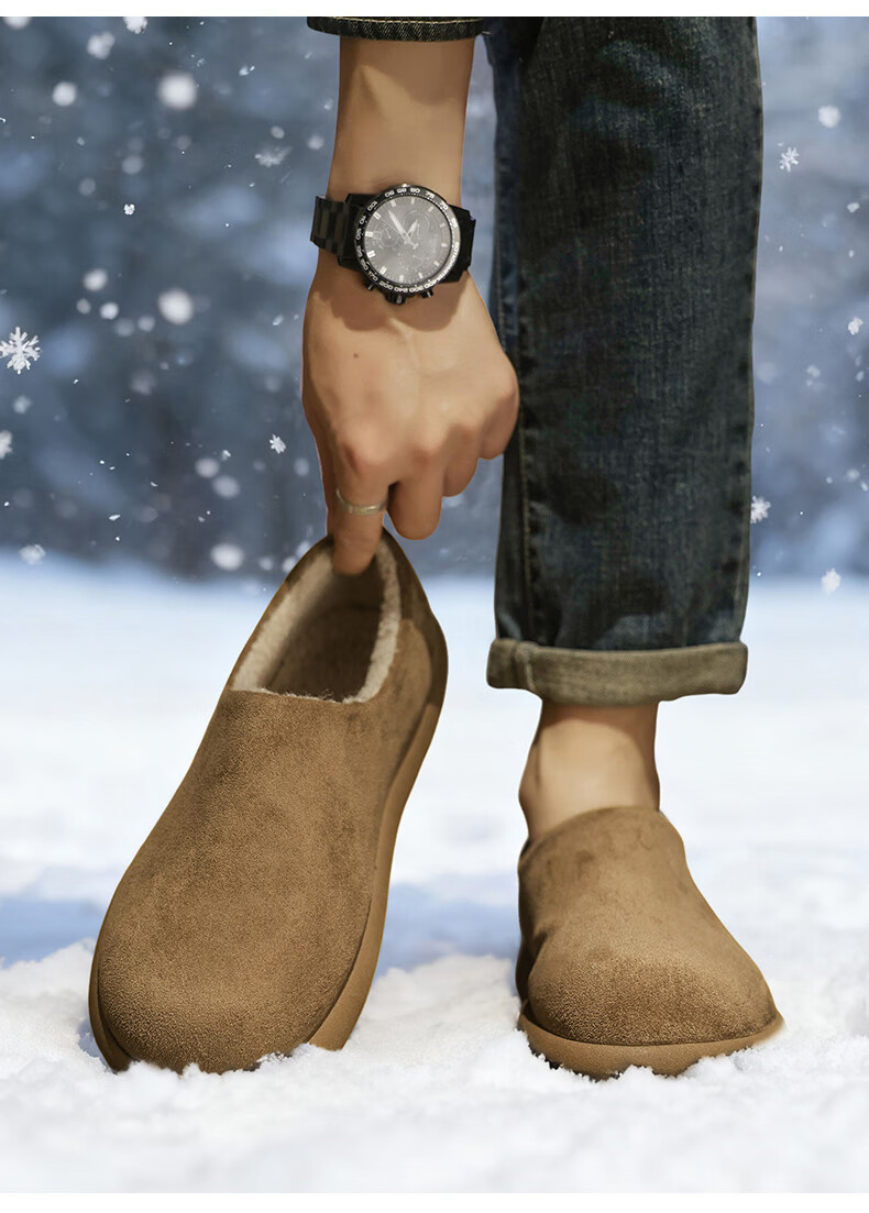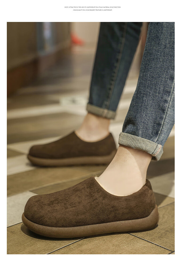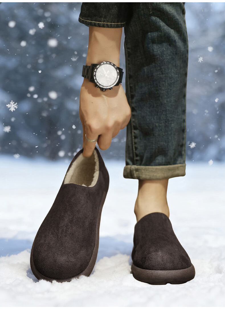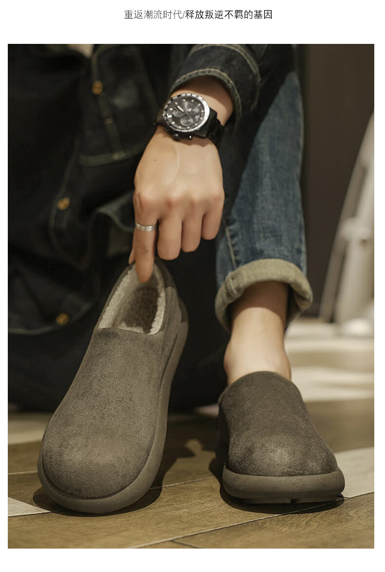 稻草人(MEXICAN)勃肯鞋男2025新款冬季加绒保暖棉鞋防水防滑一脚蹬皮毛一体雪地靴 卡其【旗舰款】 41