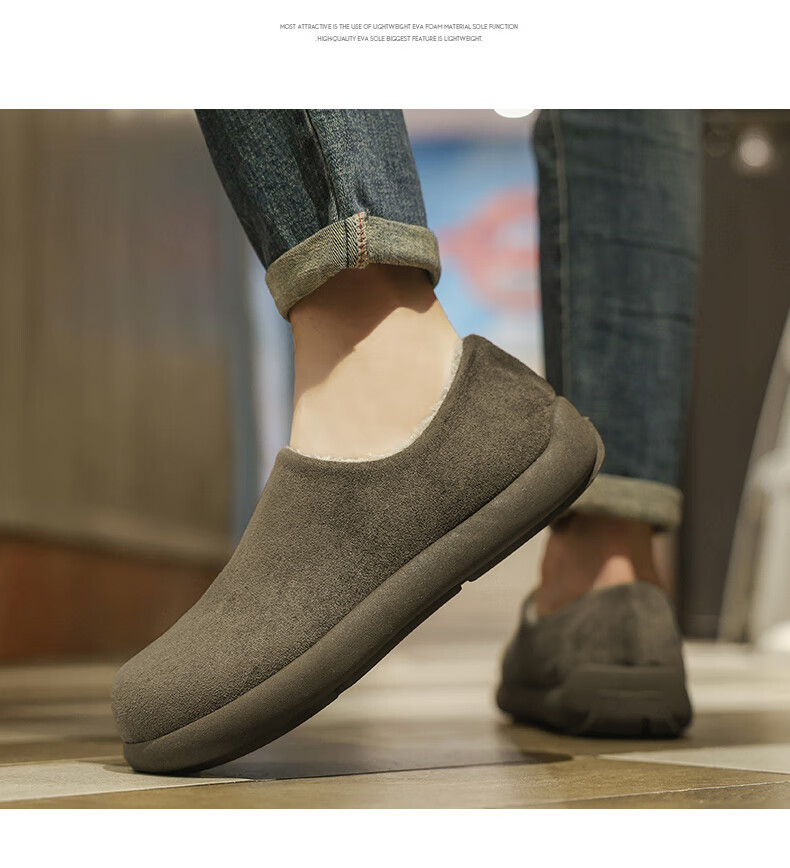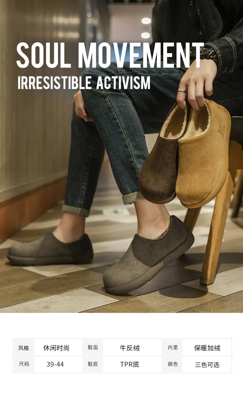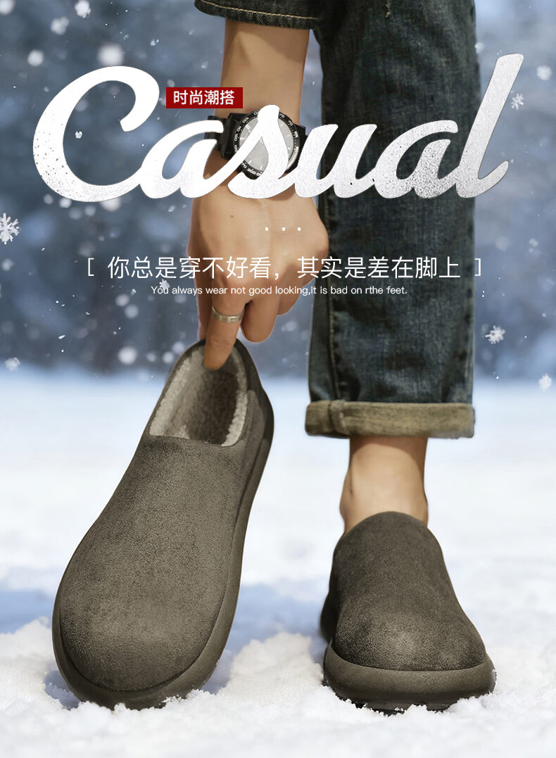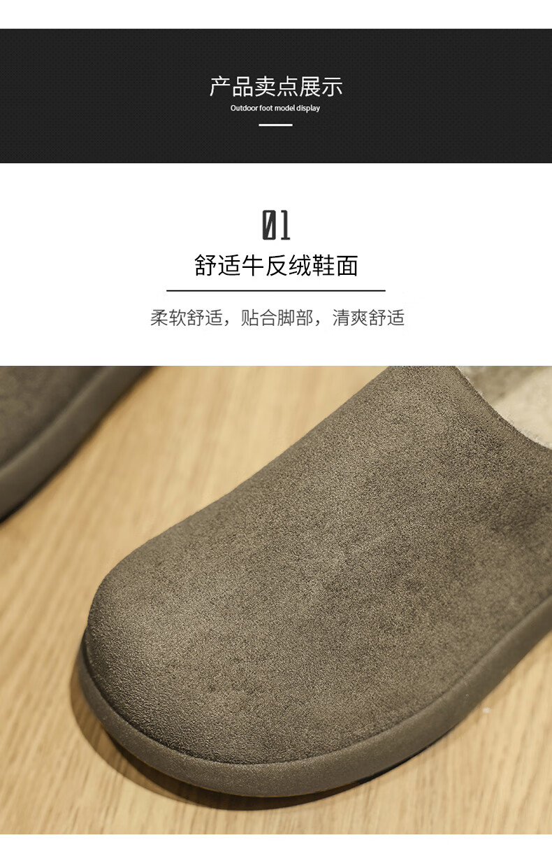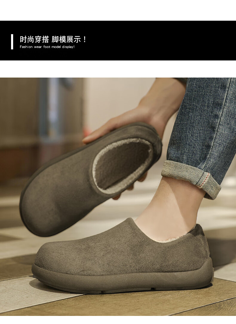稻草人(MEXICAN)勃肯鞋男2025新款冬季加绒保暖棉鞋防水防滑一脚蹬皮毛一体雪地靴 卡其【旗舰款】 41
