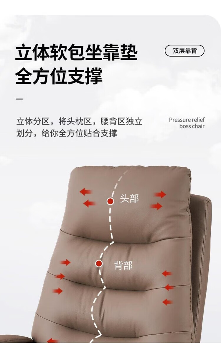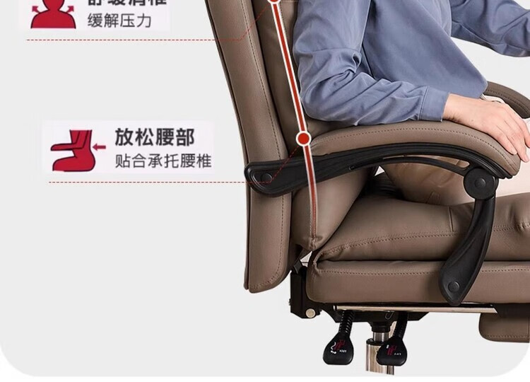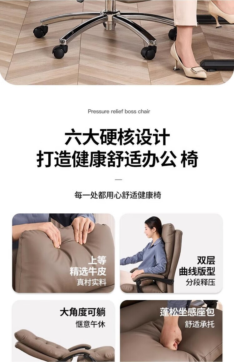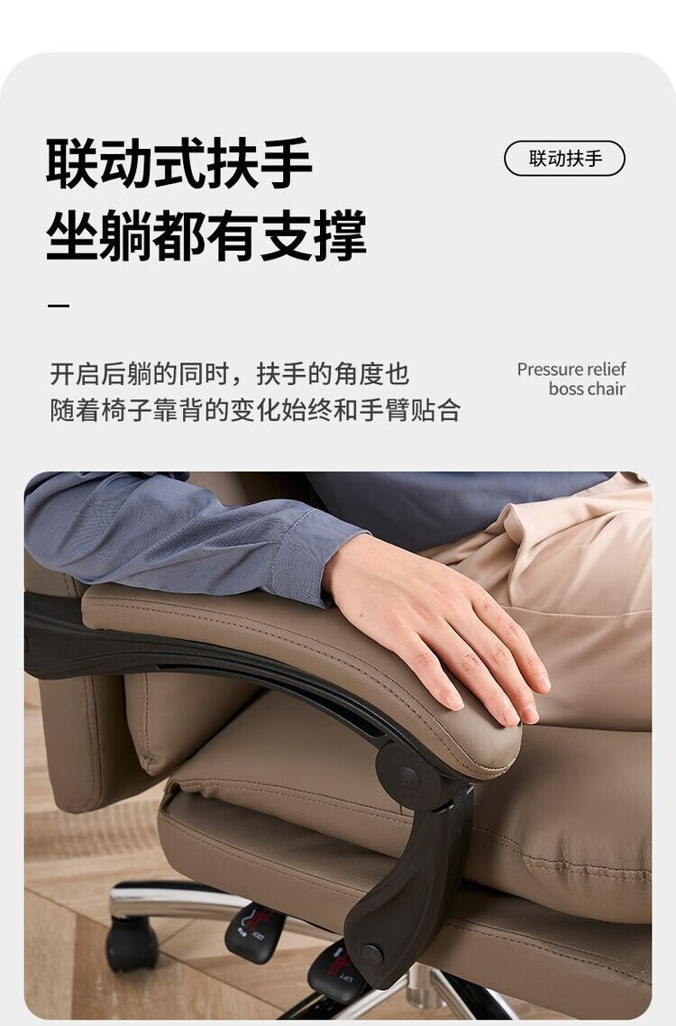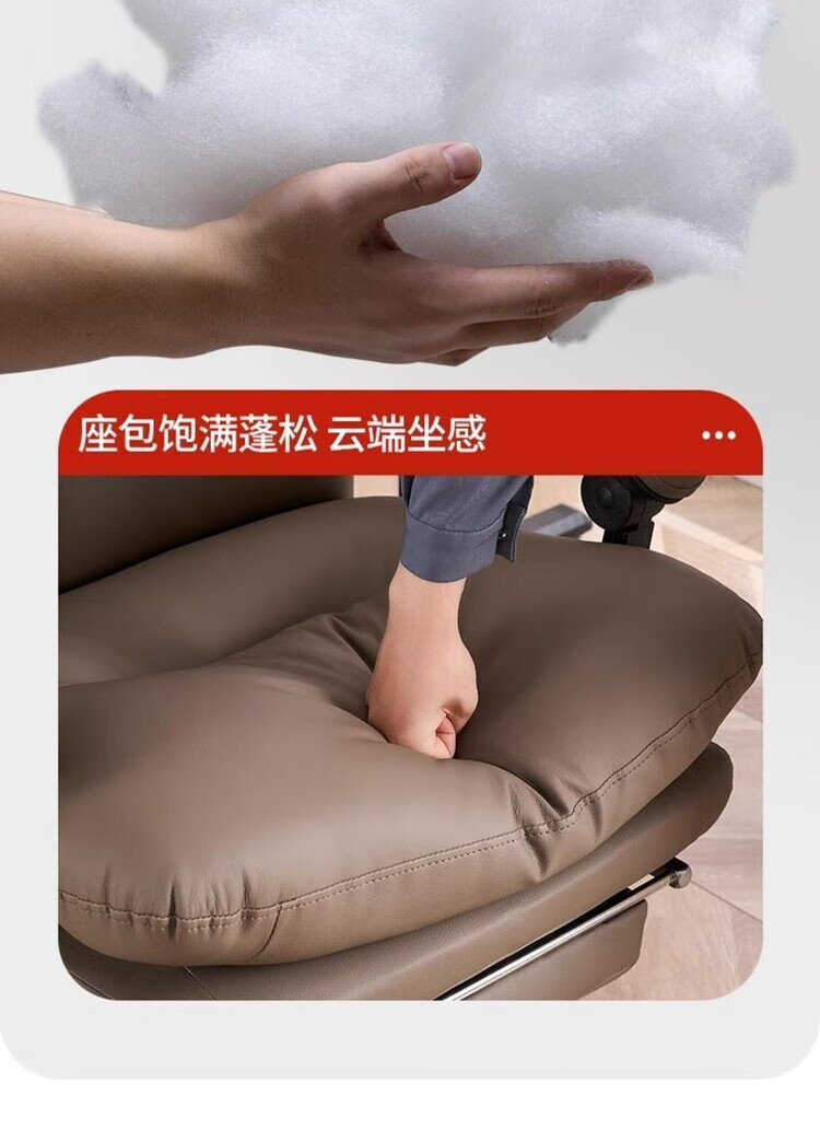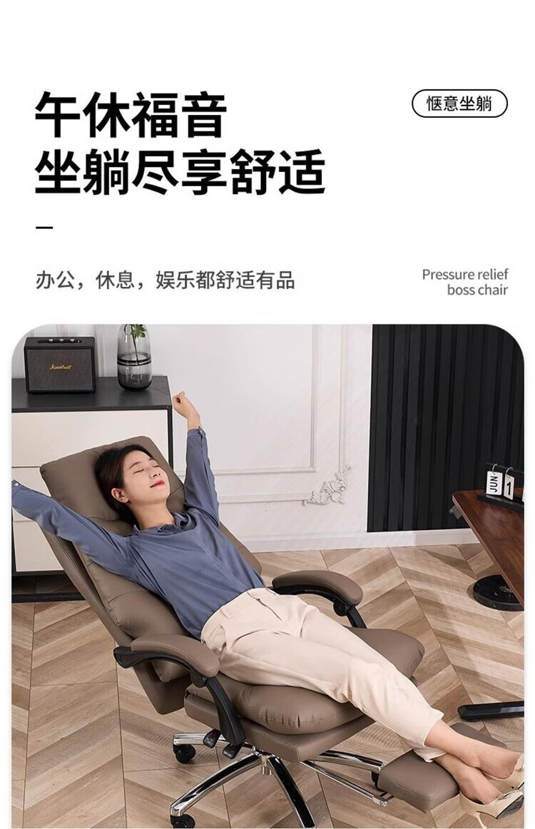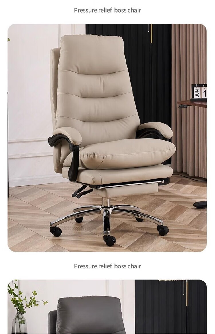 弘星隆轻奢老板椅商务家用舒适办公椅办公室休闲座椅人体工学电脑椅椅子 米白色【三防猫抓皮】升级乳胶坐垫 后仰145度