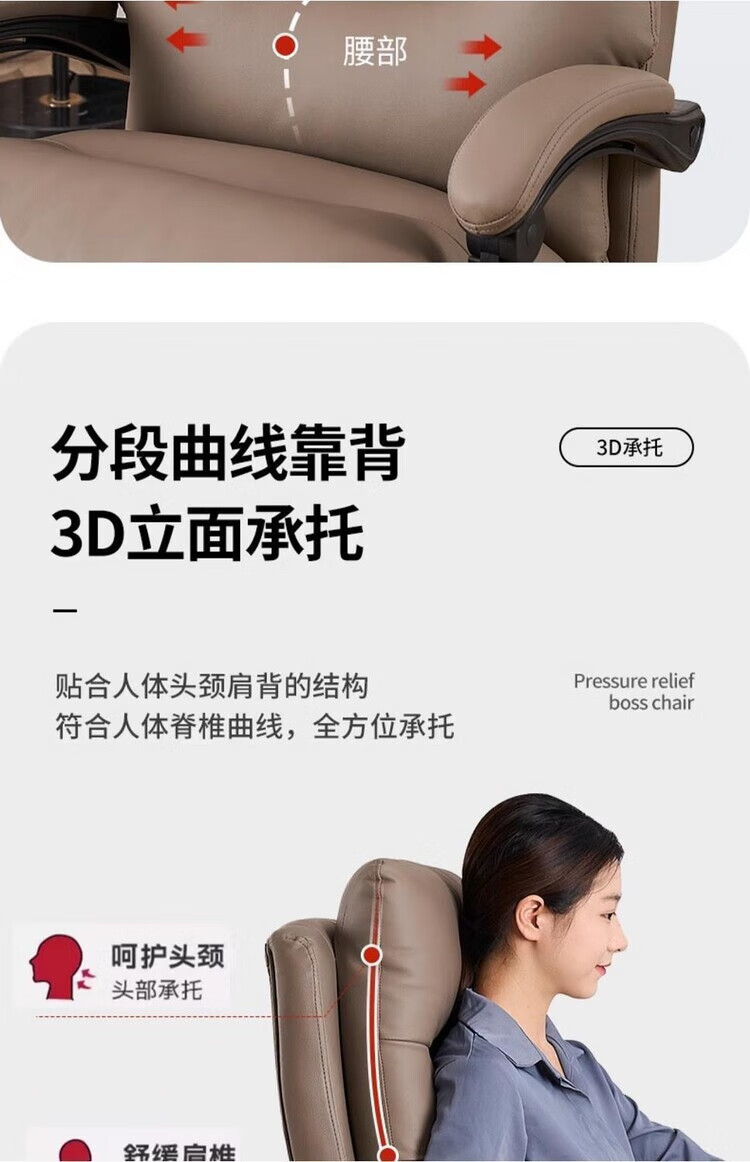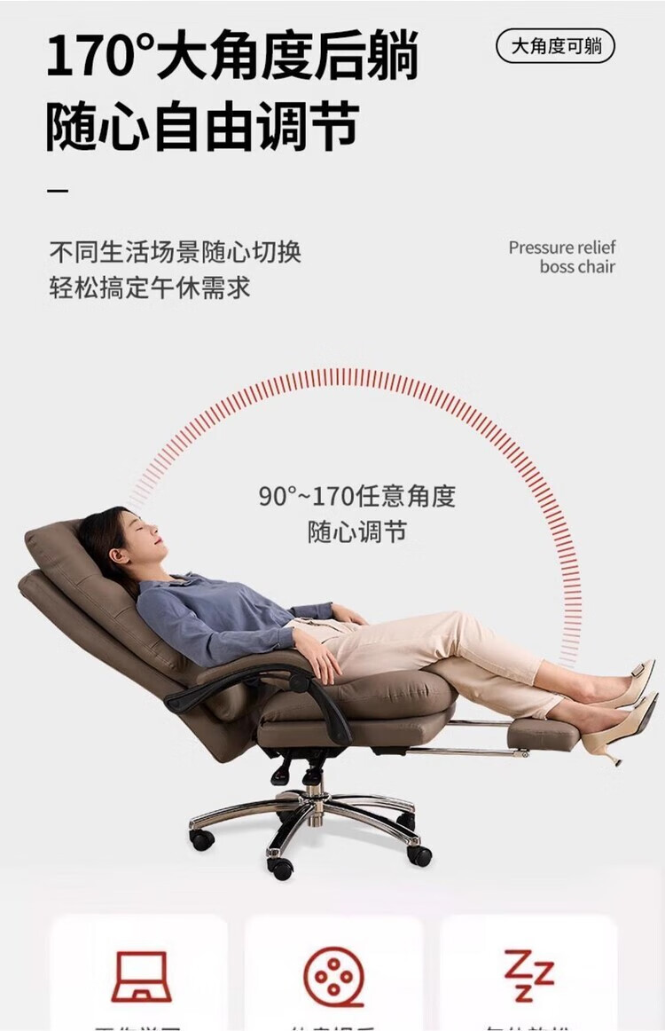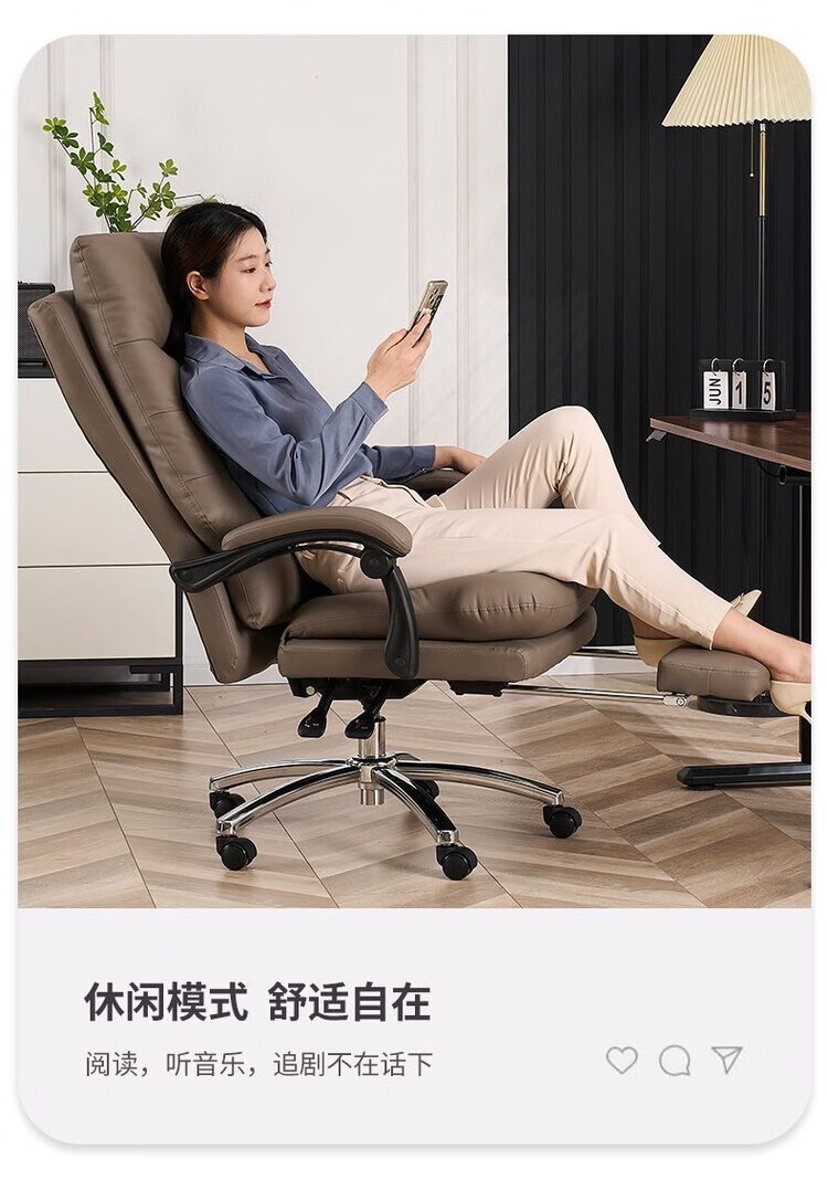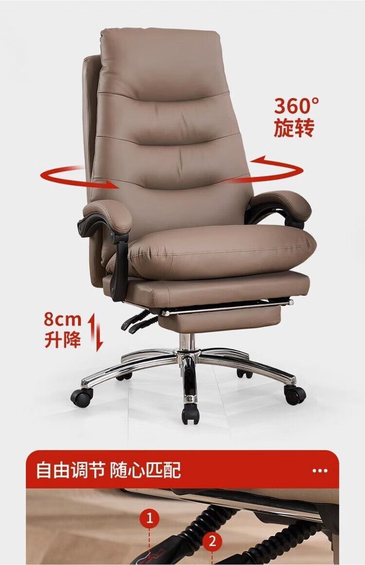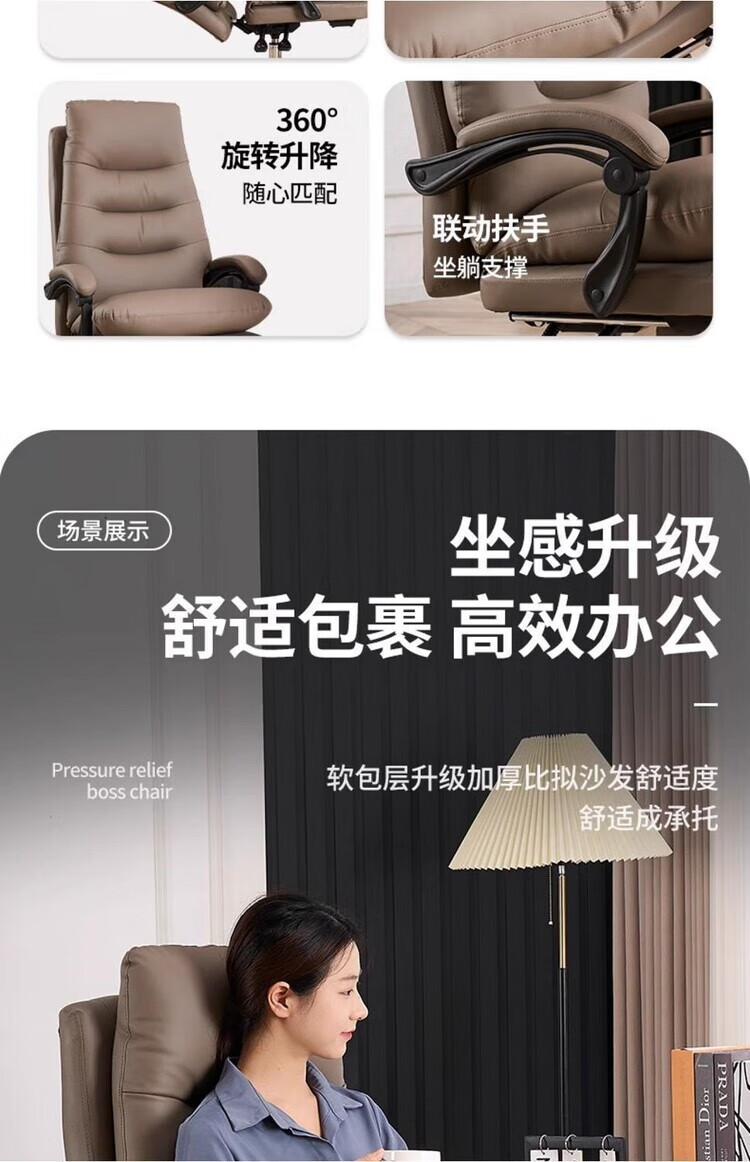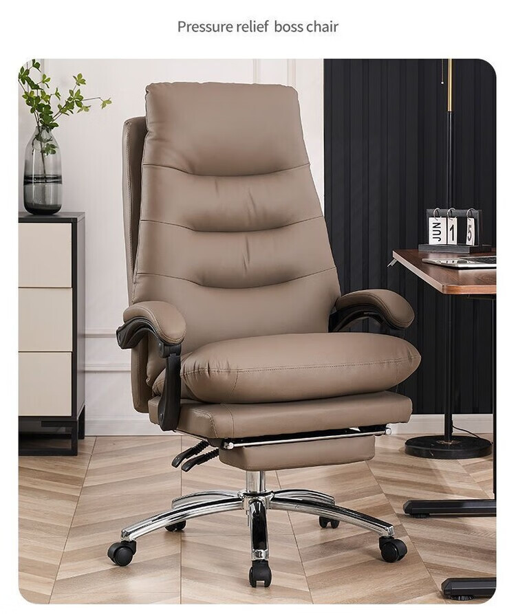 弘星隆轻奢老板椅商务家用舒适办公椅办公室休闲座椅人体工学电脑椅椅子 米白色【三防猫抓皮】升级乳胶坐垫 后仰145度