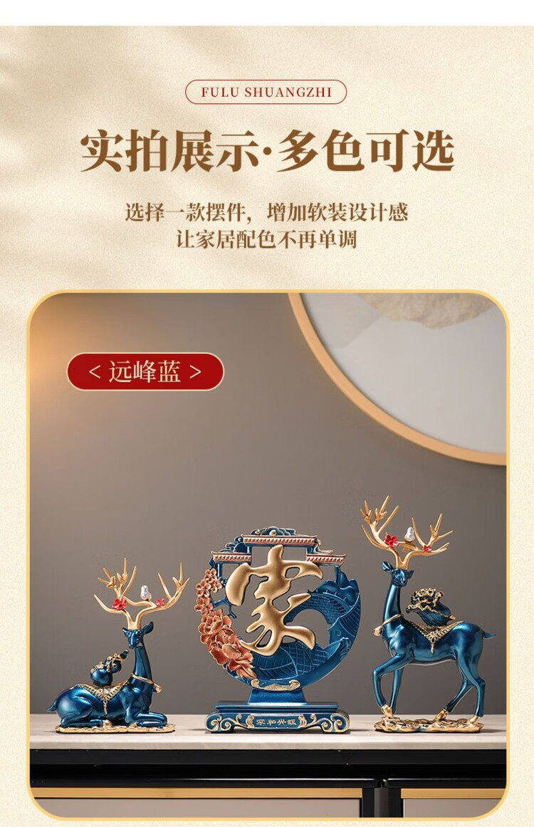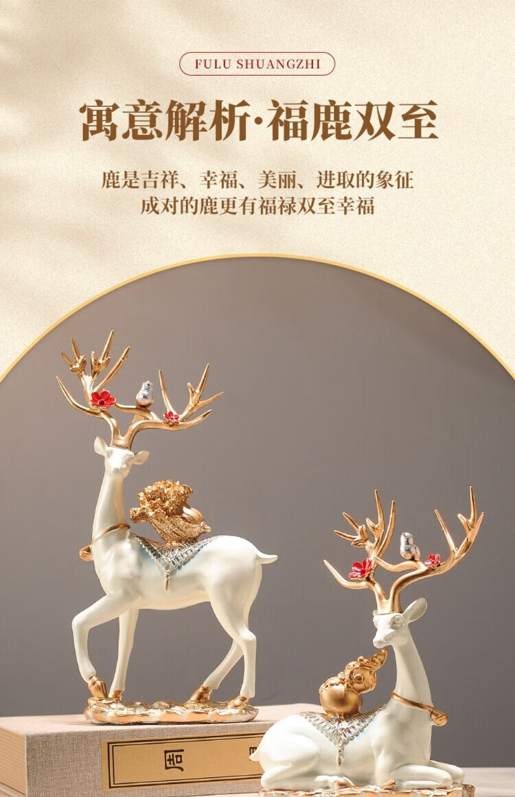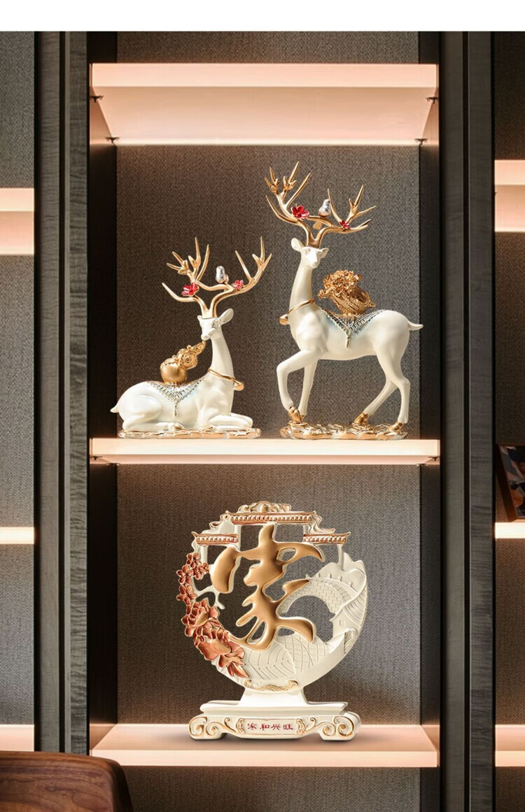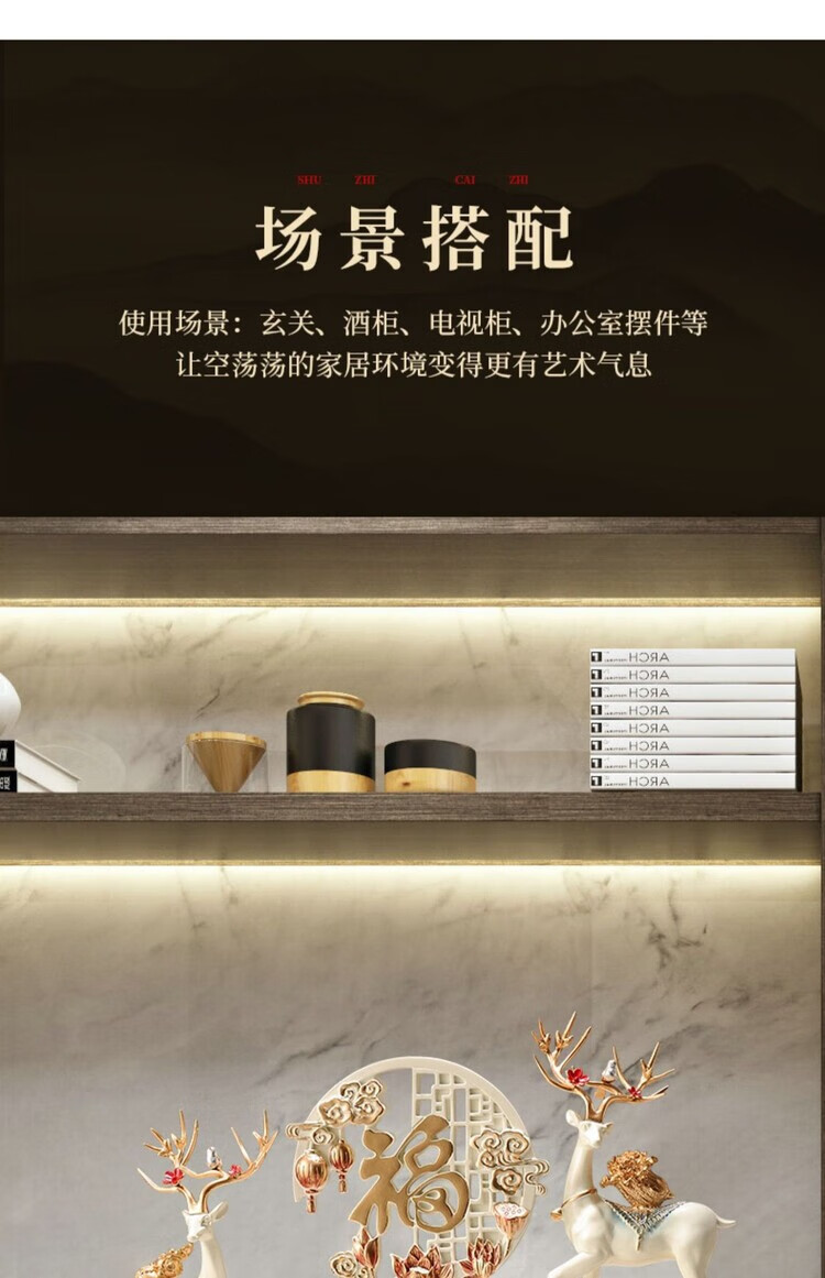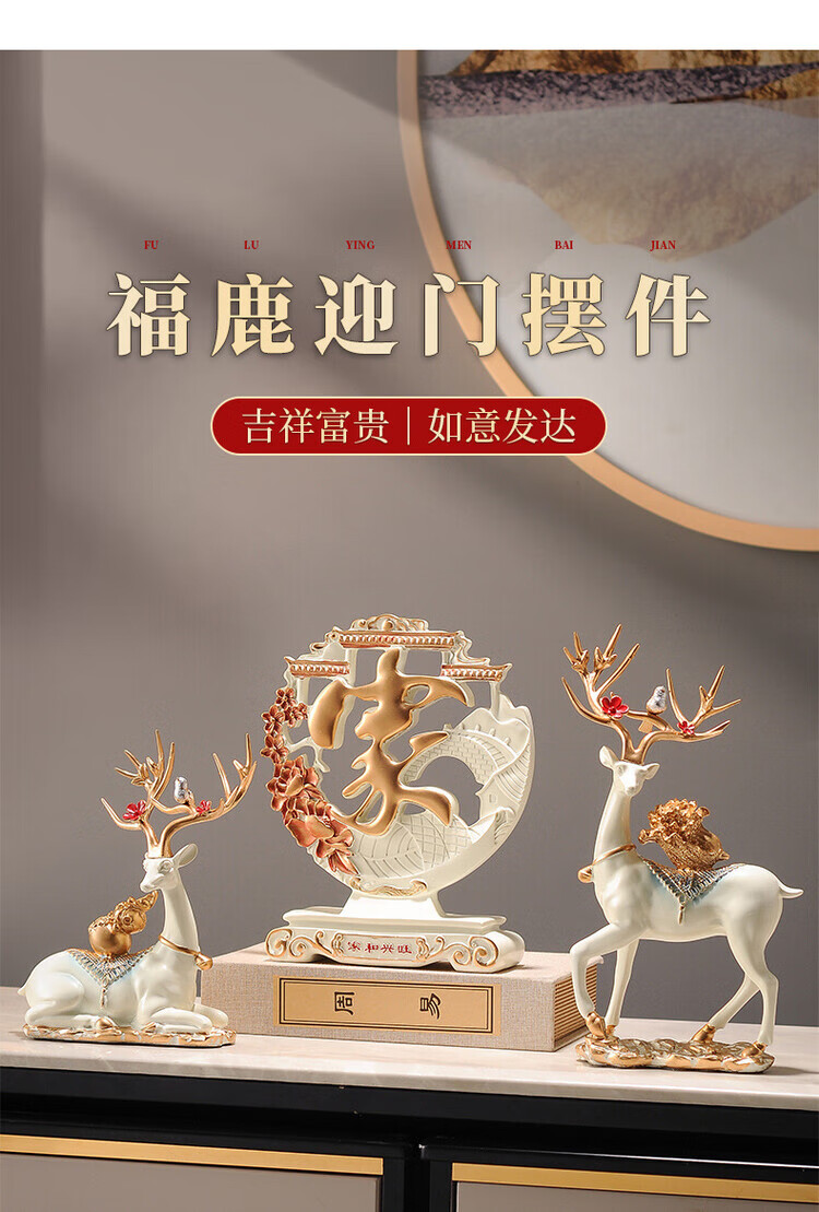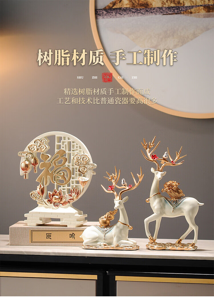 OYKTN乔迁新居礼品鹿摆件家居客厅玄关电视酒柜装饰品搬家礼物轻奢高档 中间福字摆盘(古董白)
