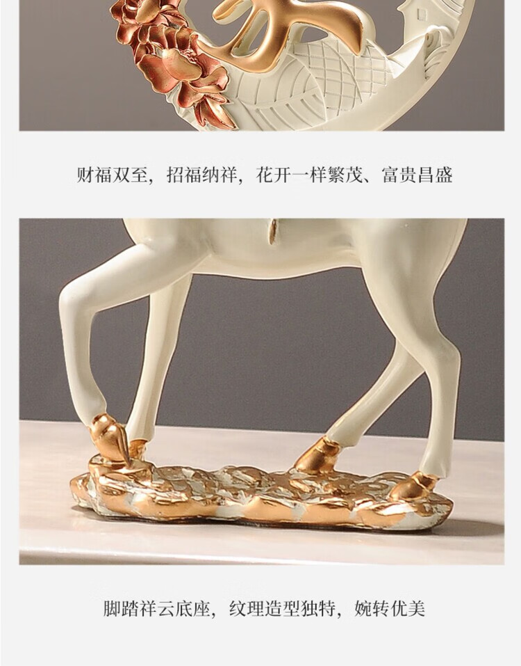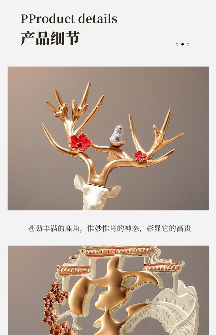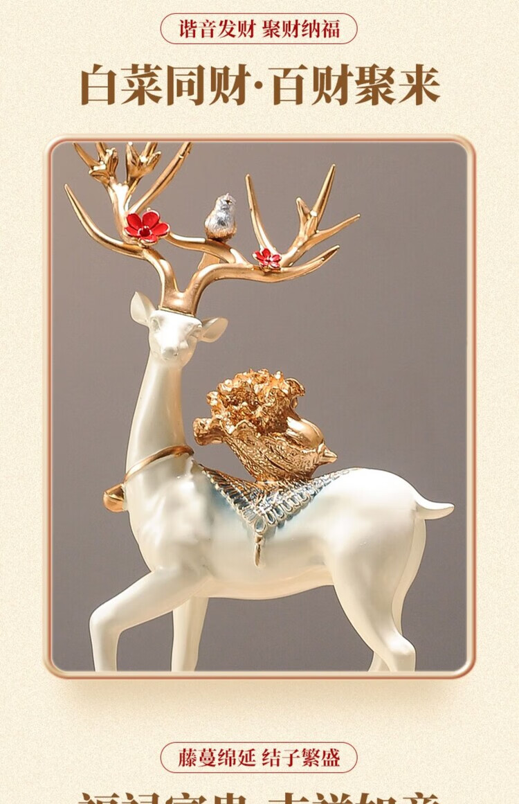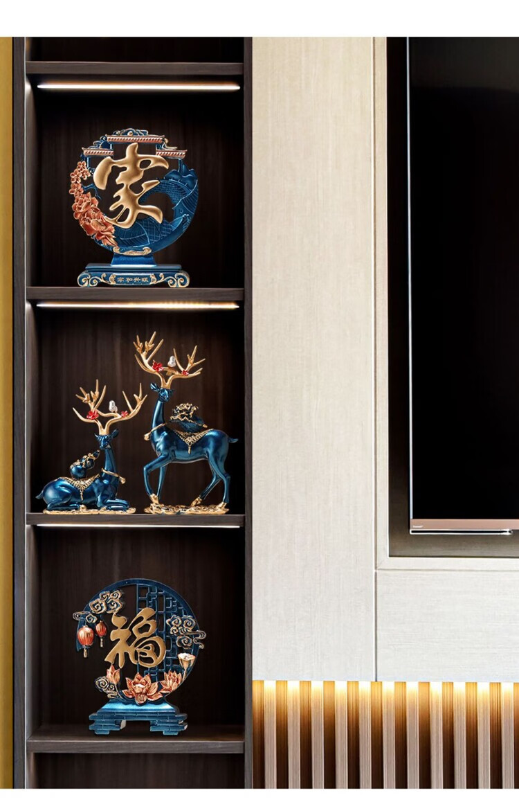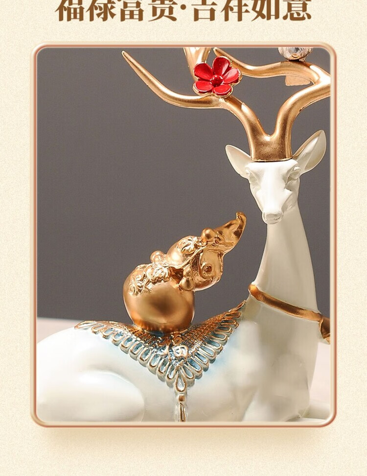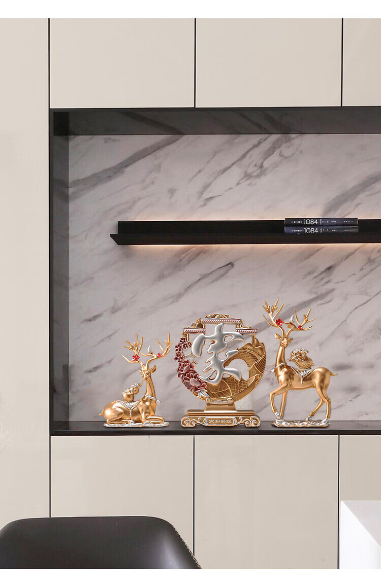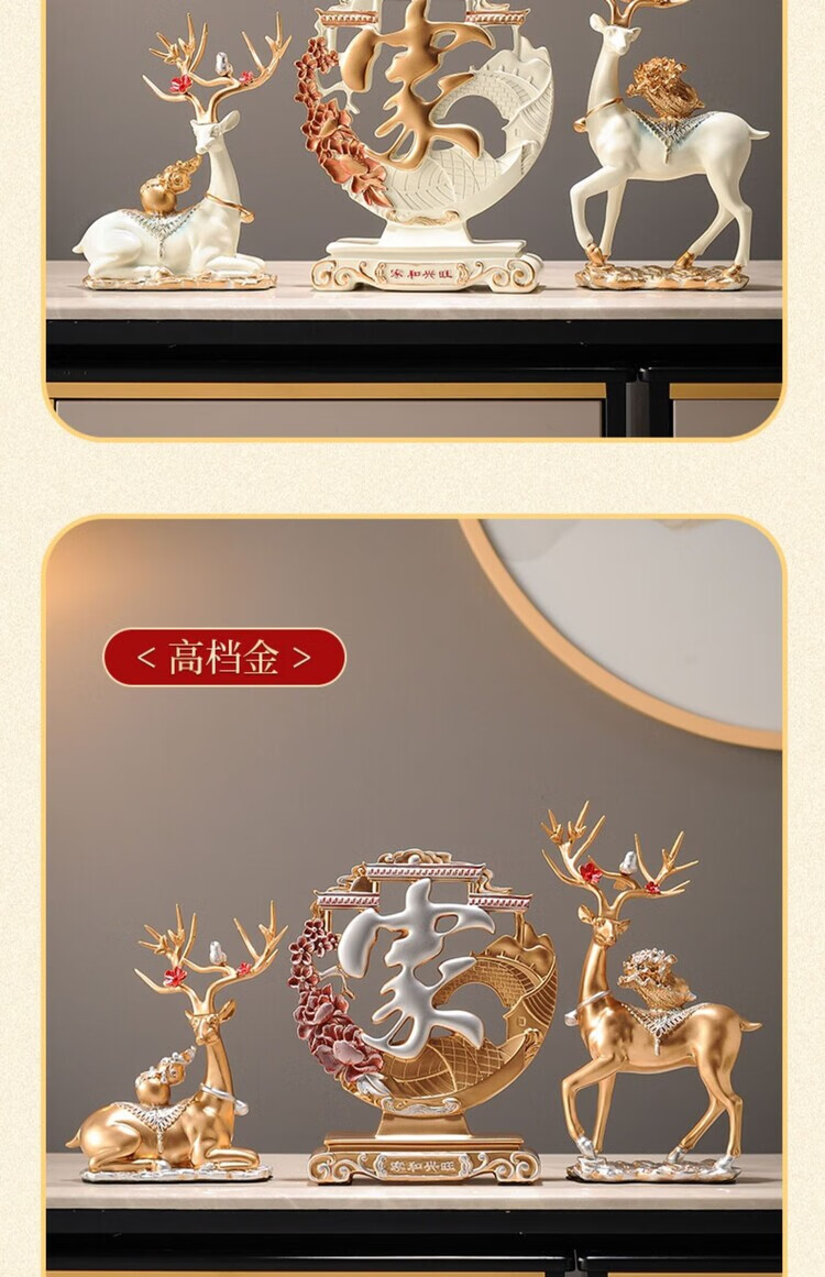 OYKTN乔迁新居礼品鹿摆件家居客厅玄关电视酒柜装饰品搬家礼物轻奢高档 中间福字摆盘(古董白)