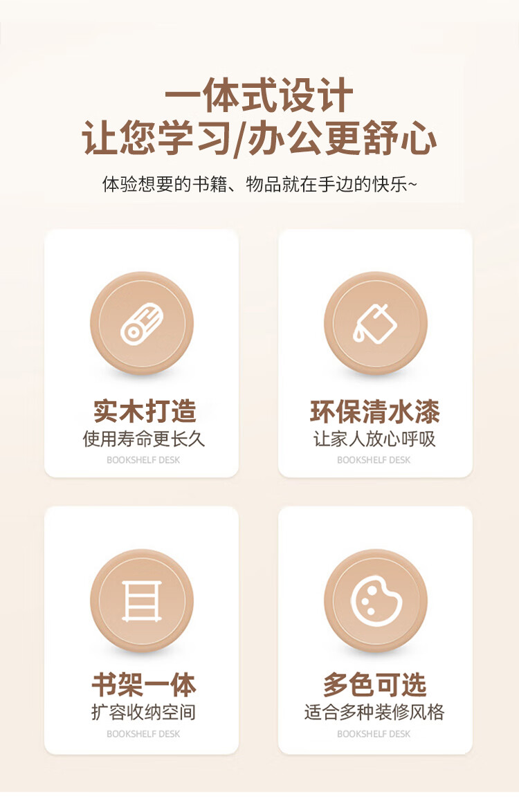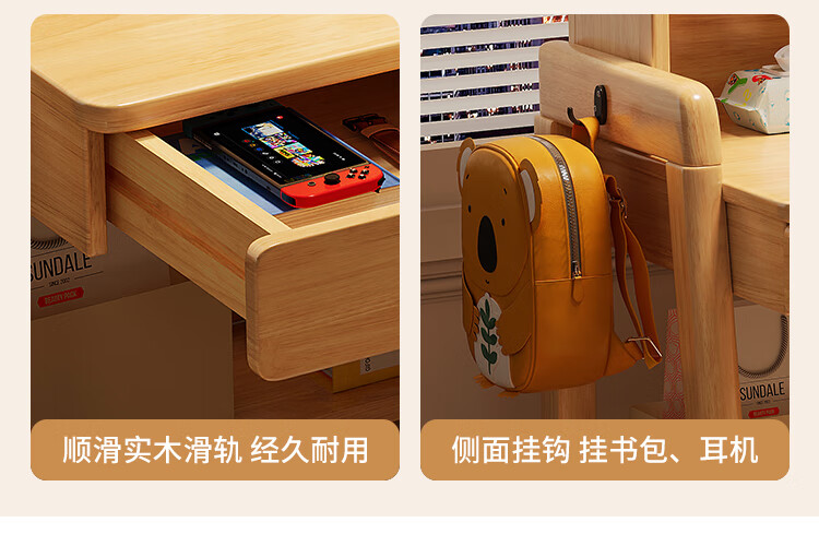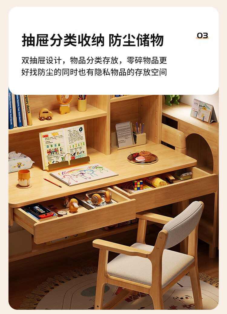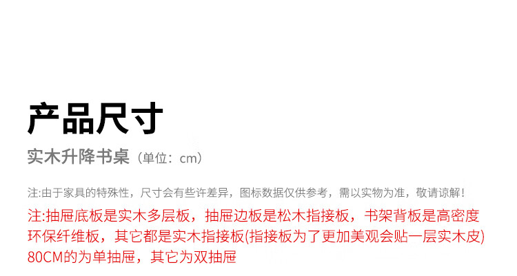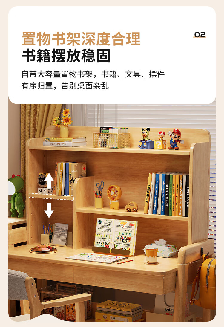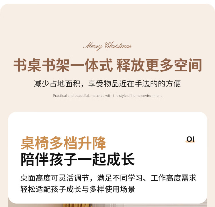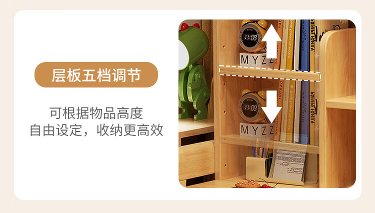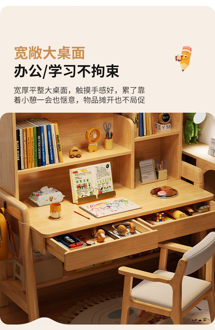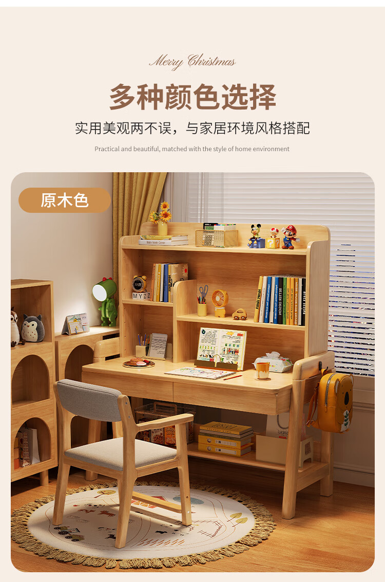 芈迪实木书桌学生家用书桌书架一体桌子儿童学习桌电脑桌升降学生书桌 白色单桌 80*60*135.5cm