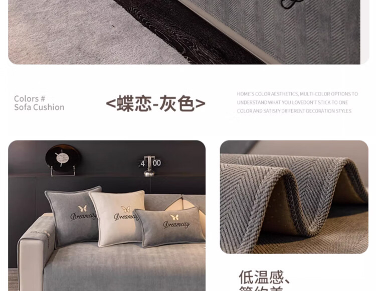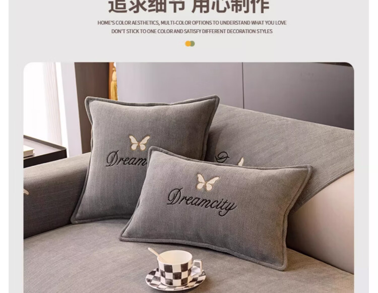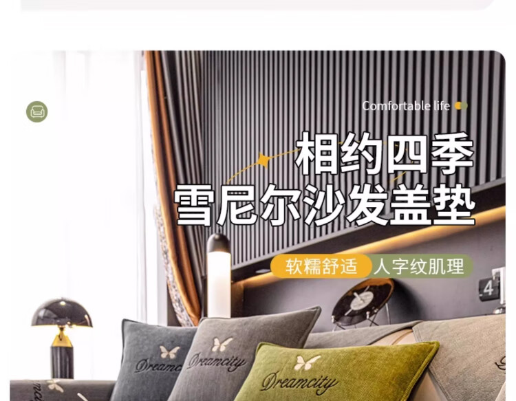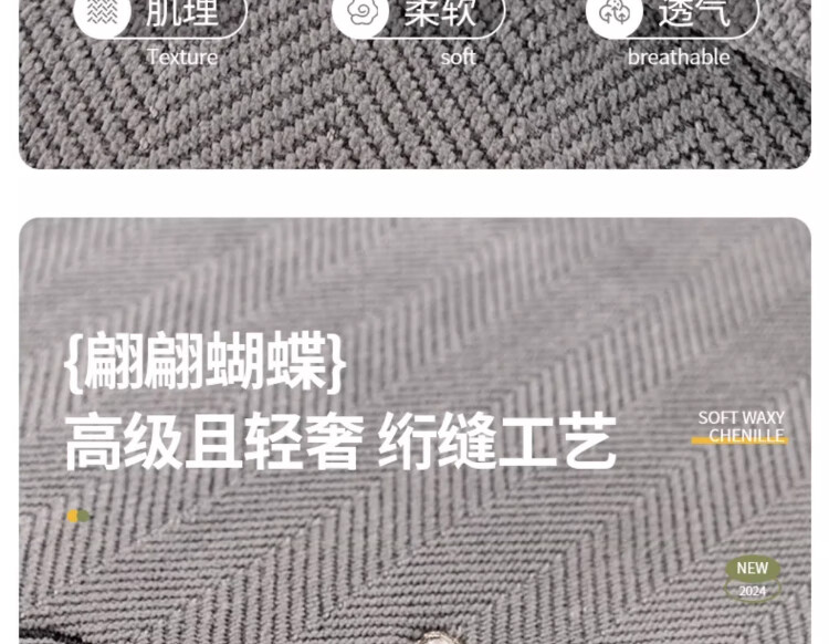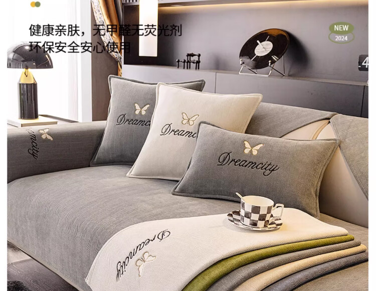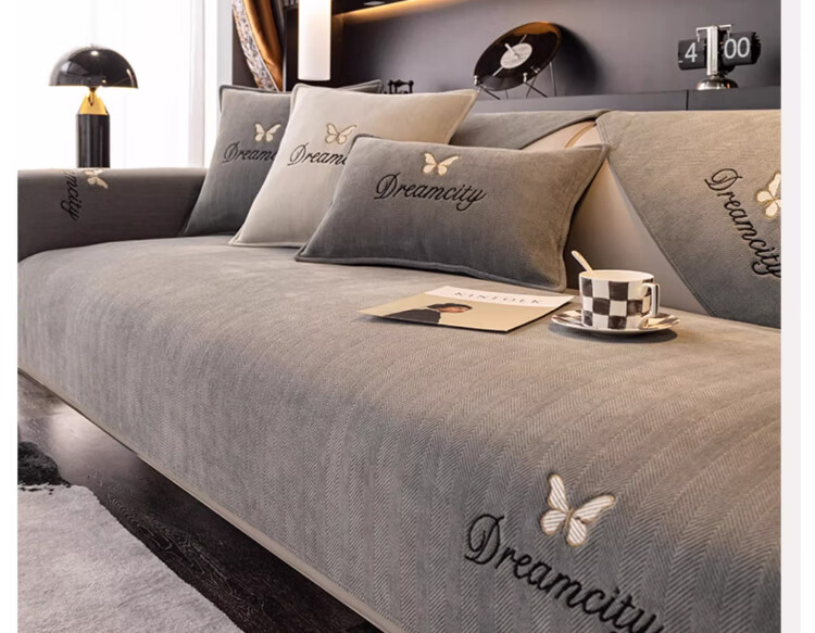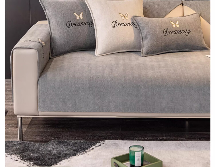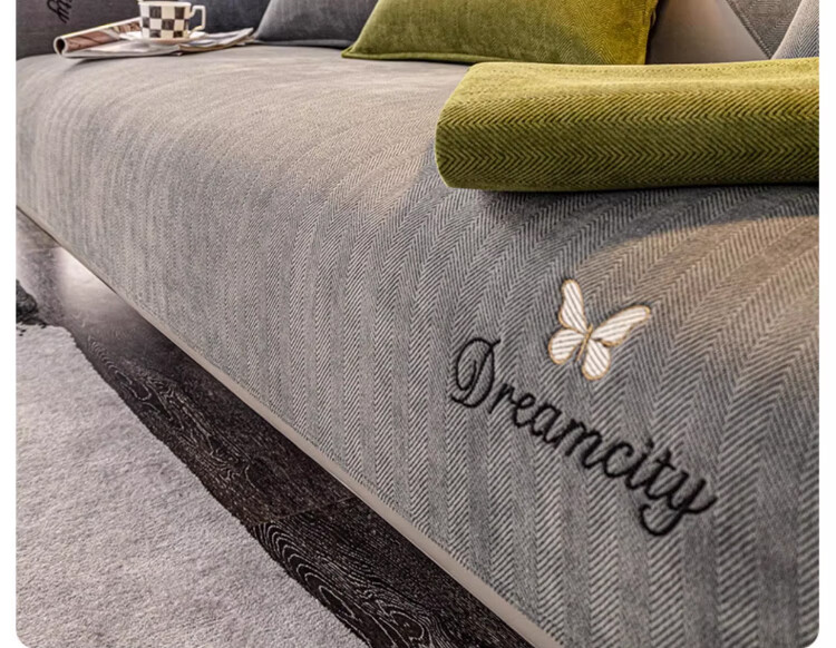 无印良品沙发垫轻奢高级感雪尼尔沙发盖垫四季通用皮沙发专用垫防滑坐垫 高定雪尼尔-蝶恋-灰色( 6D硅胶防滑 精湛包边) 90X180cm (大两人位 )