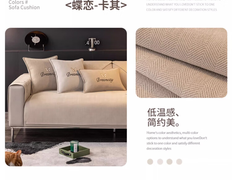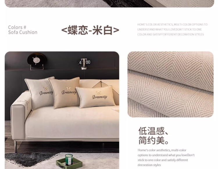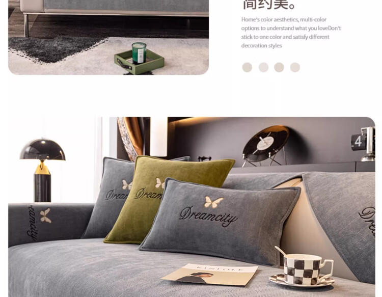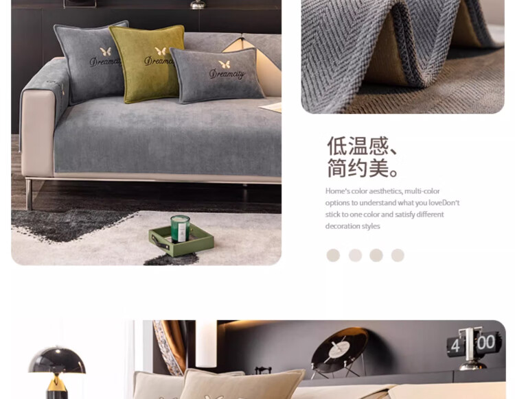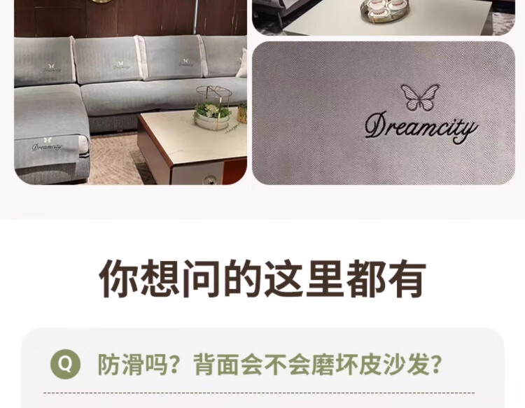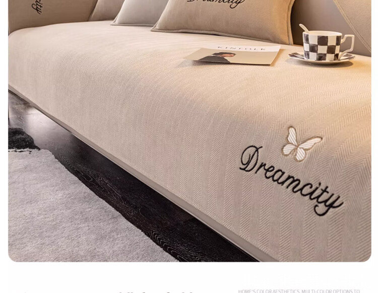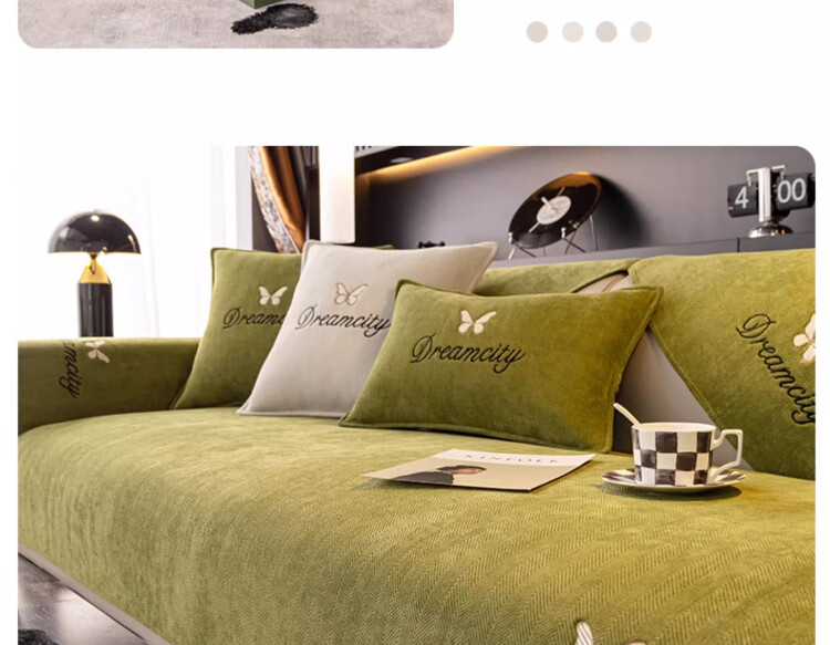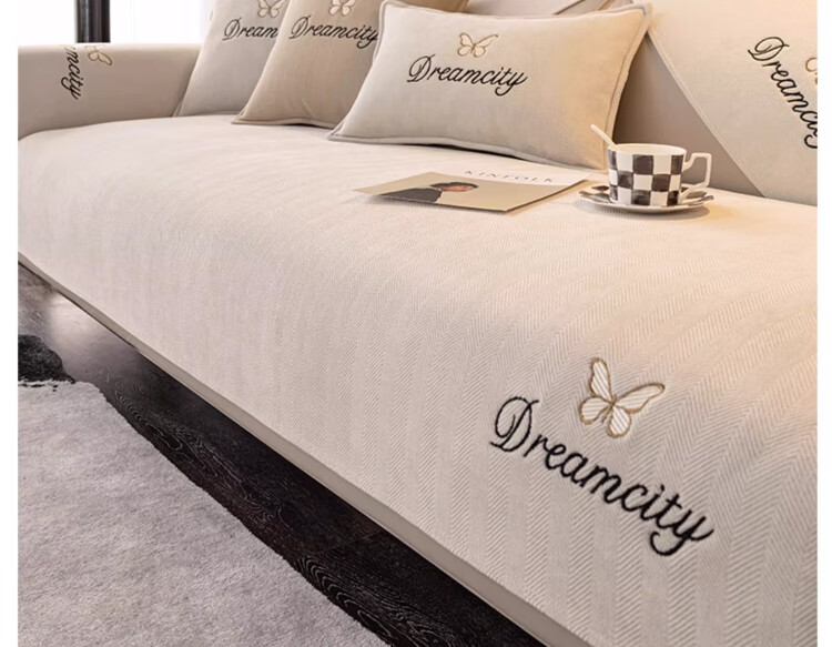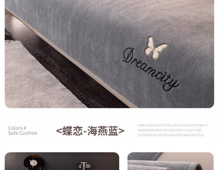 无印良品沙发垫轻奢高级感雪尼尔沙发盖垫四季通用皮沙发专用垫防滑坐垫 高定雪尼尔-蝶恋-灰色( 6D硅胶防滑 精湛包边) 90X180cm (大两人位 )