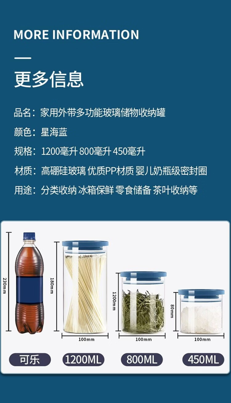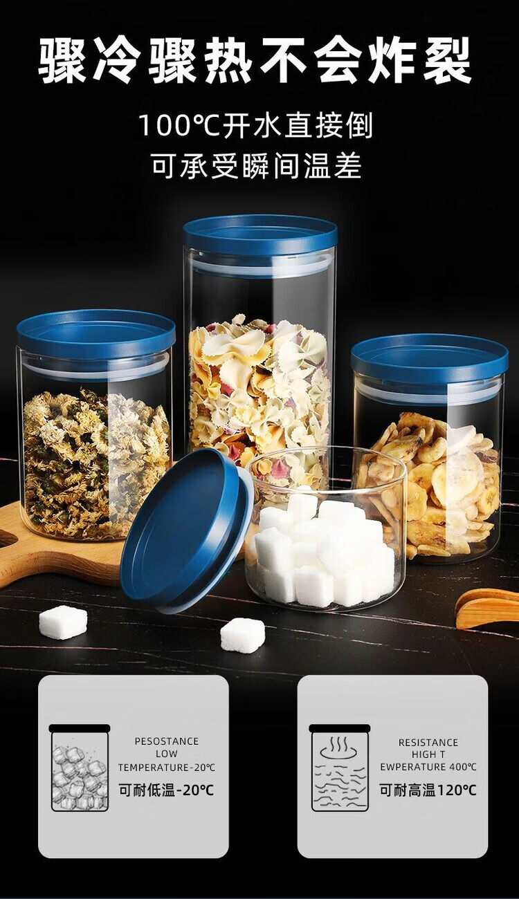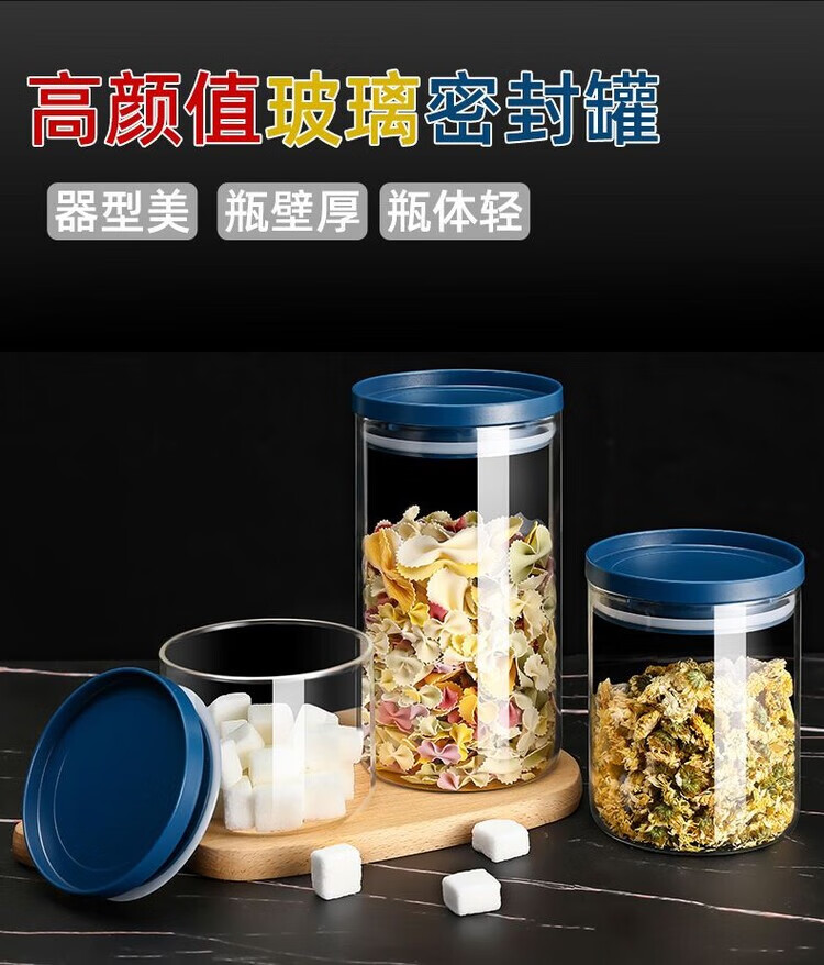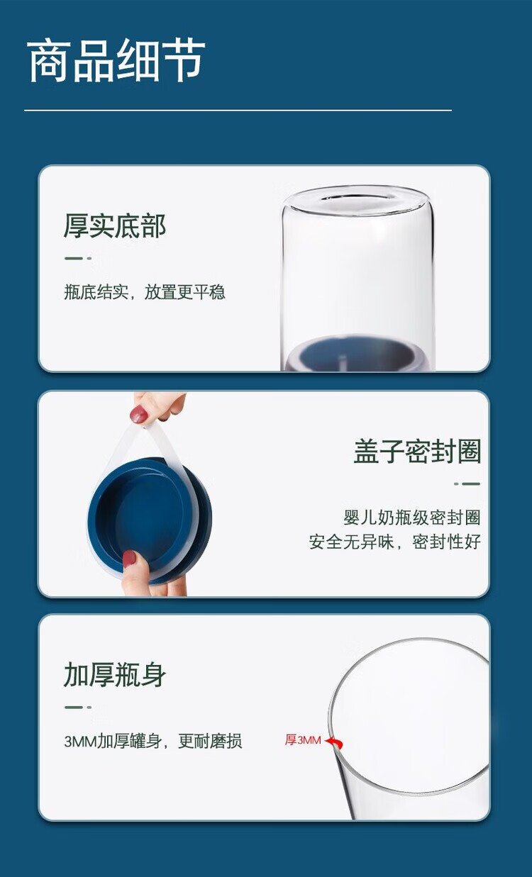 简漾大中小套装玻璃密封罐玻璃罐玻璃瓶柠檬蜂蜜瓶泡菜坛子瓶子储物罐 450毫升【高8cm-宽10cm】 1只【送标签+杯刷】高硼硅玻璃