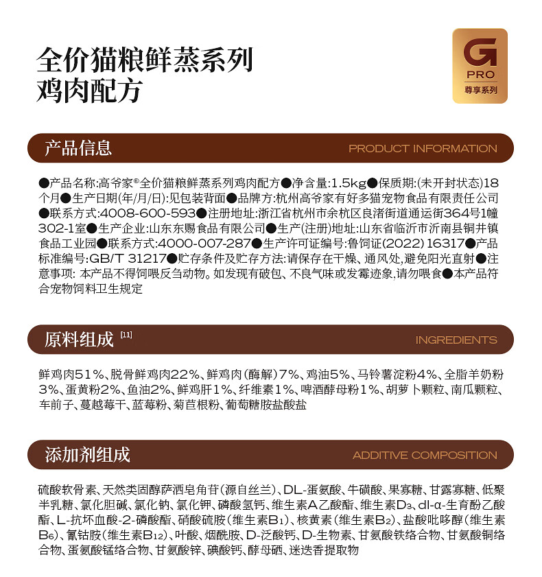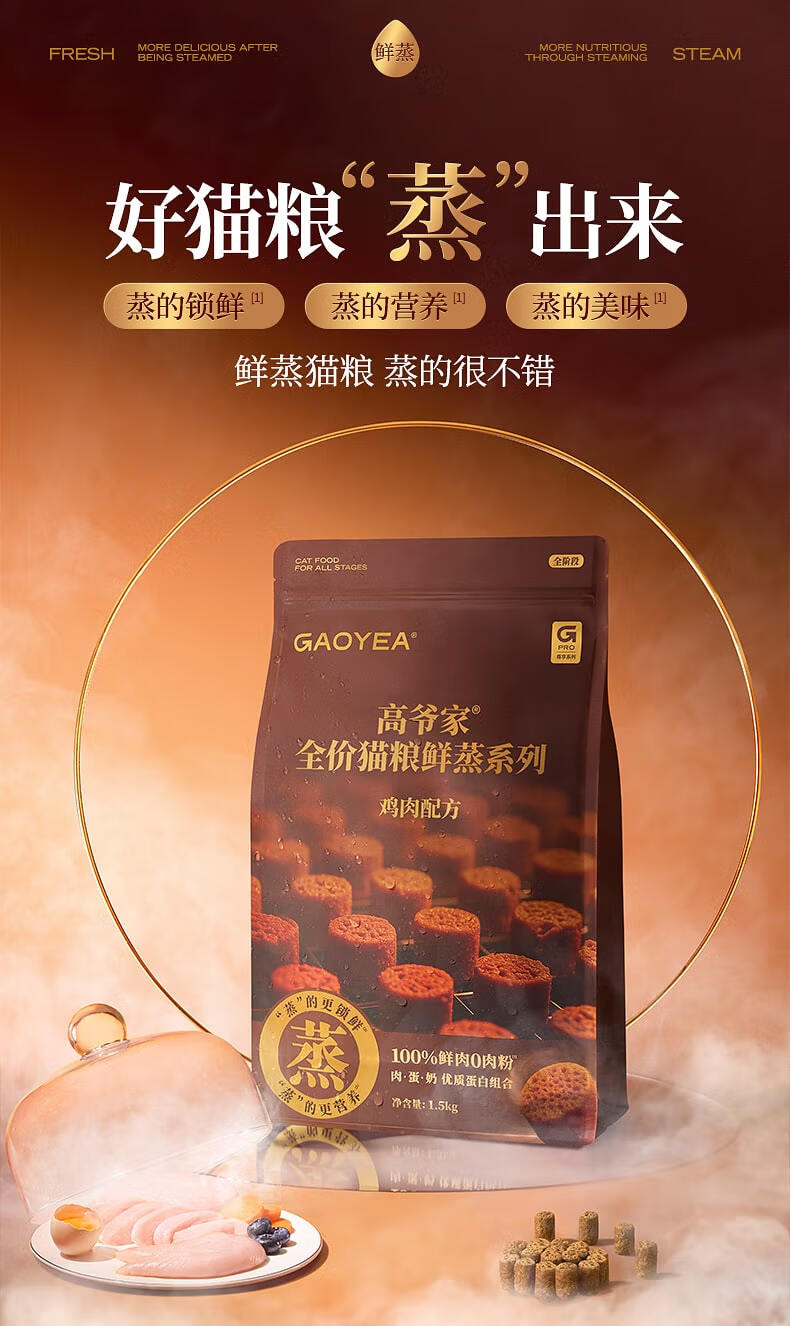 高爷家全价鲜蒸成幼猫粮 鲜肉现蒸 高消化率 G 全价鲜蒸粮鸡肉猫粮1.5kg