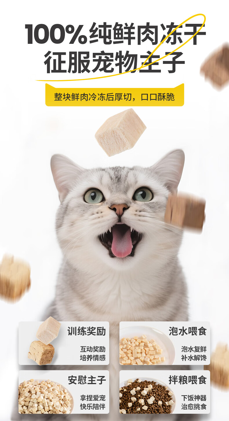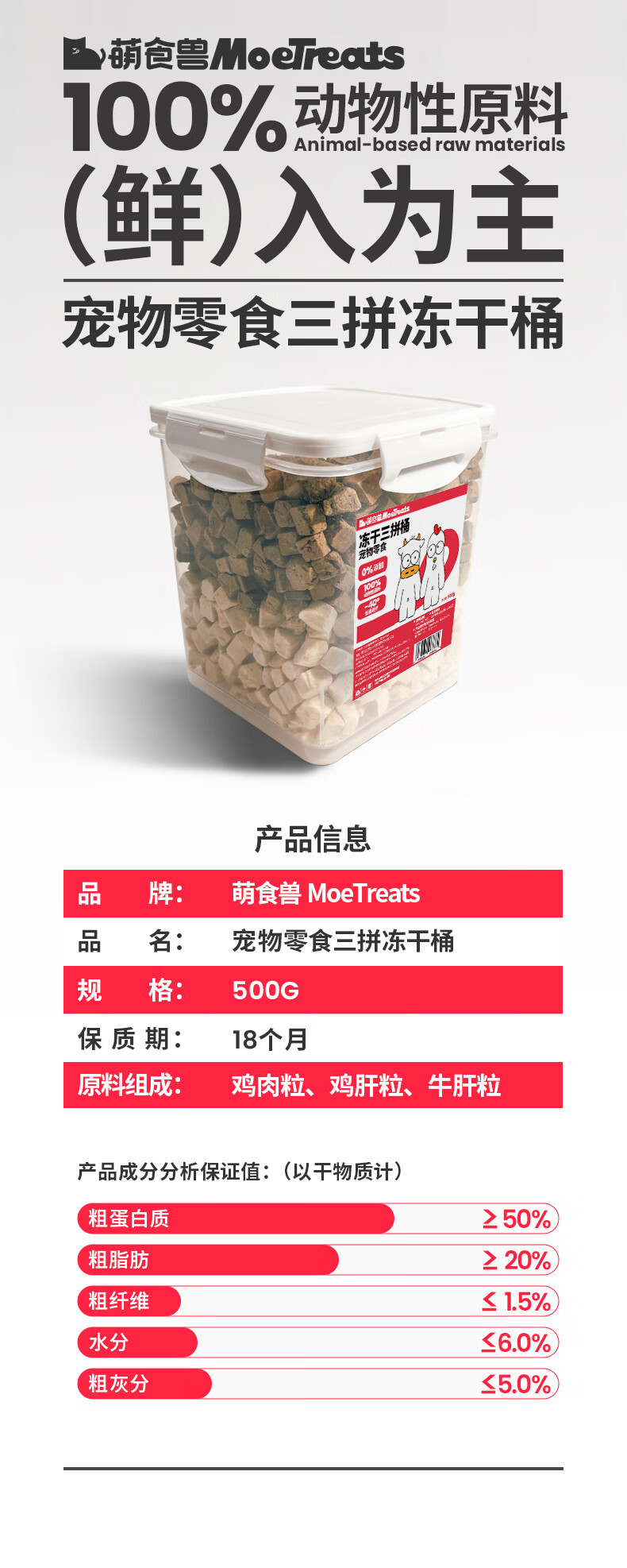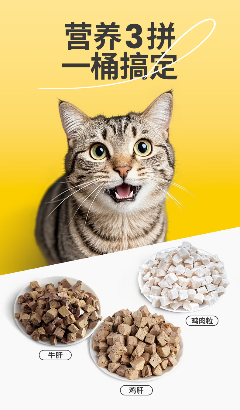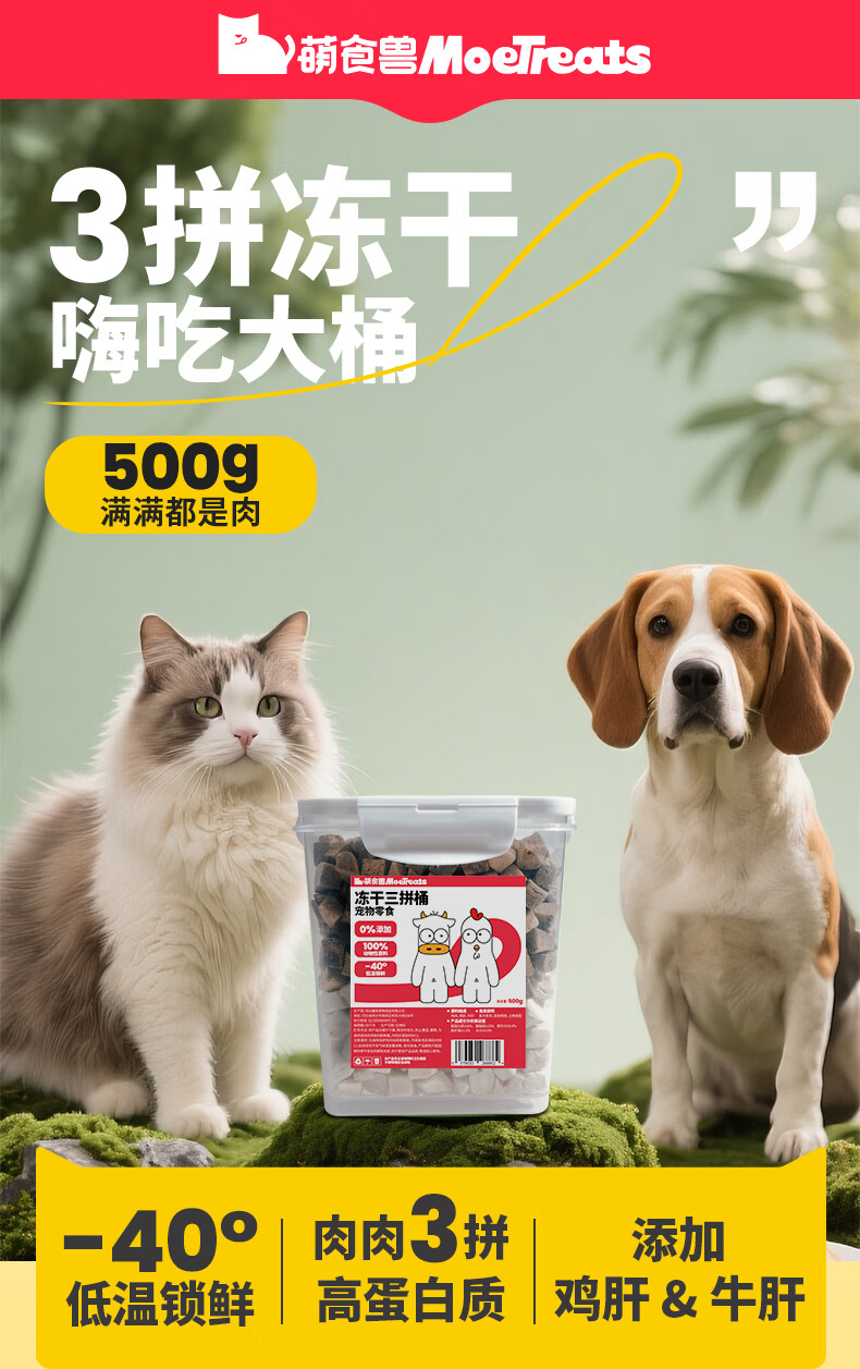 萌食兽宠物零食三拼冻干猫零食鸡鸭肉蛋肝混合豪华桶装鸡肉冻干营养500g 【3拼桶】鸡肉牛肝鸡肝冻干 500g