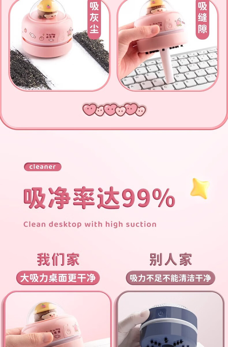 创易【精选直发】 桌面吸尘器吸橡皮擦屑清洁机清理用键盘吸铅笔屑灰清洁器迷你微小型电动大吸 【电池款】桃桃茶话会1个(不含电池)